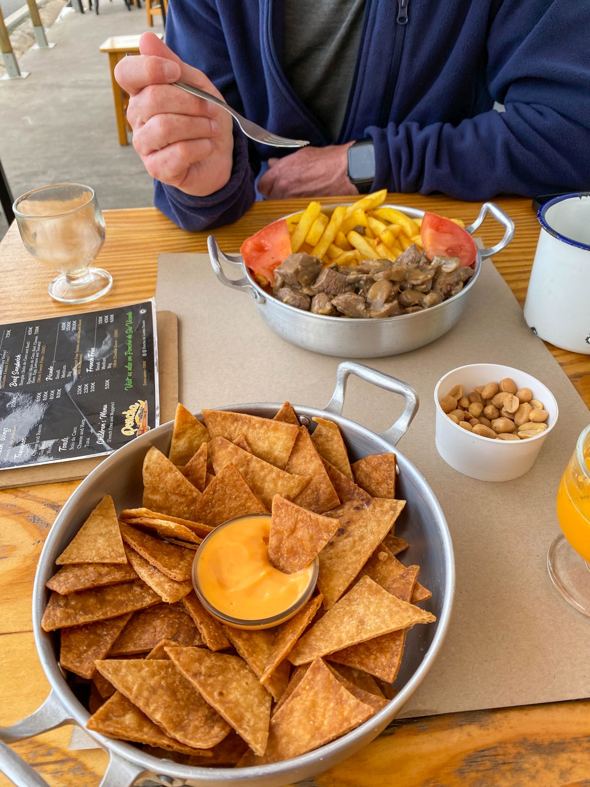 In der Unterkunft angekommen, relaxen wir endlich mal wieder auf der Terrasse und lassen den Tag später in der Ponchabar mit einem kleinen Snack ausklingen.
