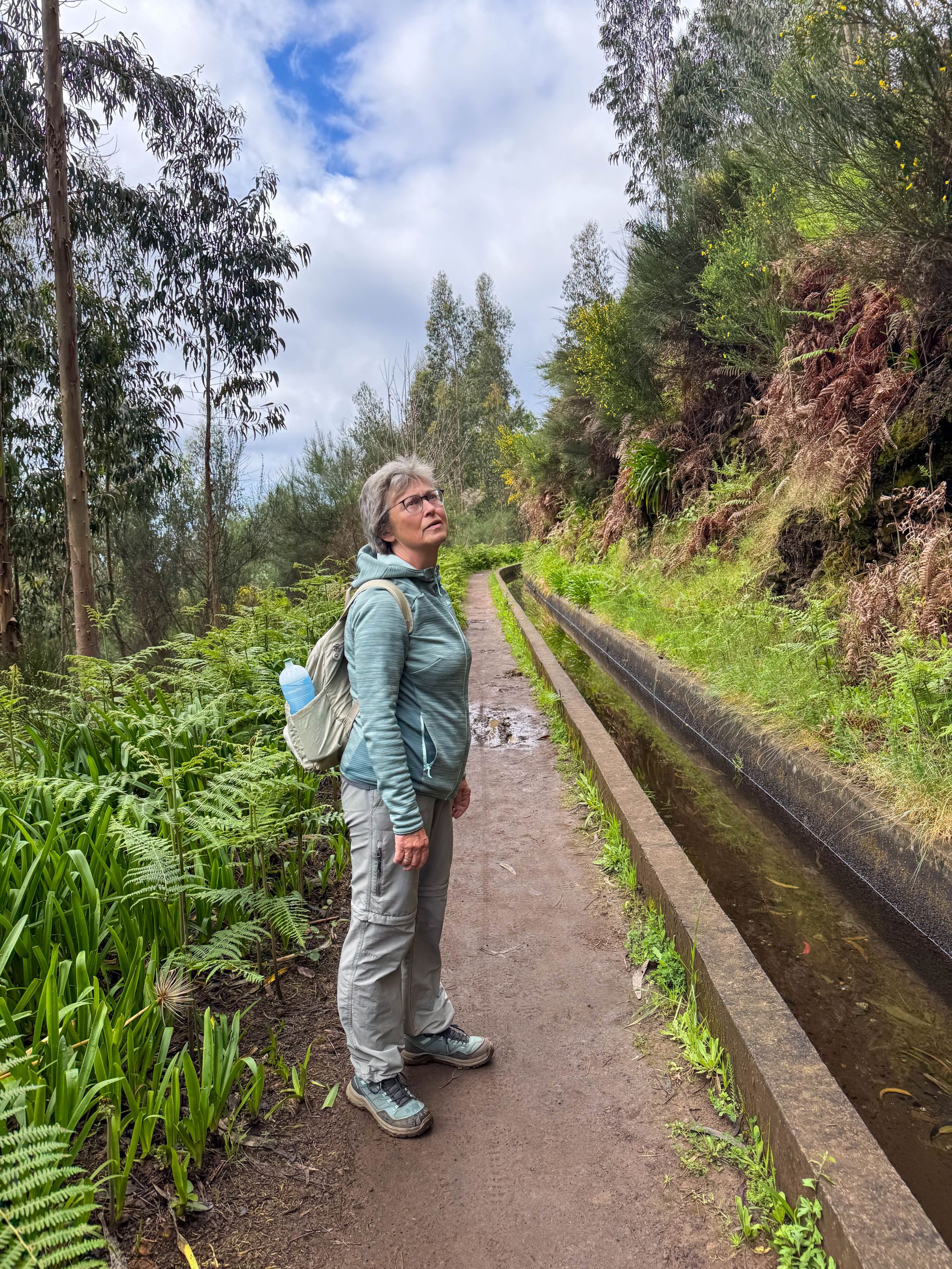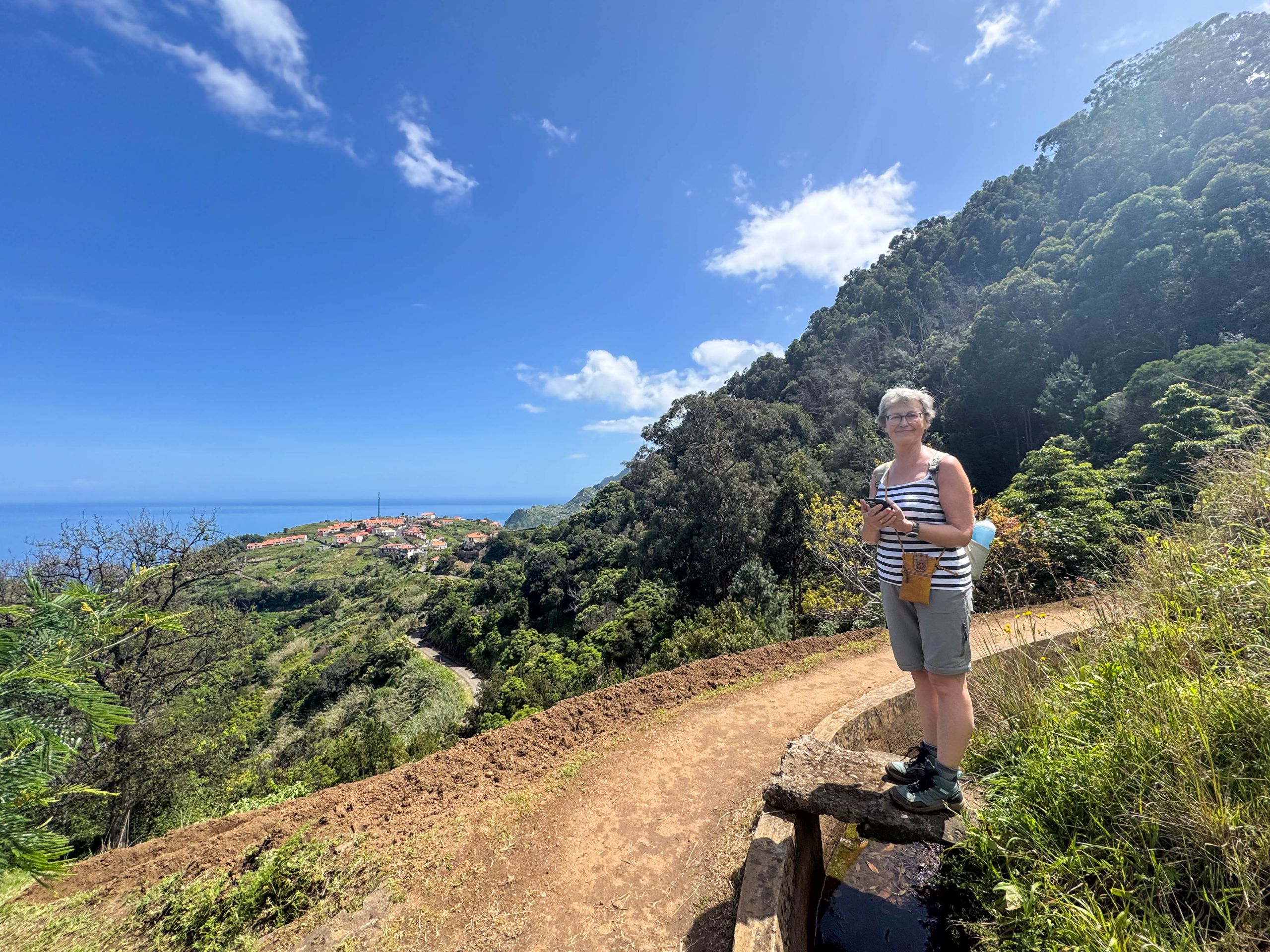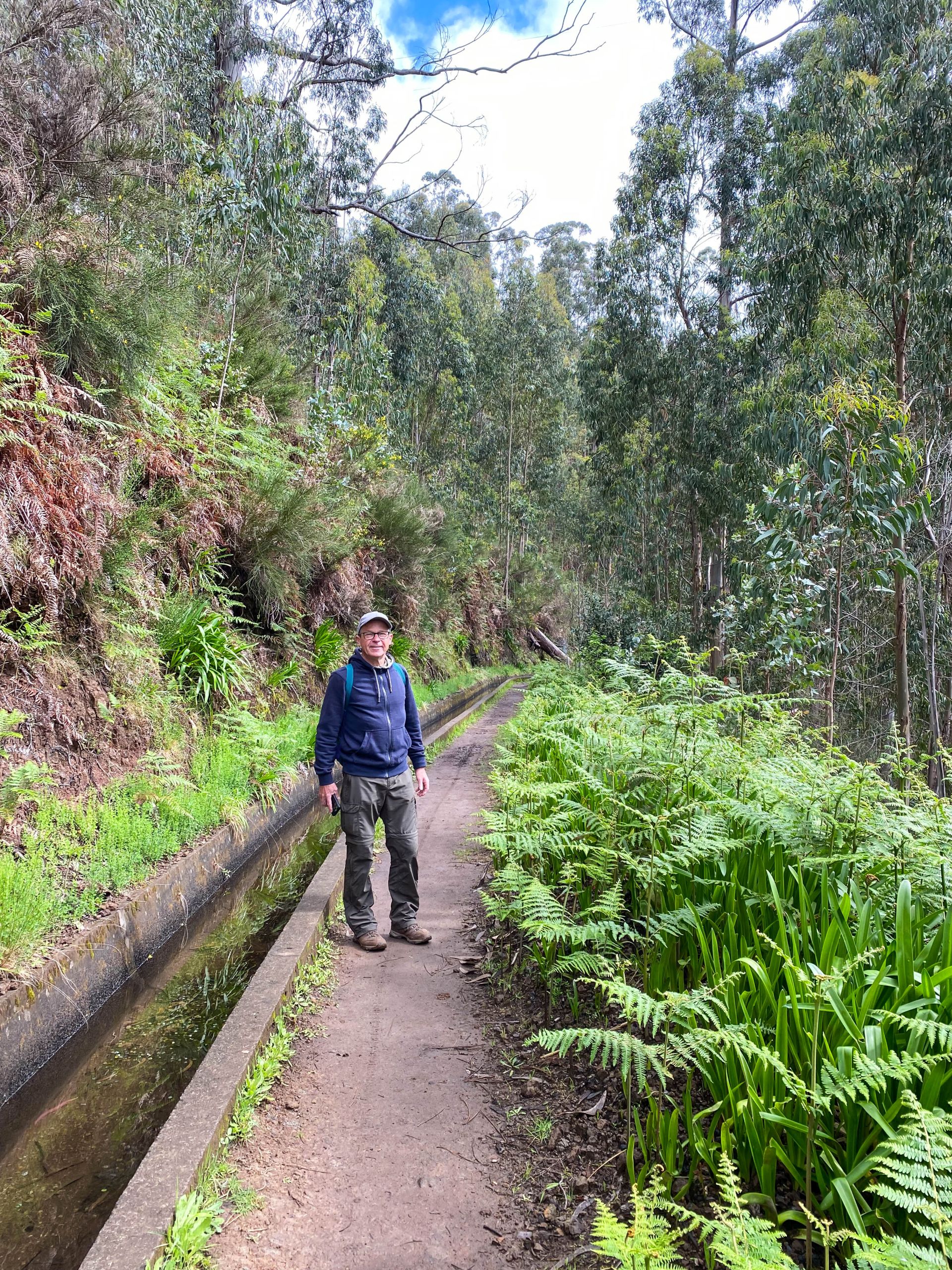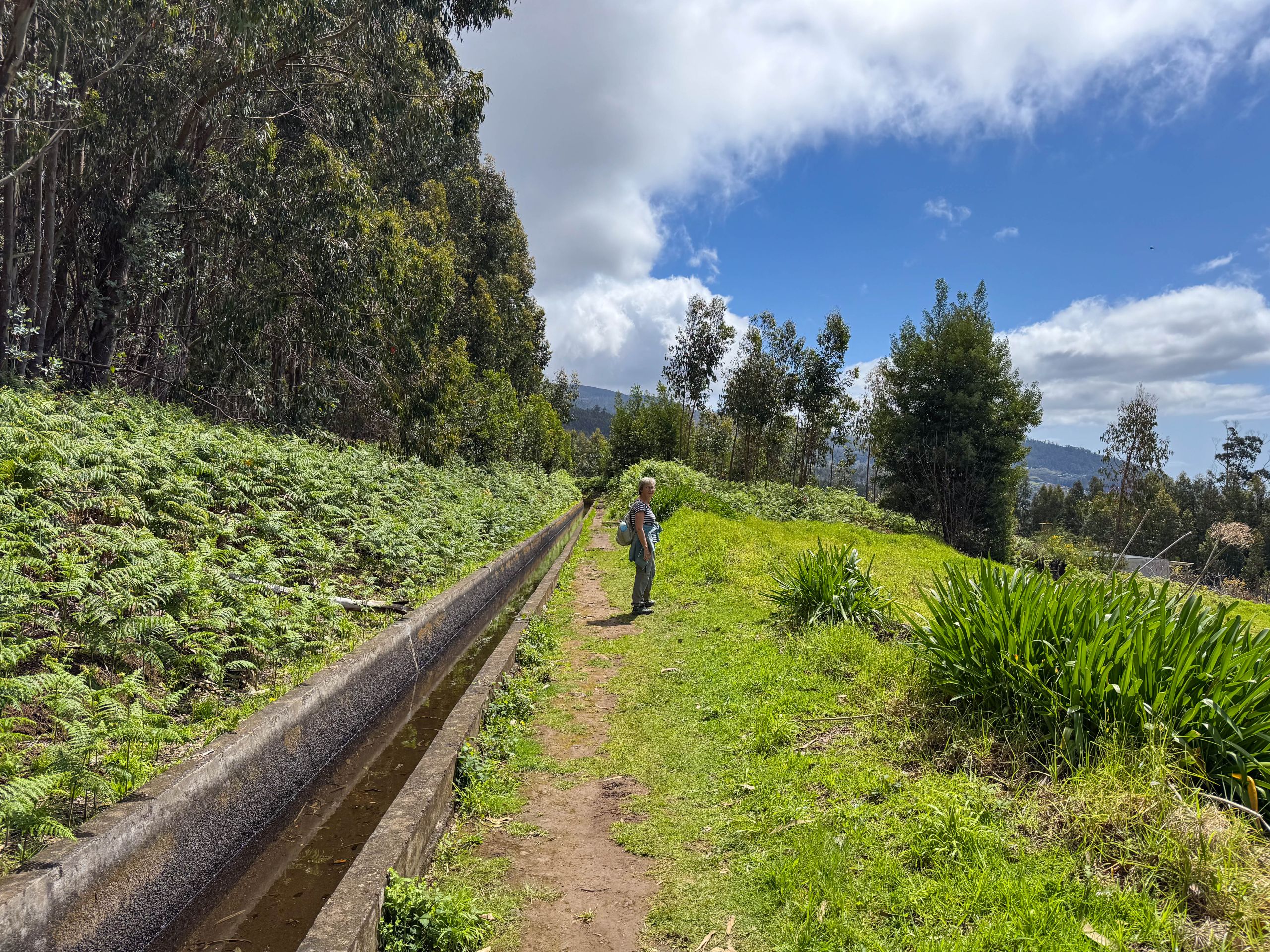 Unsere heutige Wanderung startet ca. 9 km entfernt von Calheta. Es geht von Prazeres entlang der Levada Nova ins Tal der Ribeira da Achada. Die Tour ist insgesamt ca. 17 km lang und führt größtenteils durch Eukalyptuswälder und vorbei an großen Farnbüschen und Schmucklilien, die aber leider noch nicht blühen.