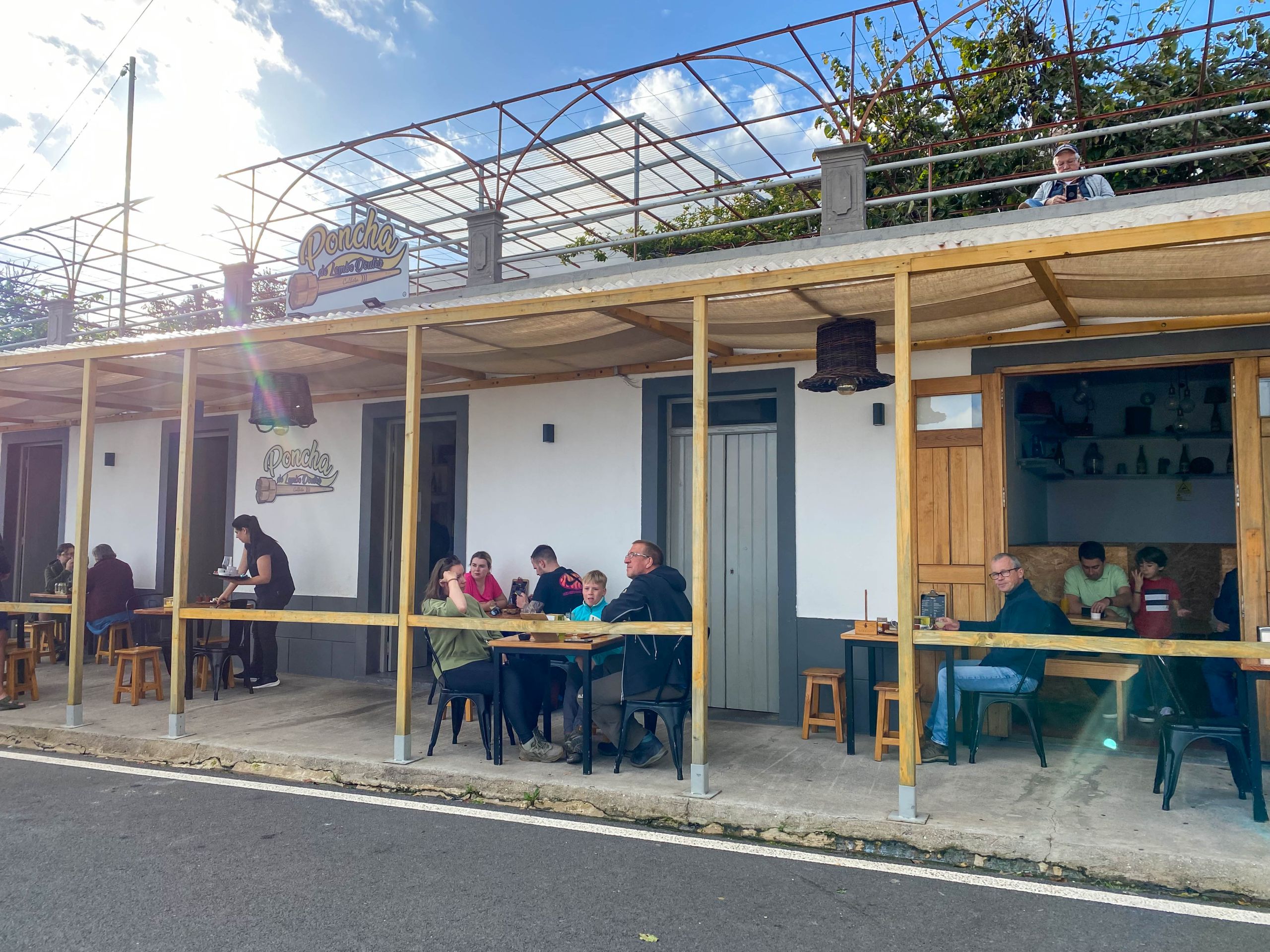 Wir fahren auf dem Weg zur Unterkunft noch den großen Supermarkt in Santana an, um unsere Vorräte aufzufüllen und dann geht es zurück zum Casa do Miradouro. Nach dem Frischmachen gehen wir noch im Kare's Café essen und setzen unser Poncha-Verkostung von gestern fort. Daran kann man sich wirklich gewöhnen 😜.