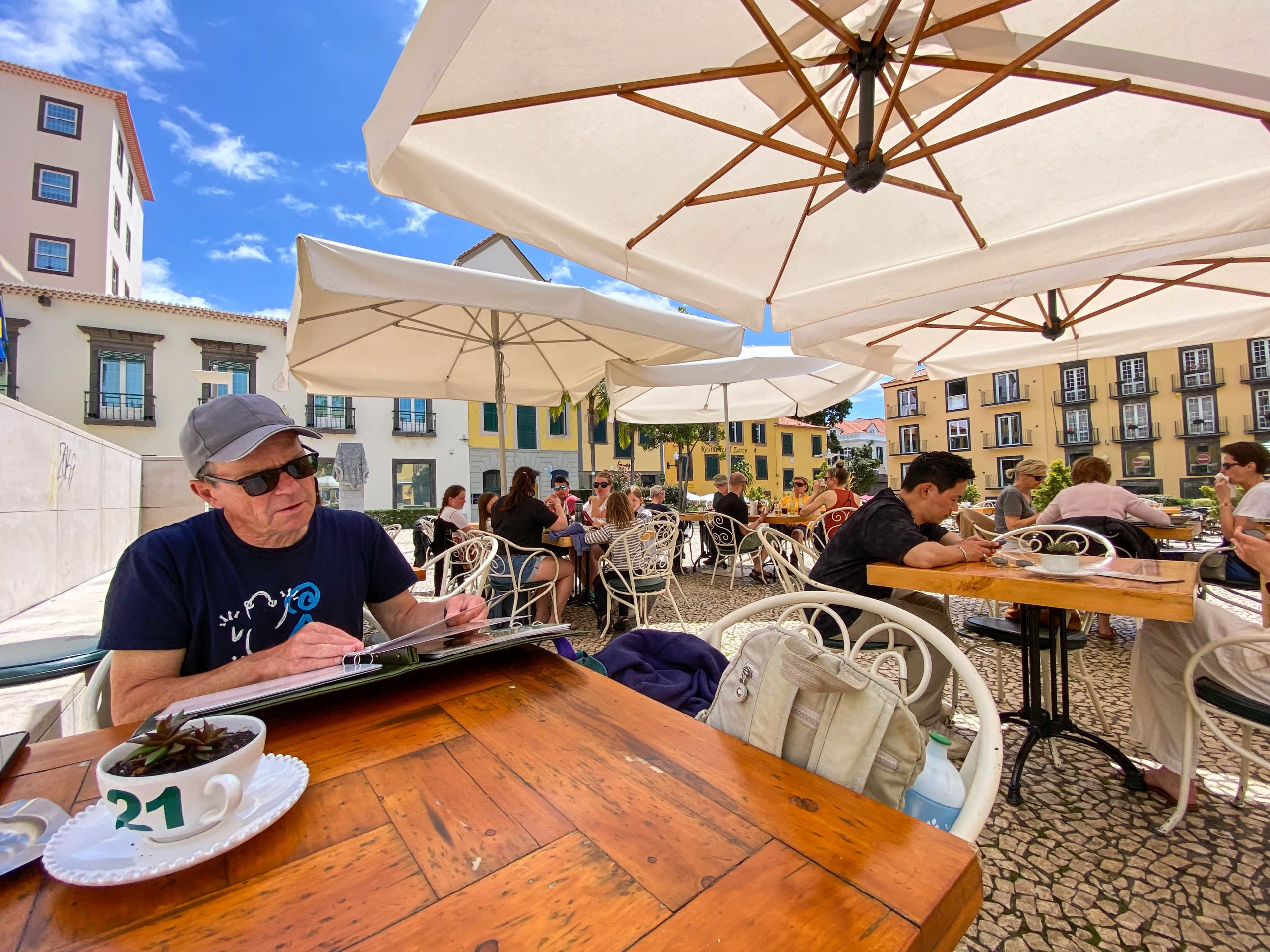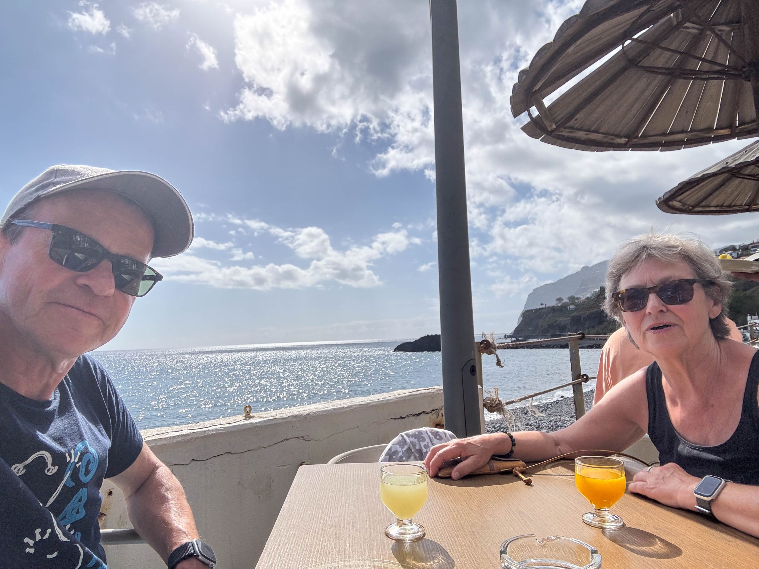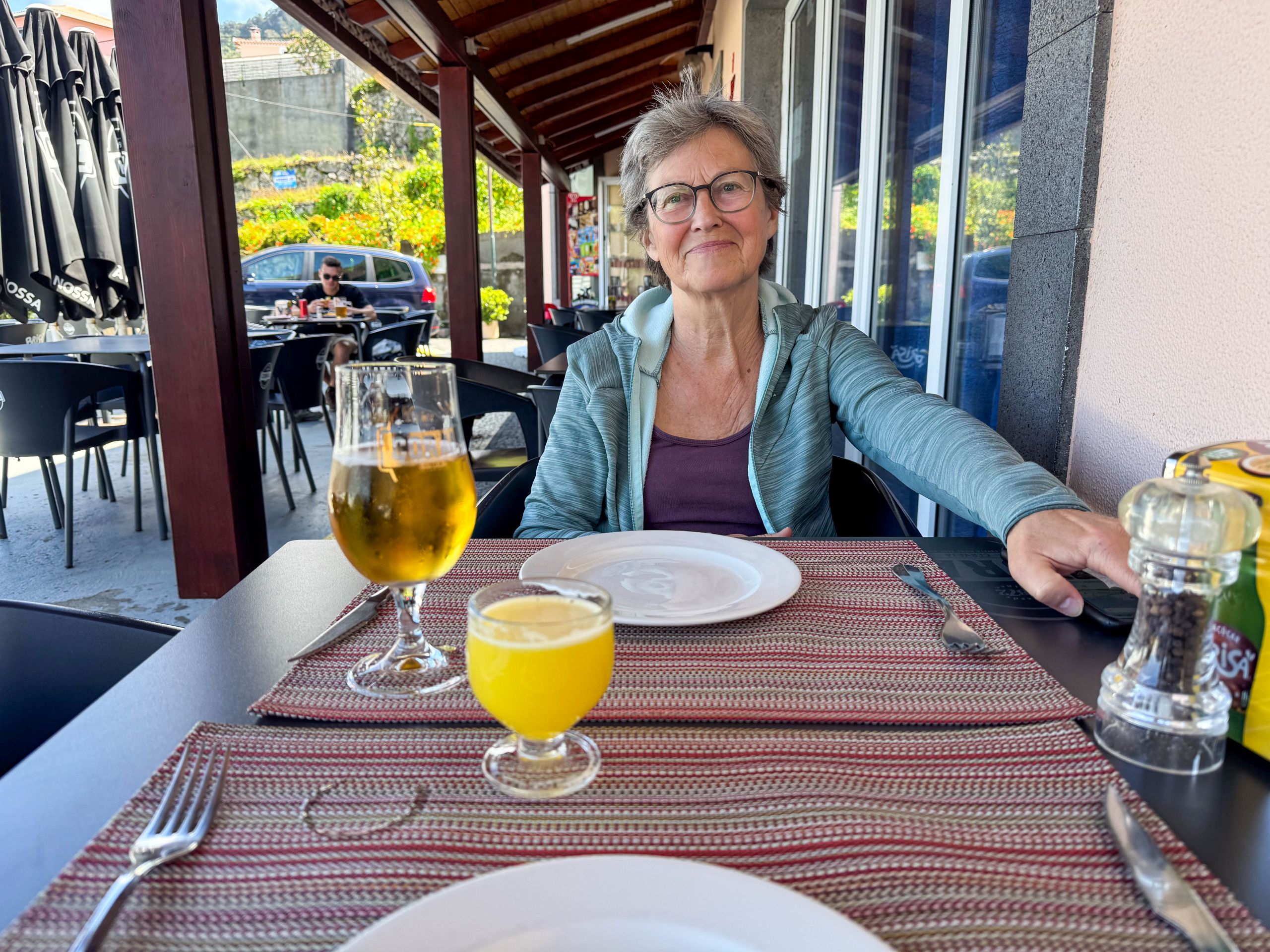 Wieder am Auto angekommen, beschließen wir, nach Calheta zu fahren und dort etwas zu essen und Brot zu kaufen. Das Gute an Calheta ist, dass die Restaurants durchgehend geöffnet haben und wir auch zwischen Mittag-und Abendessen zum Essen einkehren können. Daran scheitern wir oft in unseren Urlauben. Aber kaum steigen wir in Calheta aus, fängt es wieder an zu regnen und zu stürmen. Ehe wir jedoch am Lokal ankommen, hat sich das Wetter wieder beruhigt und wir können sogar draussen essen.