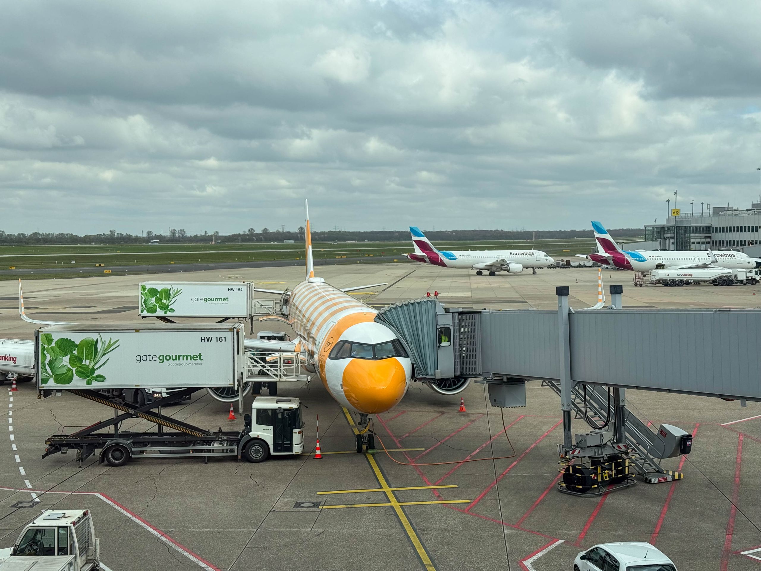 Jetzt laufen wir mal wieder durch die längst bekannten Geschäfte des Düsseldorfer Flughafens und warten, dass das Boarding bei Condor losgeht.
