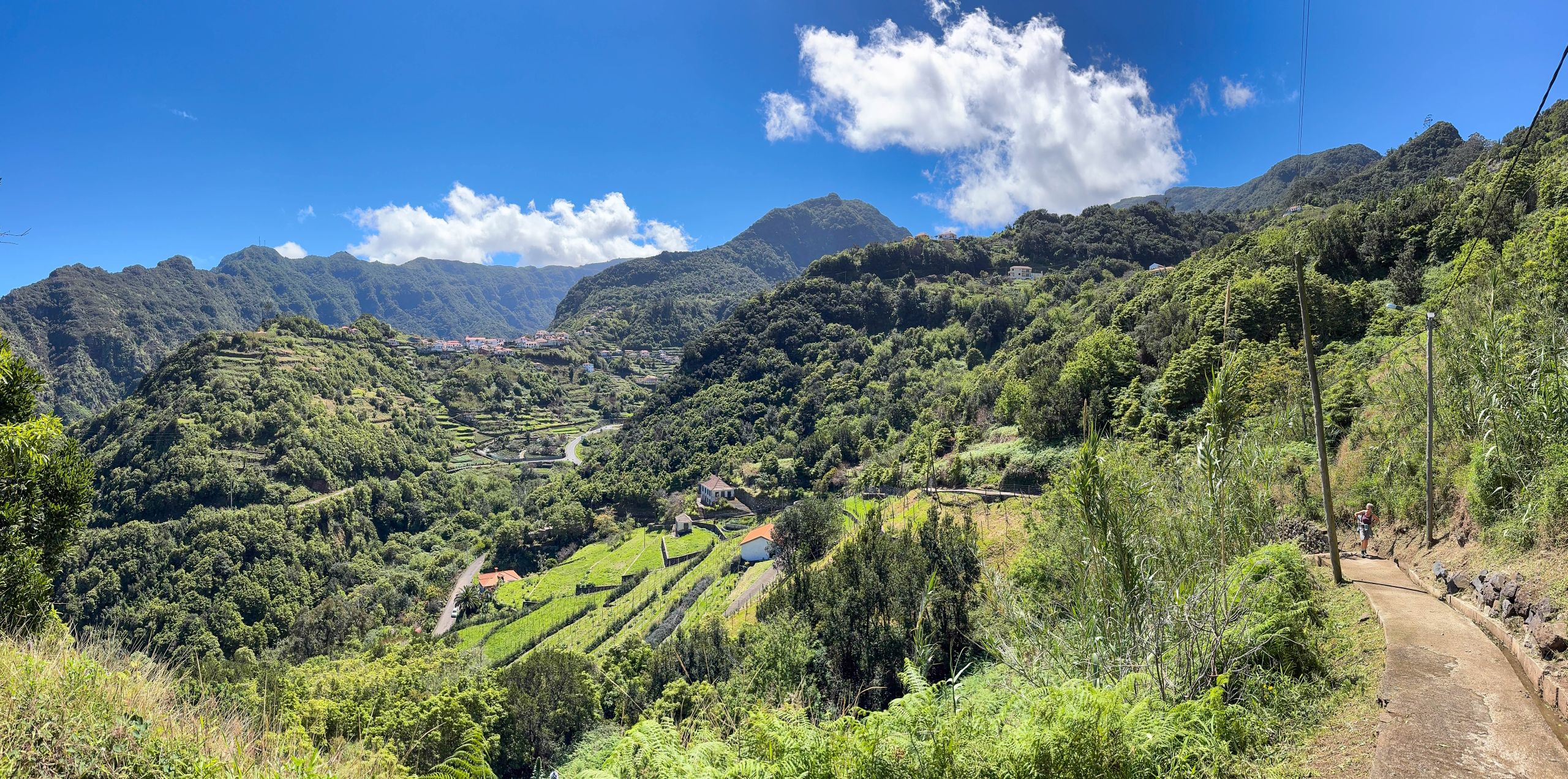 Zum Schluss geht man noch 1,2 km auf dem Estradão do Rochâo (PR6.8), der eigentlich gebührenpflichtig ist, was wir uns aber sparen, da es auch auf den Schildern noch nicht mal ausgewiesen ist. So geht es noch bis zur Kapelle Nossa Senhora de Fátima und auf dem gleichen Weg wieder zurück. Zur Unterkunft fahren wir dann über die ER 222 durch Arco da Calheta, dass uns beim durchfahren sehr gut gefällt.