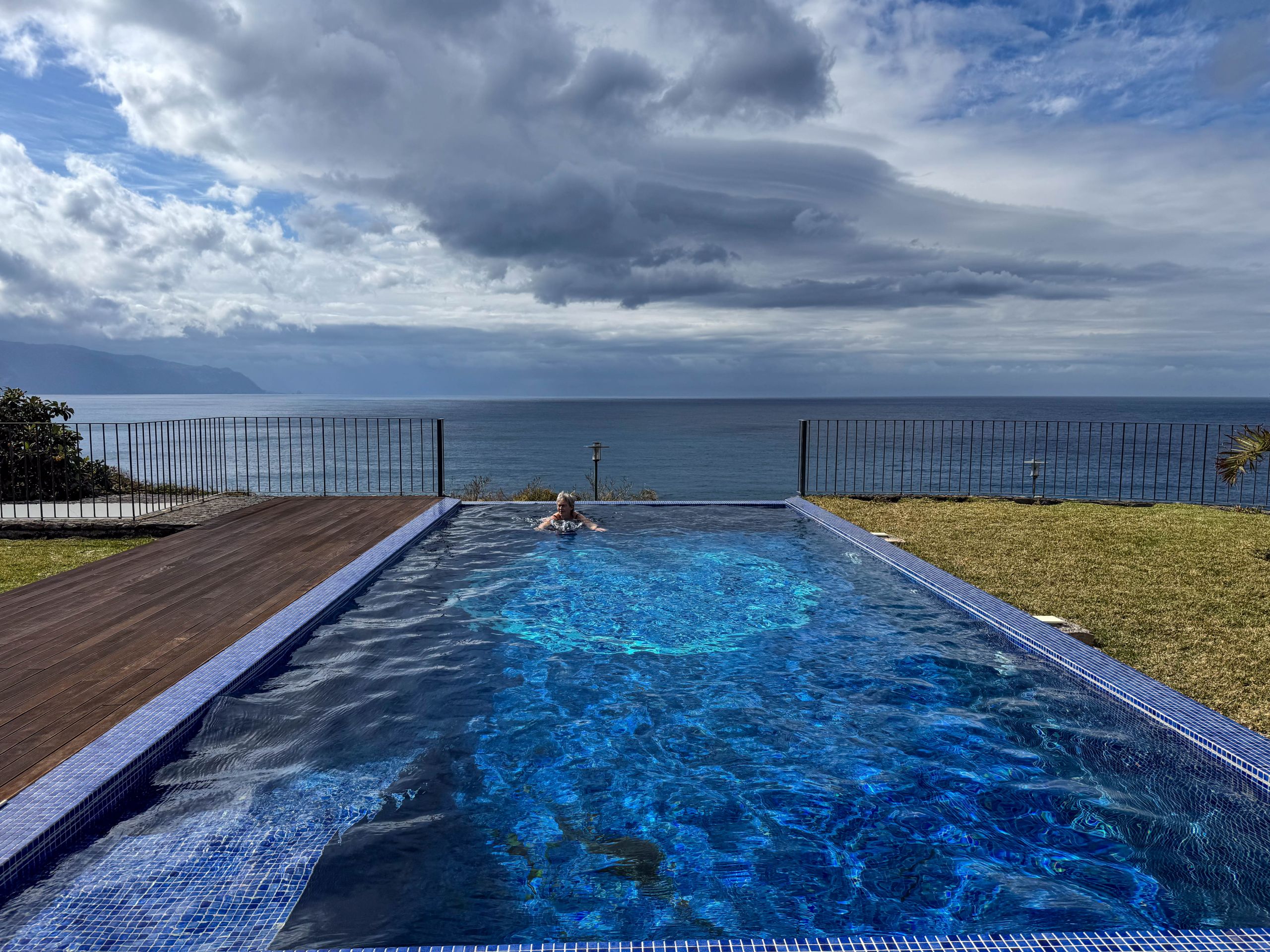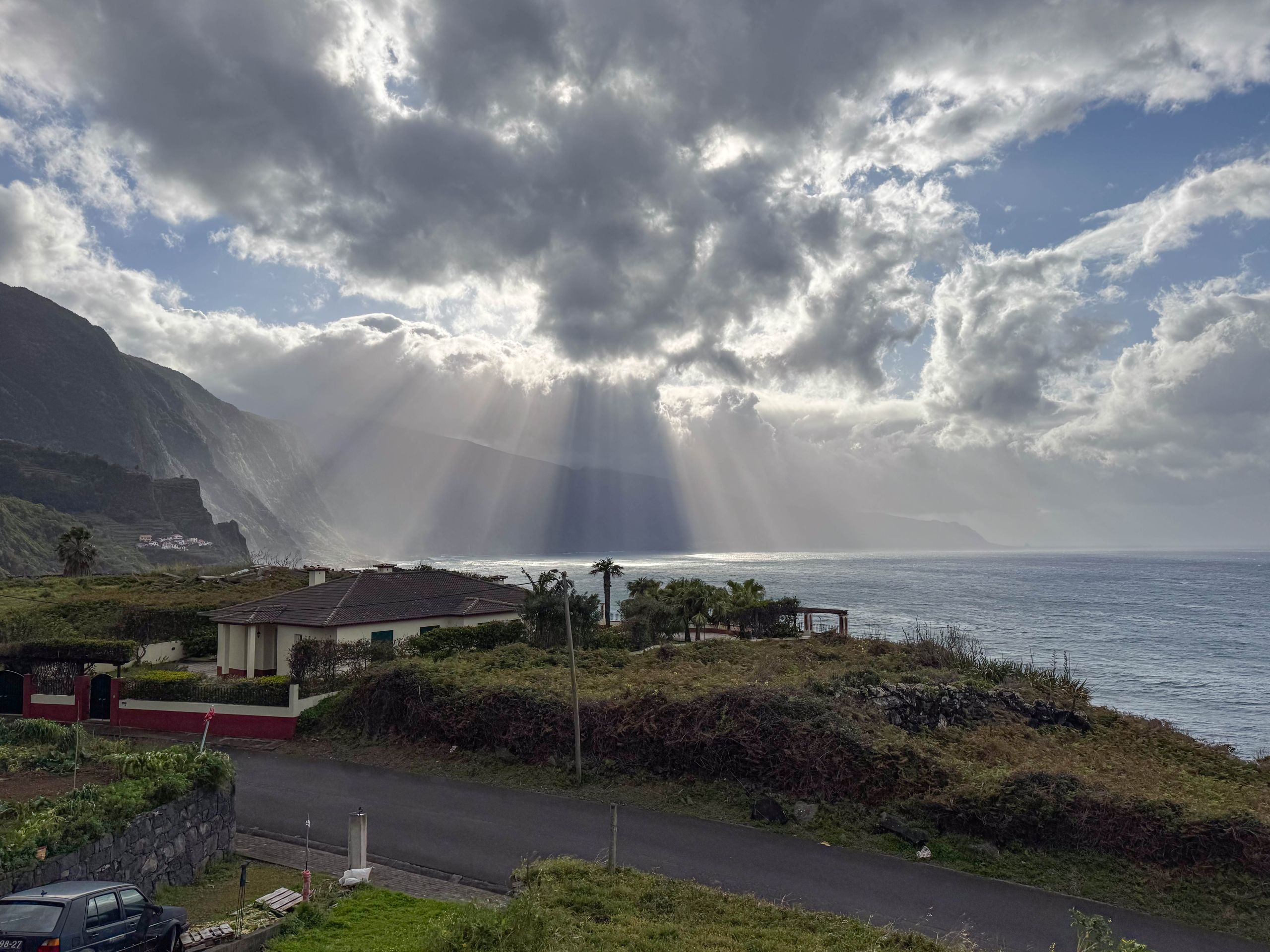 Das schöne Wetter hat gehalten und so können wir bei unserer Heimkehr noch ein wenig das tolle Wetter auf unserem Balkon genießen. Morgen früh geht es weiter zur nächsten Unterkunft im Süden der Insel bei Calheta. Die Ruhe hier und den fantastischen Blick so nah an der Küste hier im Casa do Miradouro werden wir sicherlich sehr vermissen.