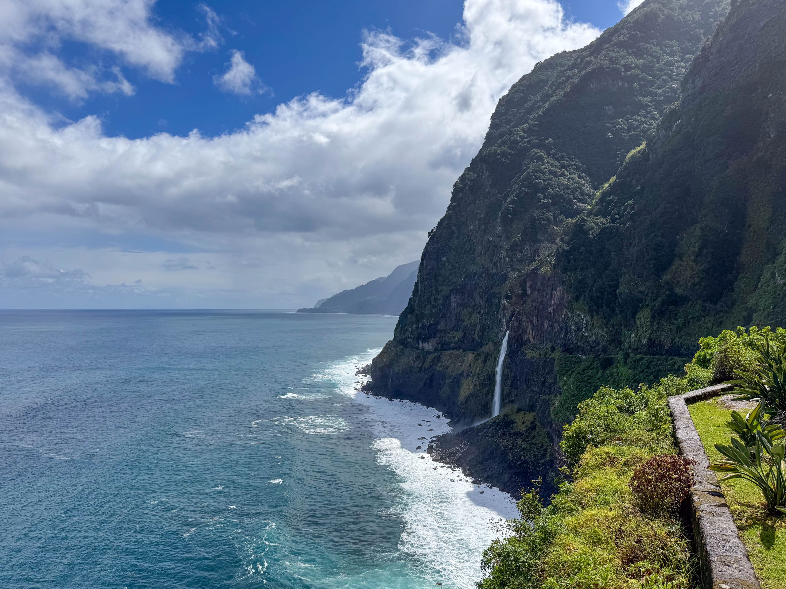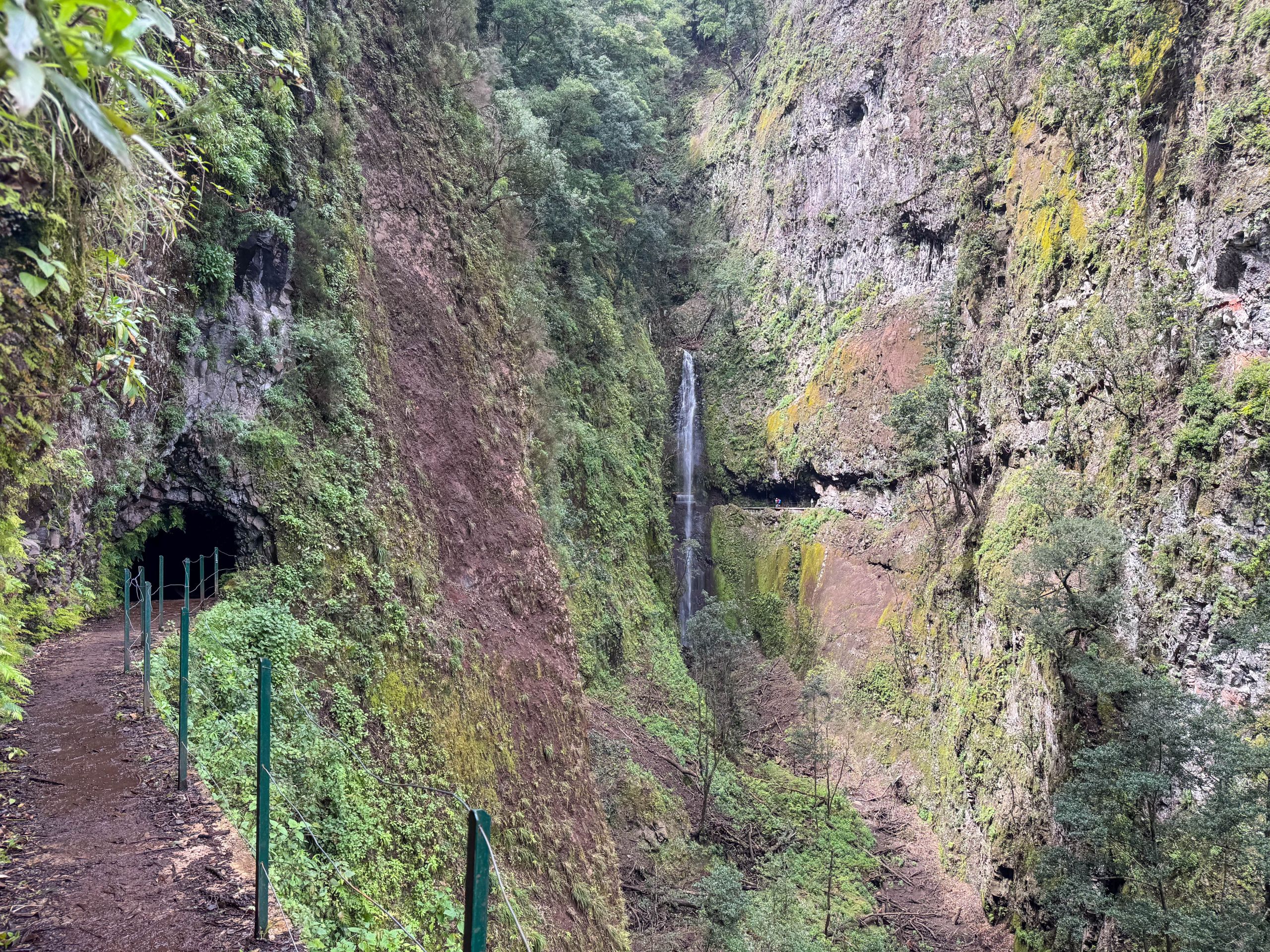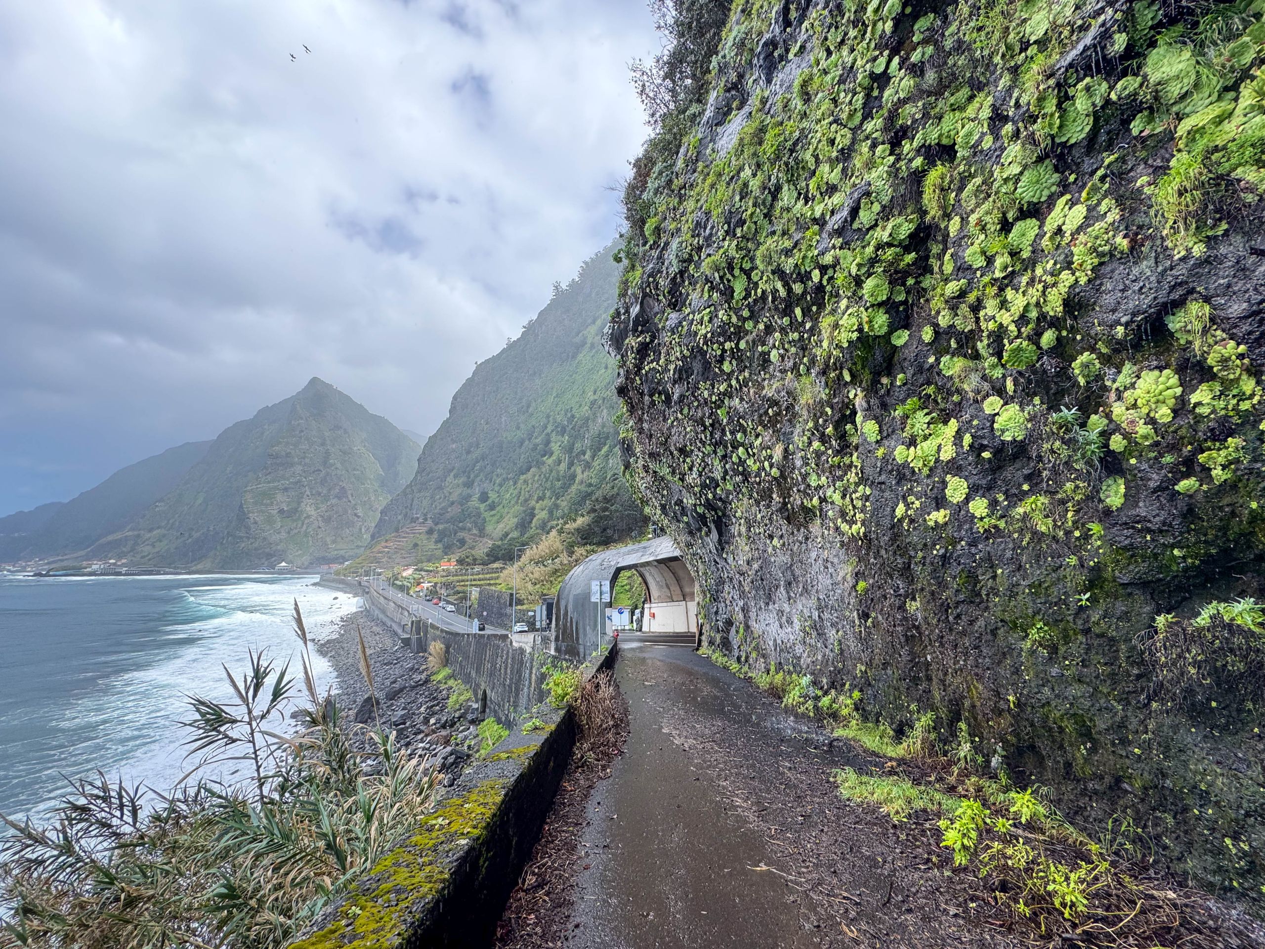Wir wollen in Ponta do Sol zu einem Wasserfall, der auch ein Influencer Hotspot ist. Dazu gehen wir durch einen Tunnel und danach einen schmalen Küstenweg. Wir machen am Wasserfall die obligatorischen Fotos, laufen zurück in den Ort und sind nach knapp 90 Minuten wieder am Auto.