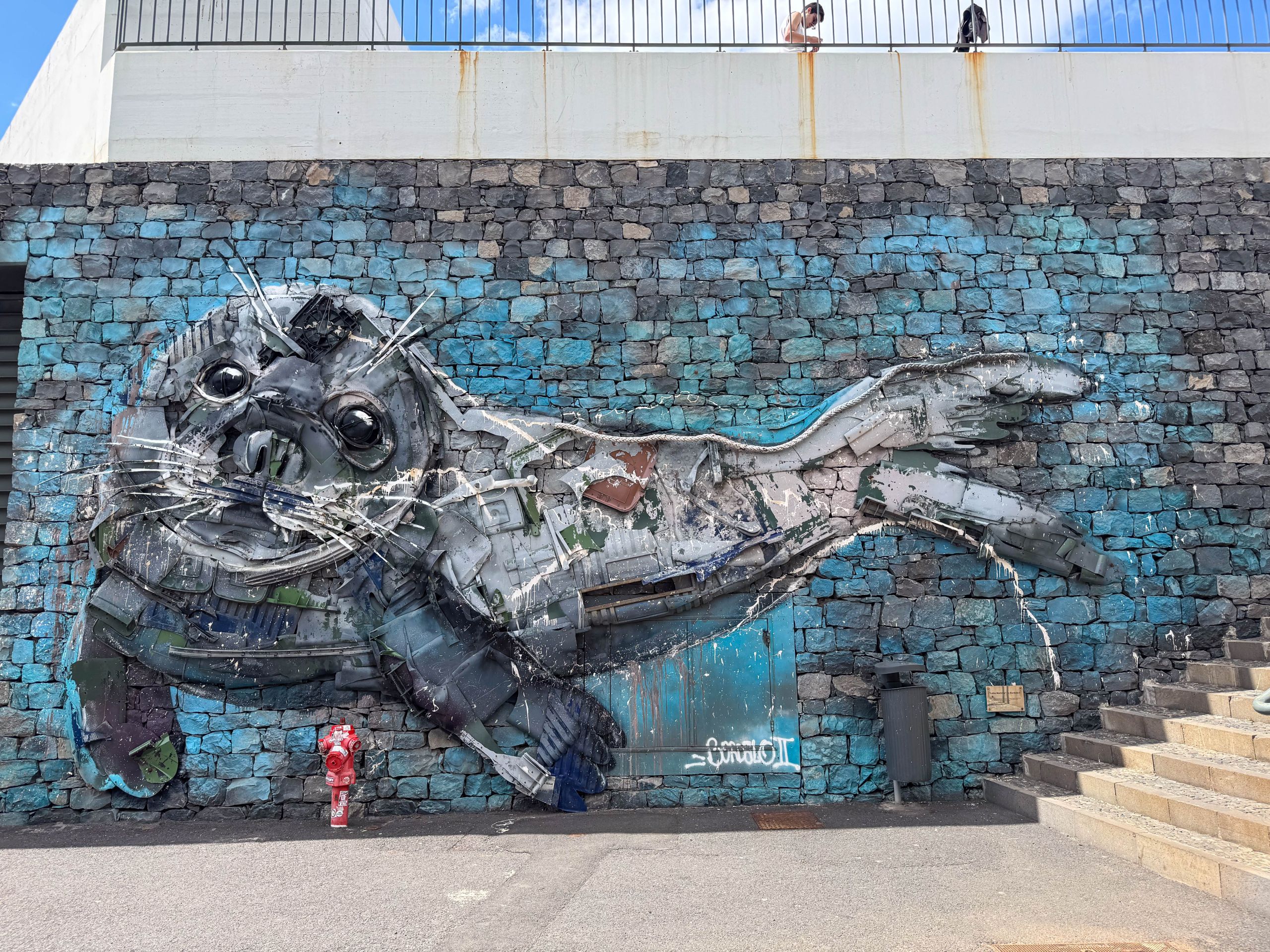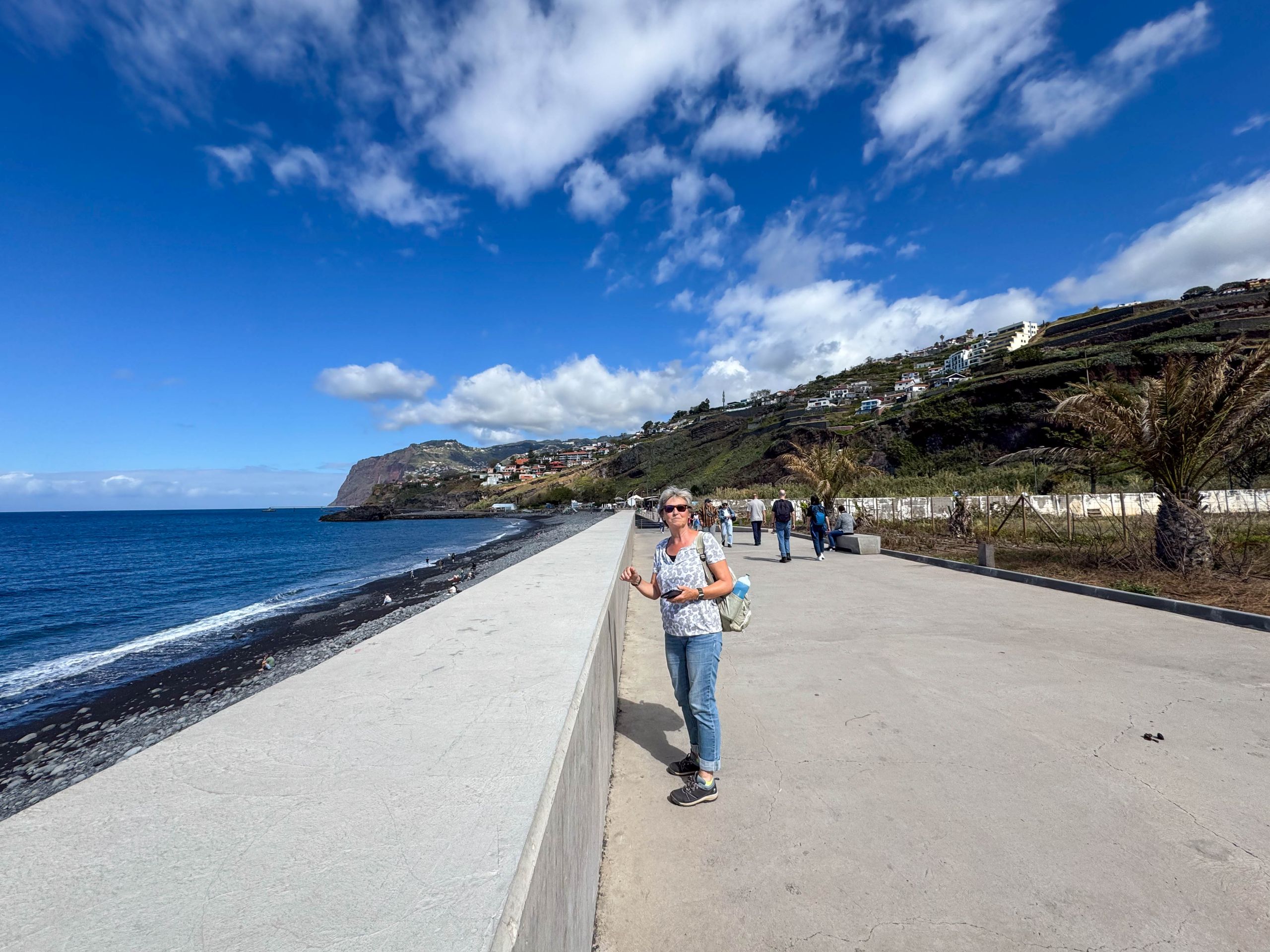 Heute müssen wir um 10 Uhr die Unterkunft räumen. Das Wetter ist immer noch grau, aber an die 20 Grad. Wir machen uns zuerst auf den Weg nach Ponta do Sol. Hier stehen wir wieder an einer Parkuhr, die nur Münzen nimmt oder mit einer App bezahlt werden kann. Nachdem Gerd versucht hat, die App zum laufen zu bekommen, finde ich doch noch genug Münzen, um bar zu bezahlen. Münzgeld sollte man auf Madeira sicherheitshalber immer dabei haben.