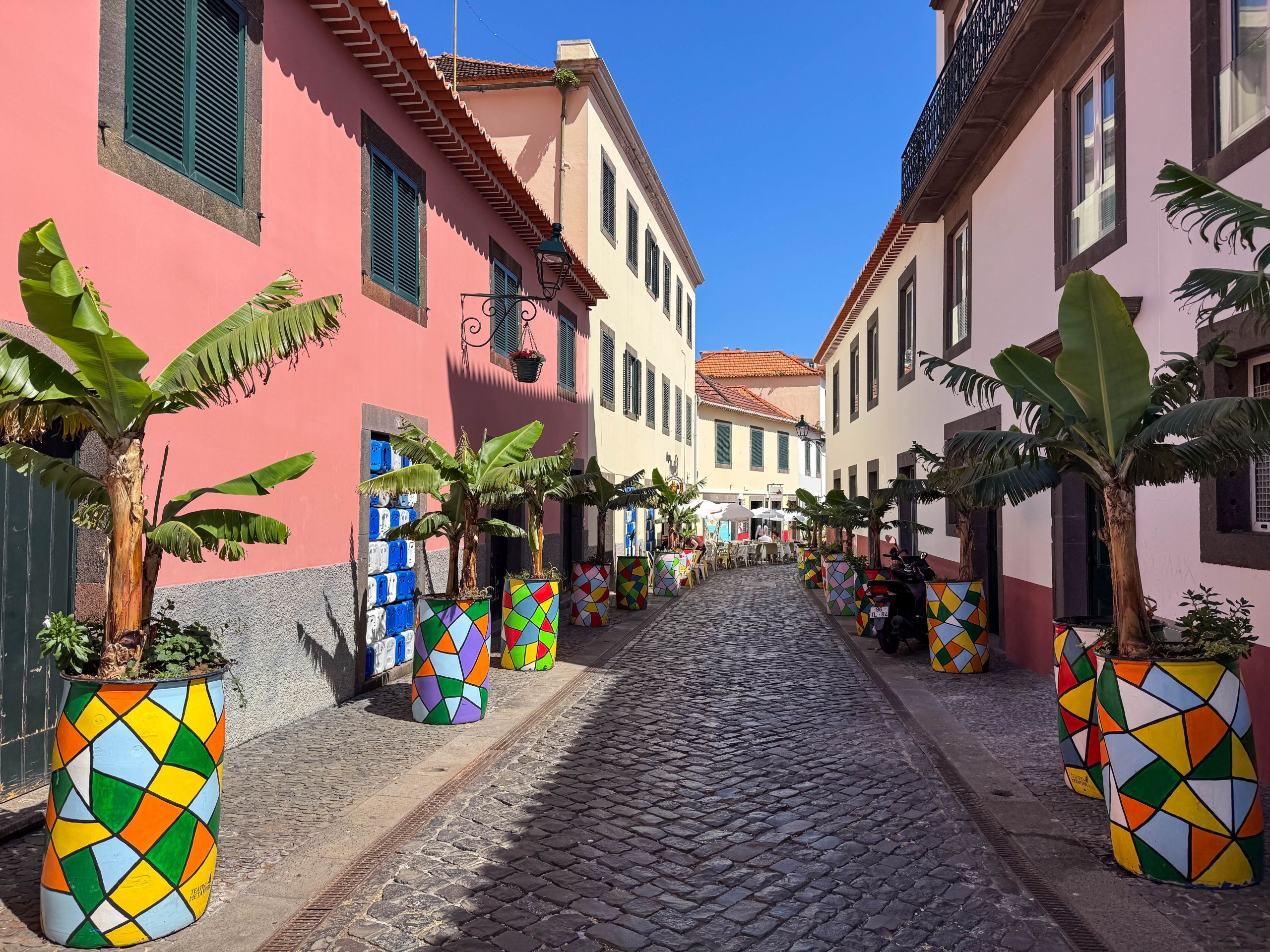 In Funchal angekommen durchstreifen wir einfach die Altstadt wie es uns in den Sinn kommt, trinken zwischendurch etwas auf dem ruhig gelegenen Praça do Colombo und bevor es zurück geht, essen wir noch zu Mittag. Dann machen wir uns auf den ca. 8 - 10 km langen Rückweg, je nachdem, wie wir zurückgehen. Das Wetter ist den ganzen Tag über viel schöner als erwartet und wir sind richtig begeistert.