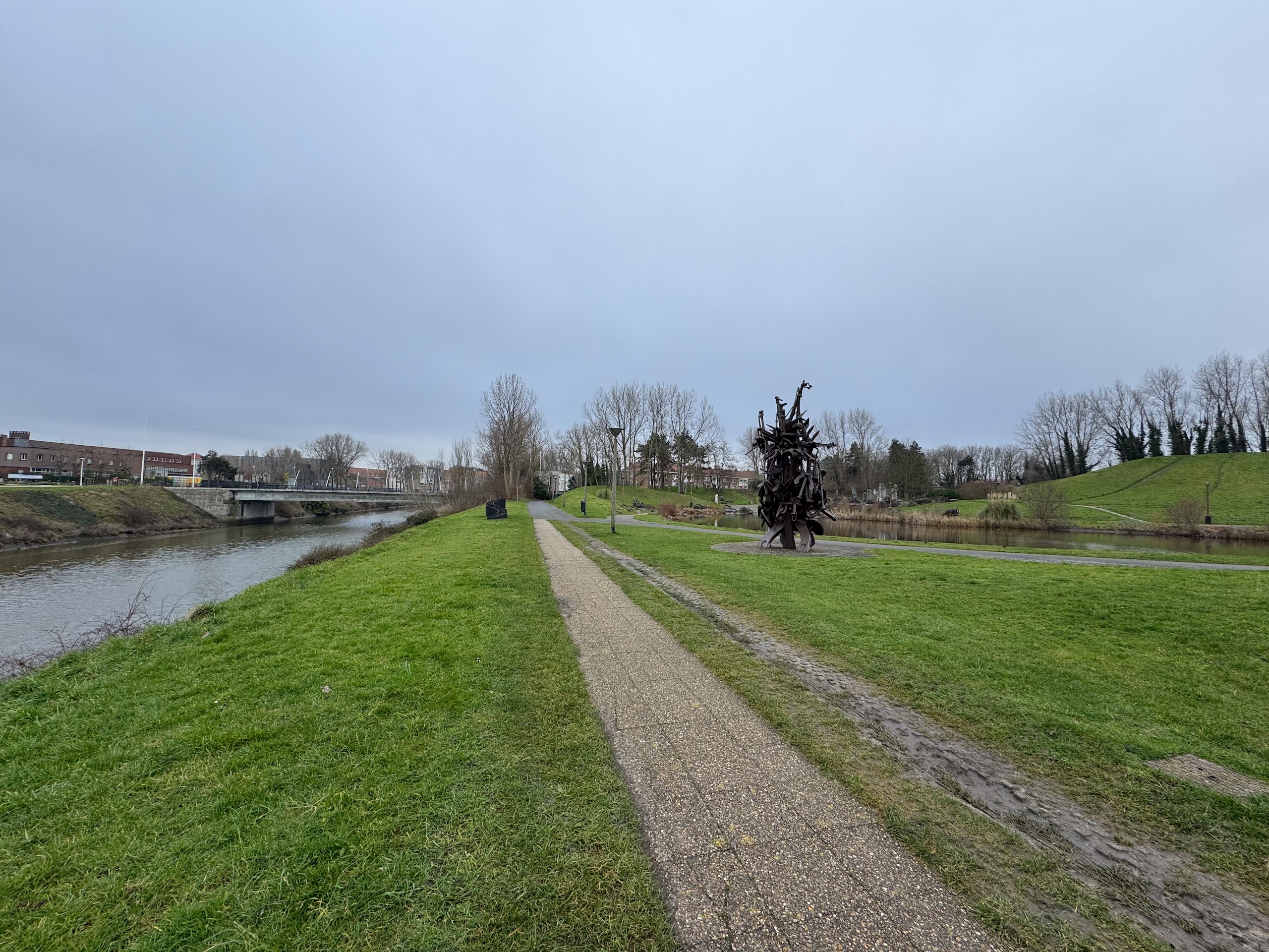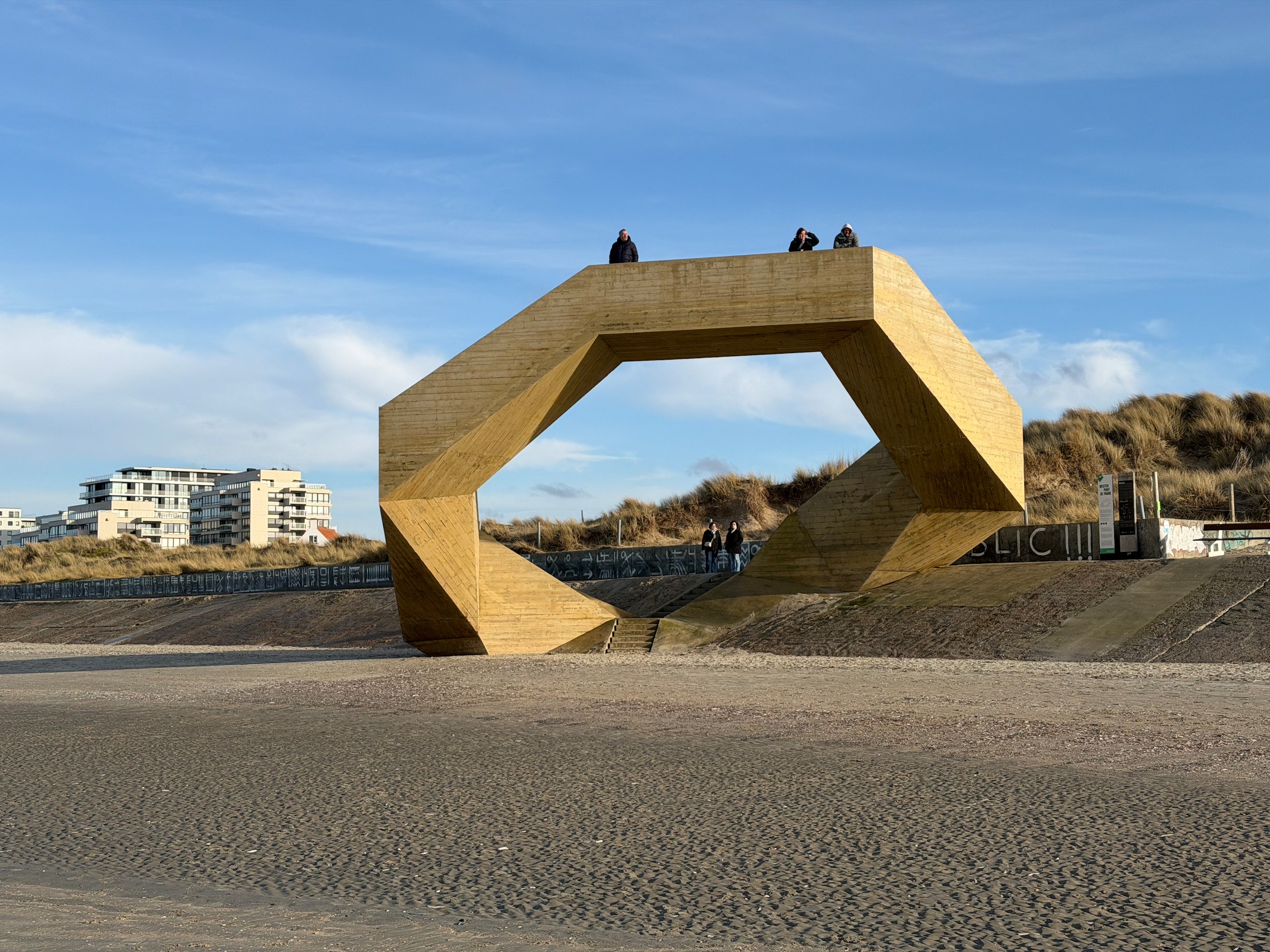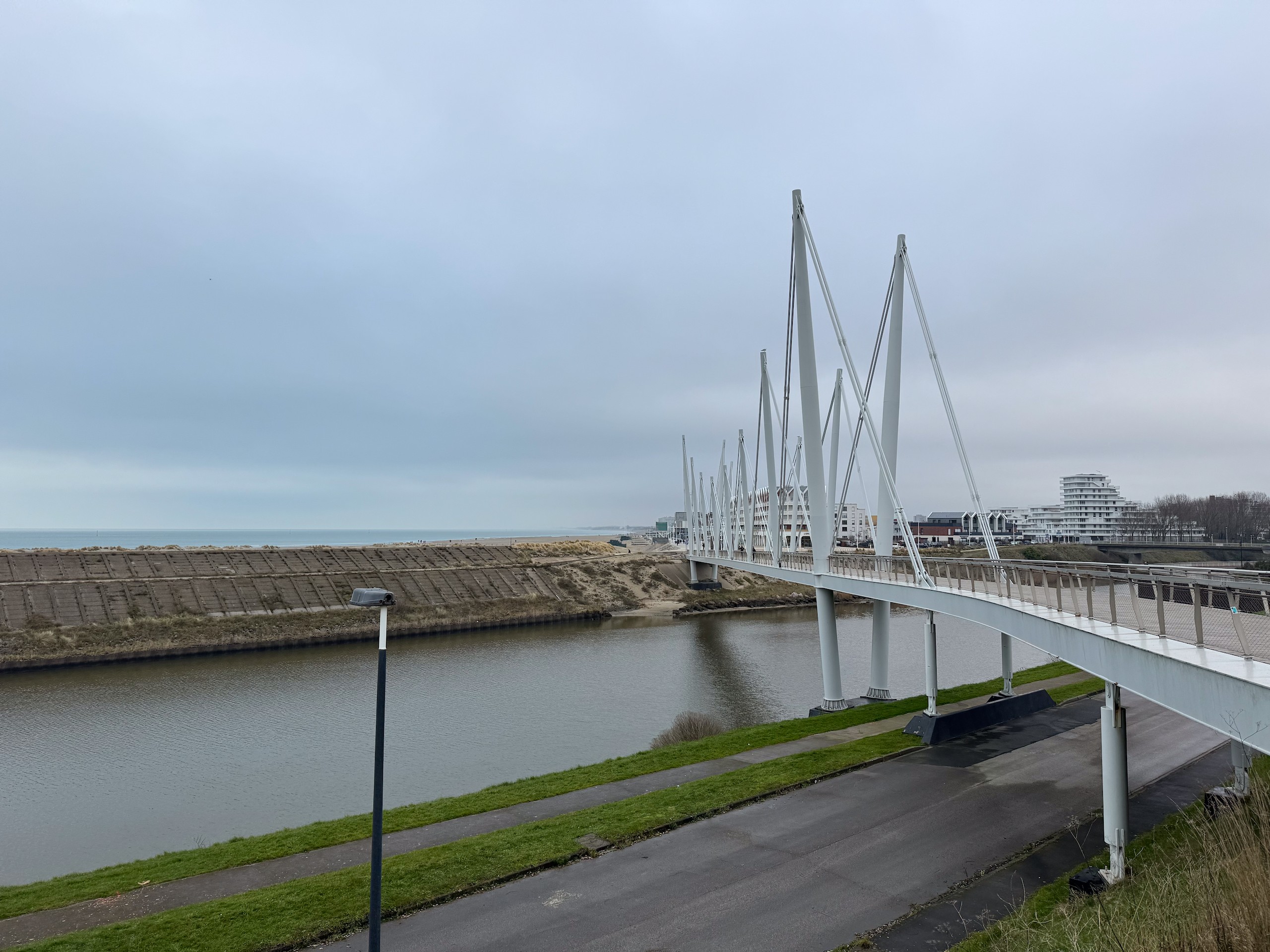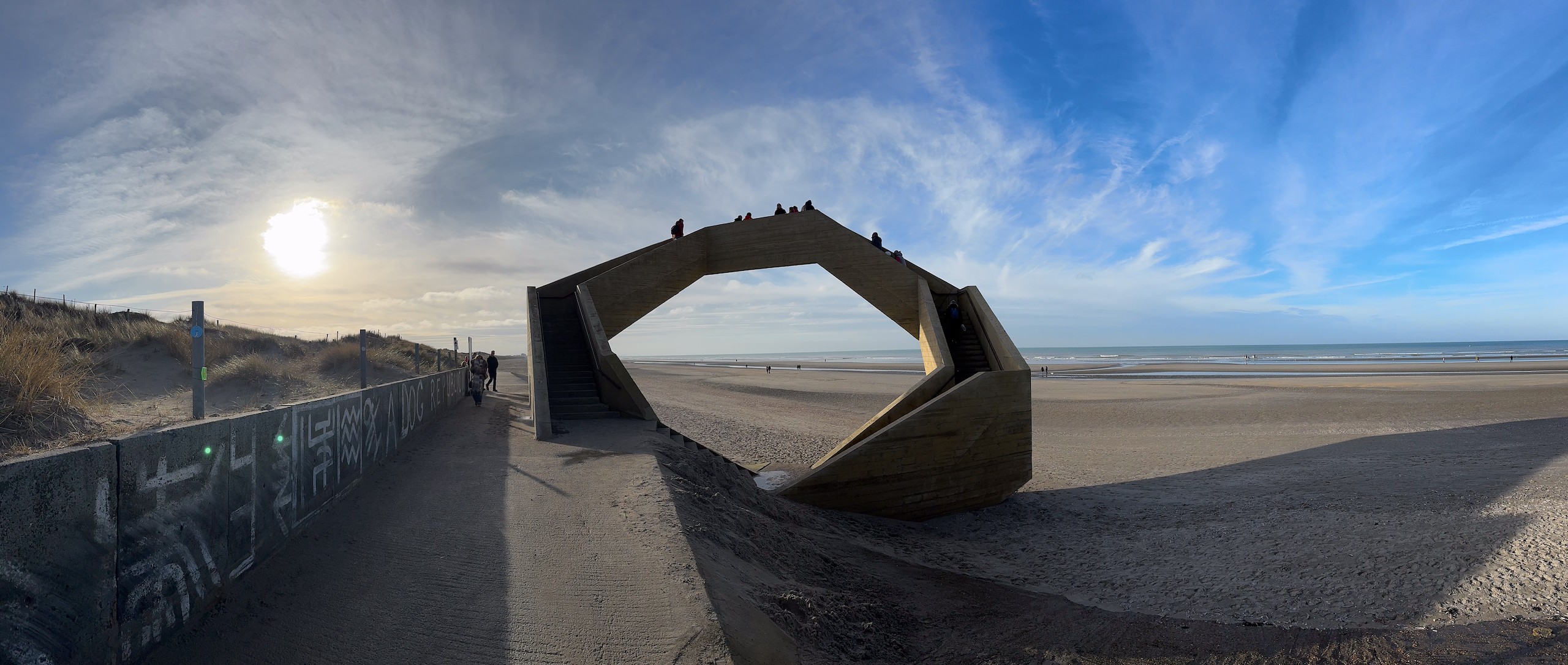 Die Promenade ist jetzt im Januar wie ausgestorben und hat einen hübsch-häßlichen Charme. Im Sommer sieht es sicher deutlich einladender aus. Wir laufen dann noch ein ganzes Stück am Meer entlang, denn der Strand ist hier wunderschön weitläufig und es ist gerade Ebbe. Aber trotzdem kehren wir bald wieder um, denn es ist schon recht frisch. Viel werden wir heute nicht mehr unternehmen, wir wollen morgen eine größere Runde nach Belgien laufen, da müssen wir unsere Kräfte etwas schonen. Der Spaziergang ist auch wieder auf Komoot zu finden (Account erforderlich) oder auch komplett ohne über GoogleMaps.
