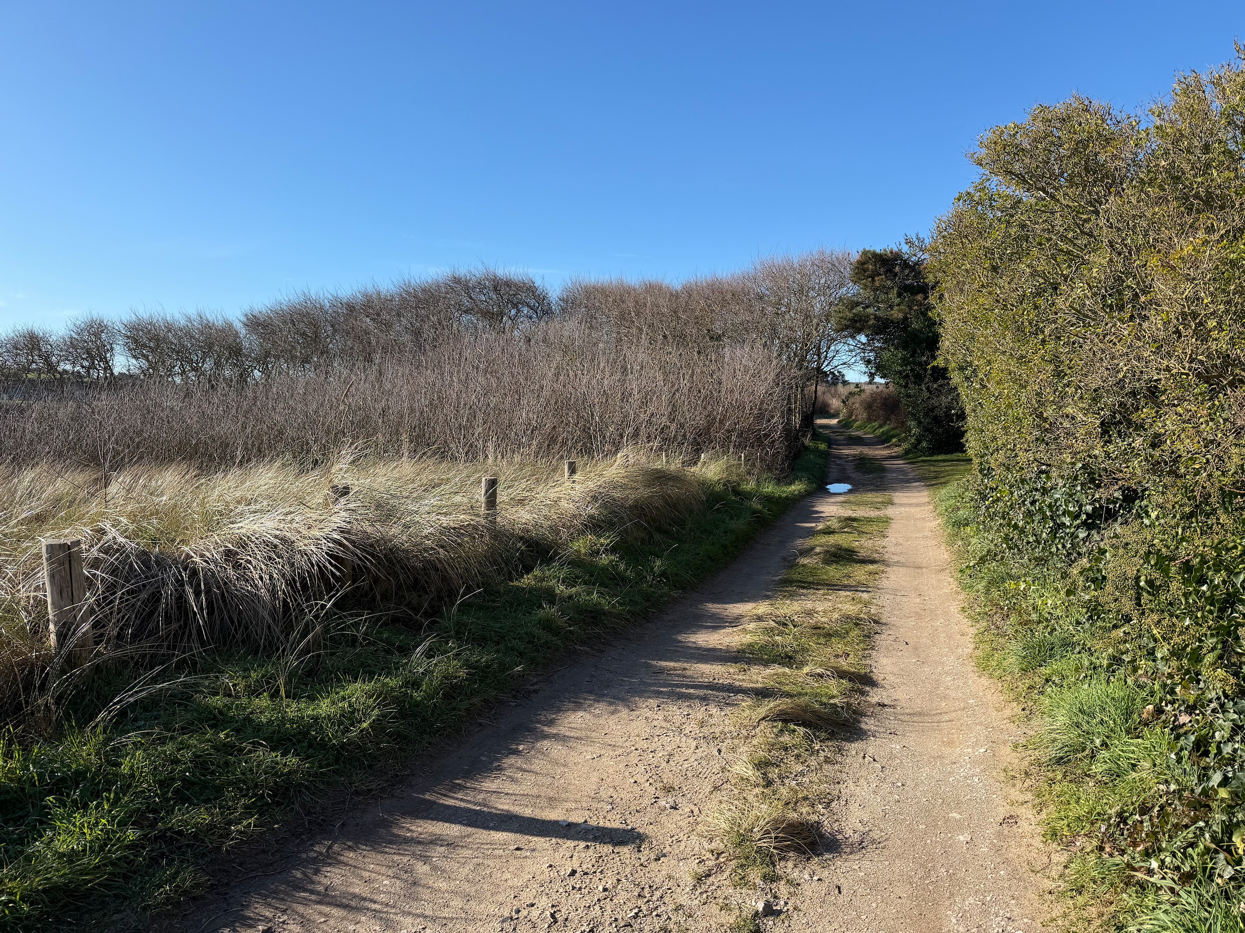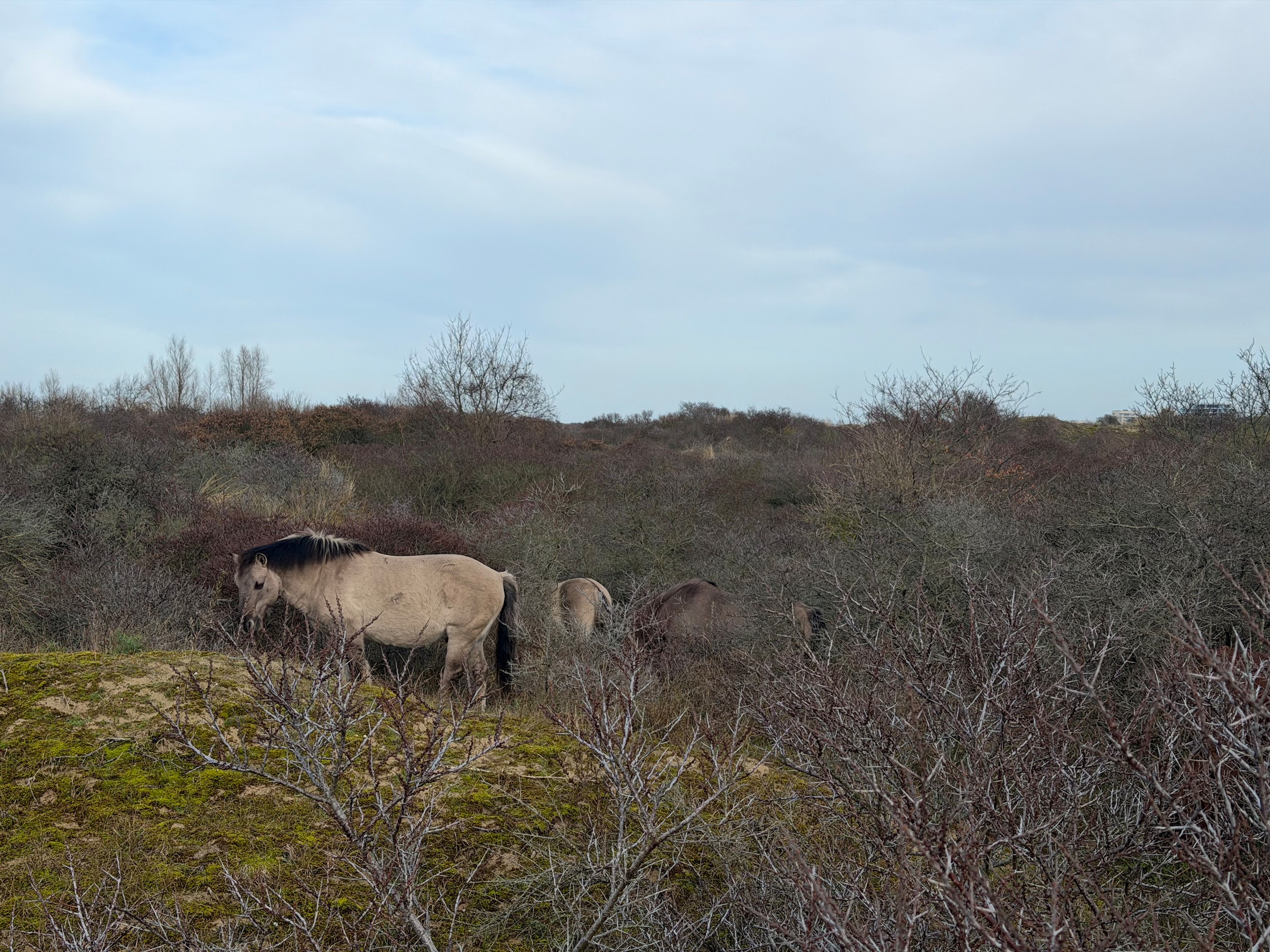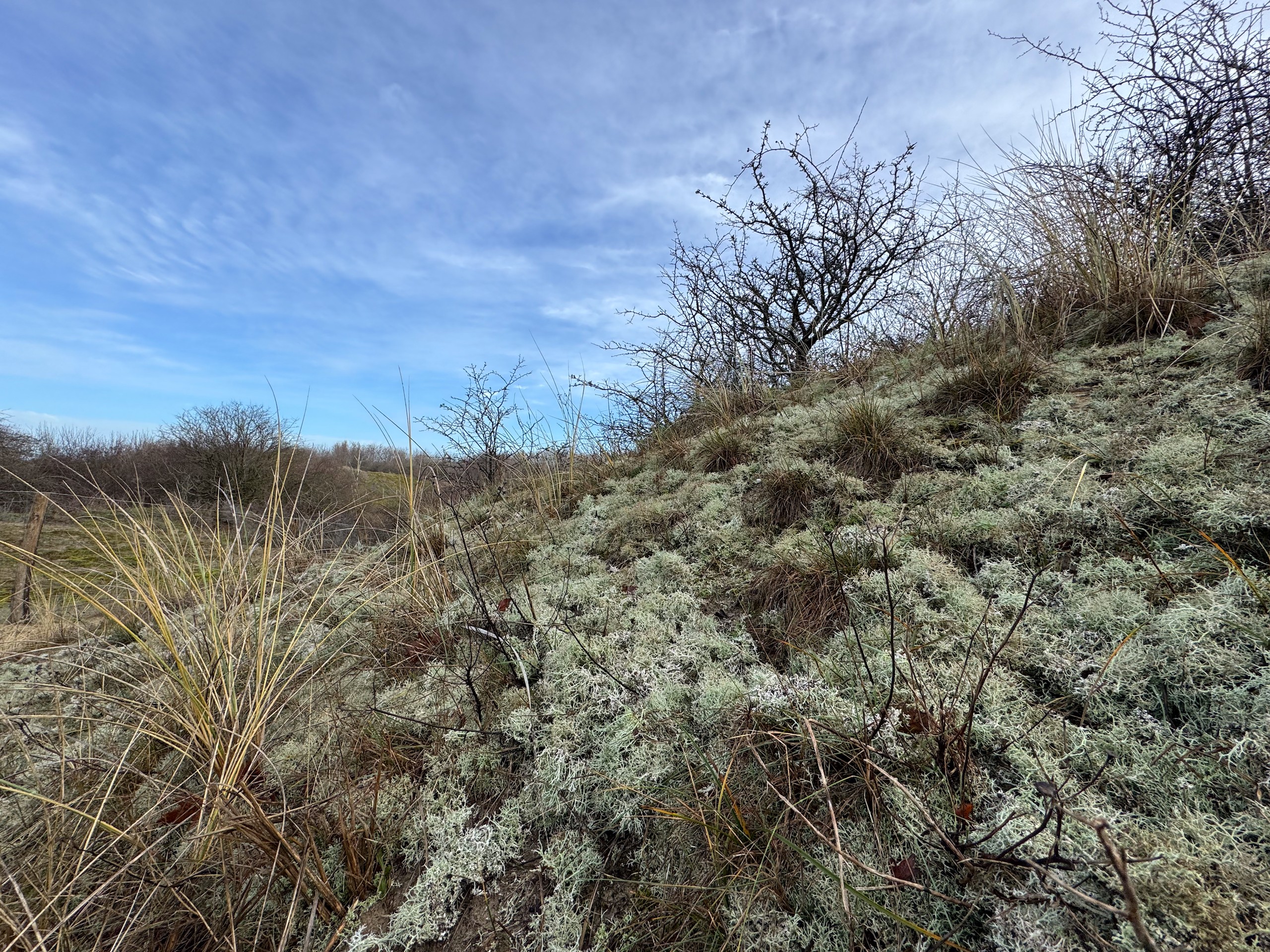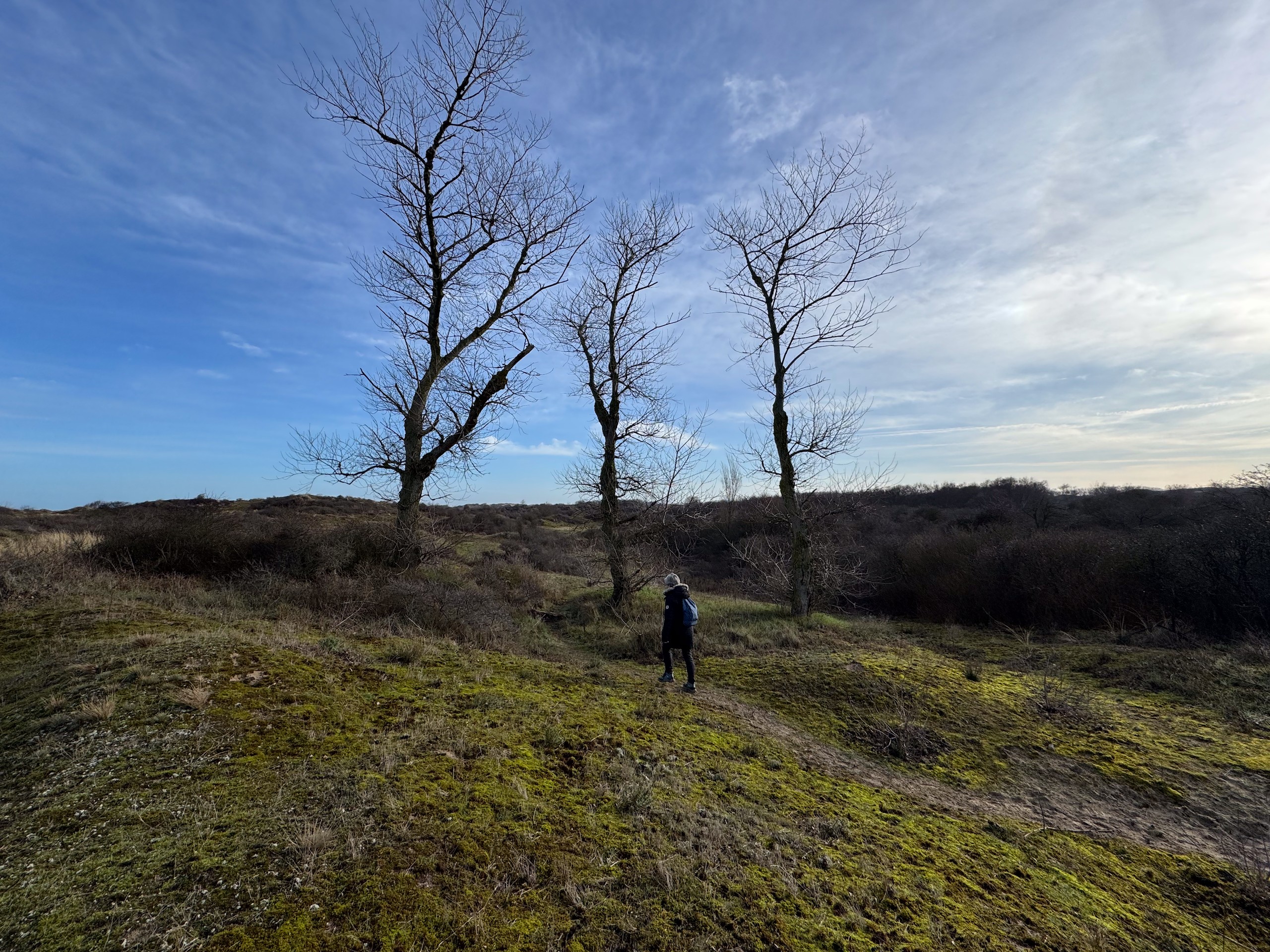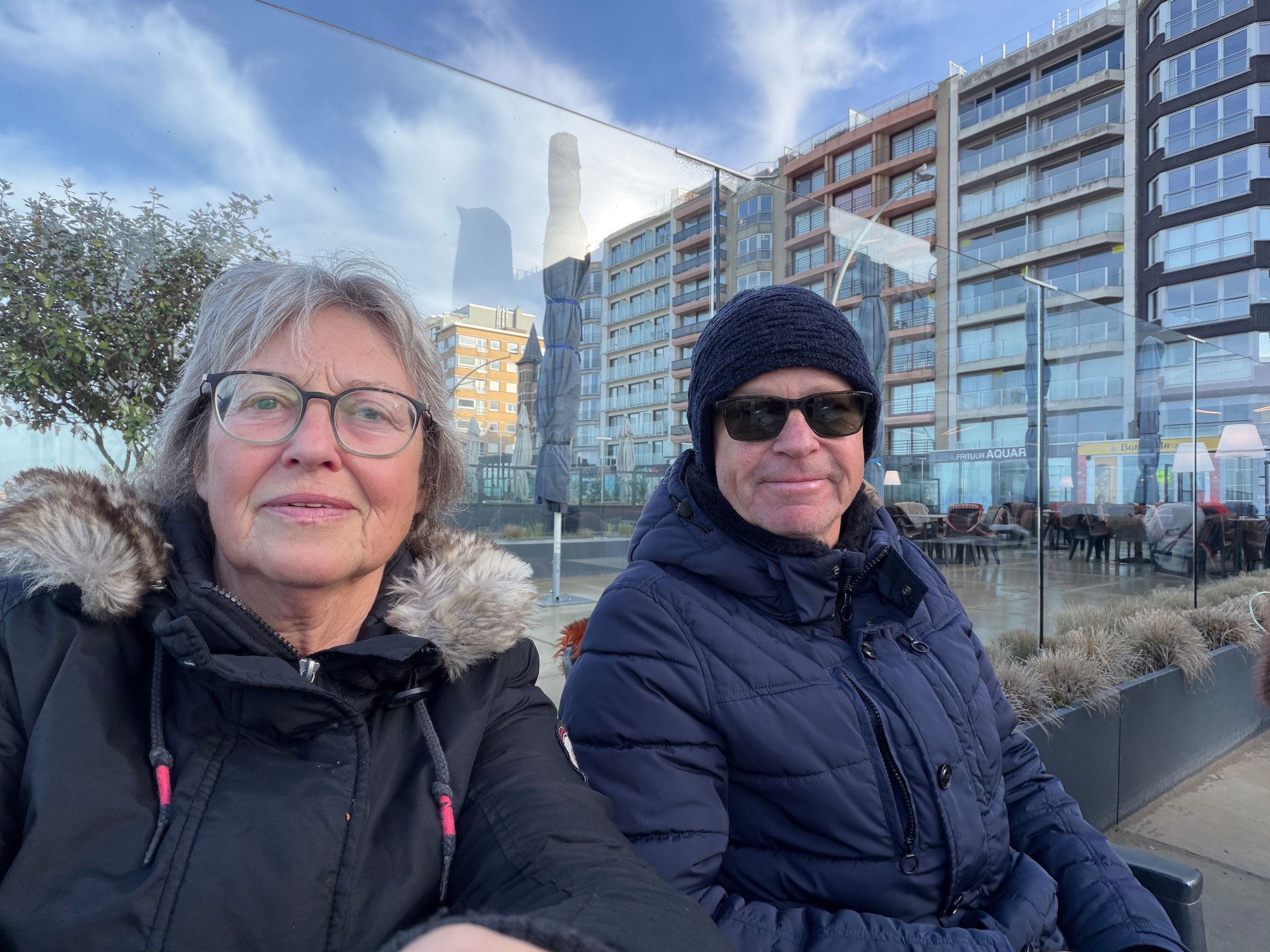 Heute morgen haben wir bis 9 Uhr geschlafen. Gestern Abend hat es noch ordentlich geregnet, aber jetzt scheint sogar die Sonne bei fast 5 Grad. Wir wollen heute durch die Dünen bis ins belgische De Panne laufen. Der Weg dorthin ist sehr schön, besonders auf der französischen Seite läuft es sich gut. Wir finden den Grenzstein und dann geht es durch das belgische Naturschutzgebiet "De Westhoek" auf anstrengenden Sandpfaden weiter.