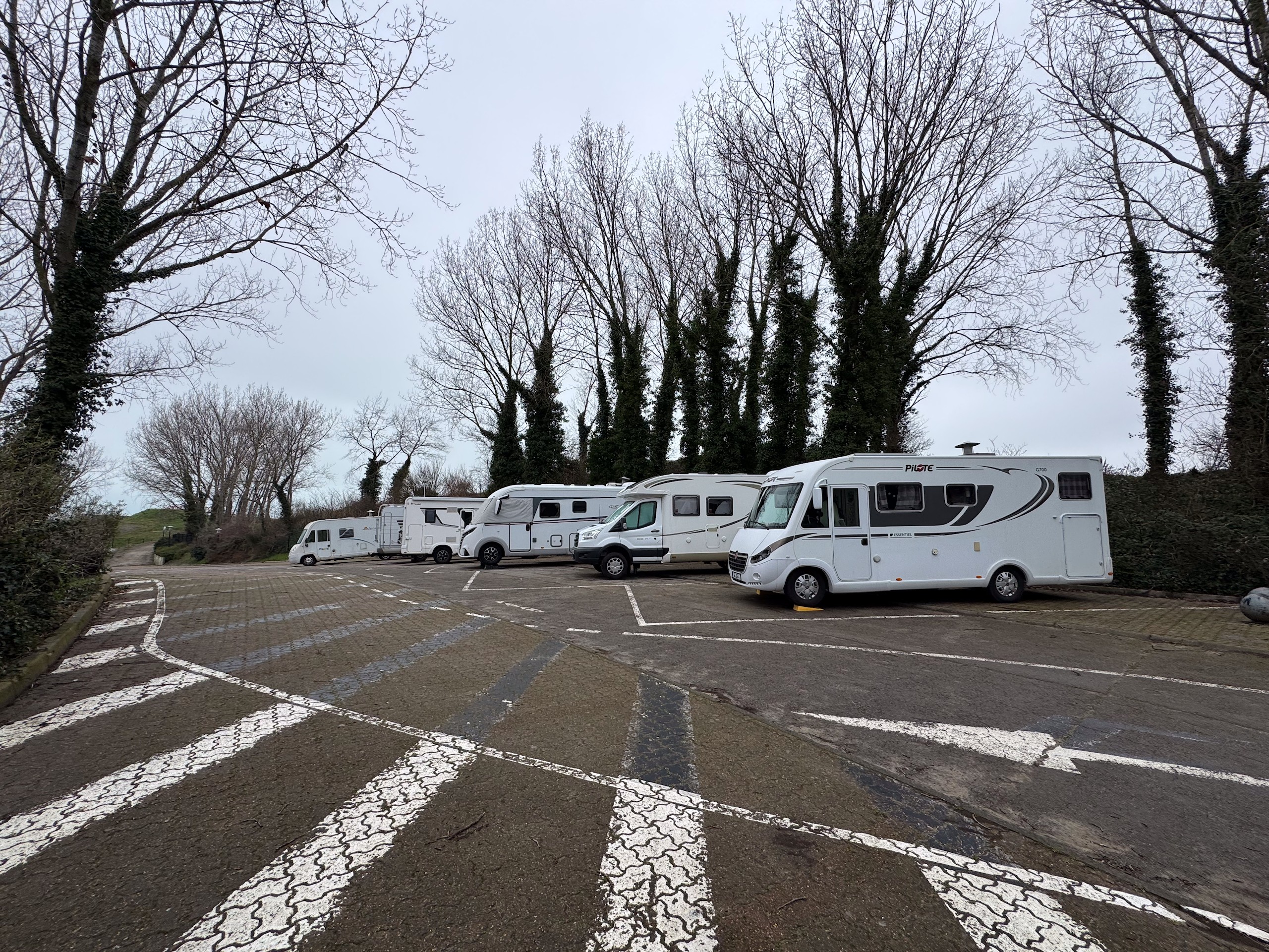 Gestern abend waren wir ordentlich geschafft und haben uns einen gemütlichen Spieleabend gemacht. Heute morgen wachen wir bei grauem, ungemütlichen Wetter auf. Nach dem Frühstück wird noch schnell ver- und entsorgt, bevor es kurz nach 11 Uhr ins keine 15 km entfernte Dünkirchen geht. Hier gibt es einen kostenlosen Stellplatz, den Aire de Camping-Car de Dunkerque in der Rue des Chantiers de France. Zumindest jetzt ausserhalb der Hauptsaison kostet er nichts. Schön ist der Platz allerdings nicht, die Plätze haben Gefälle und wir sehen auch den ein oder anderen größeren Nager draußen herumlaufen. Wir jedoch froh, dass es den Platz so zentral in Dünkirchen gibt.