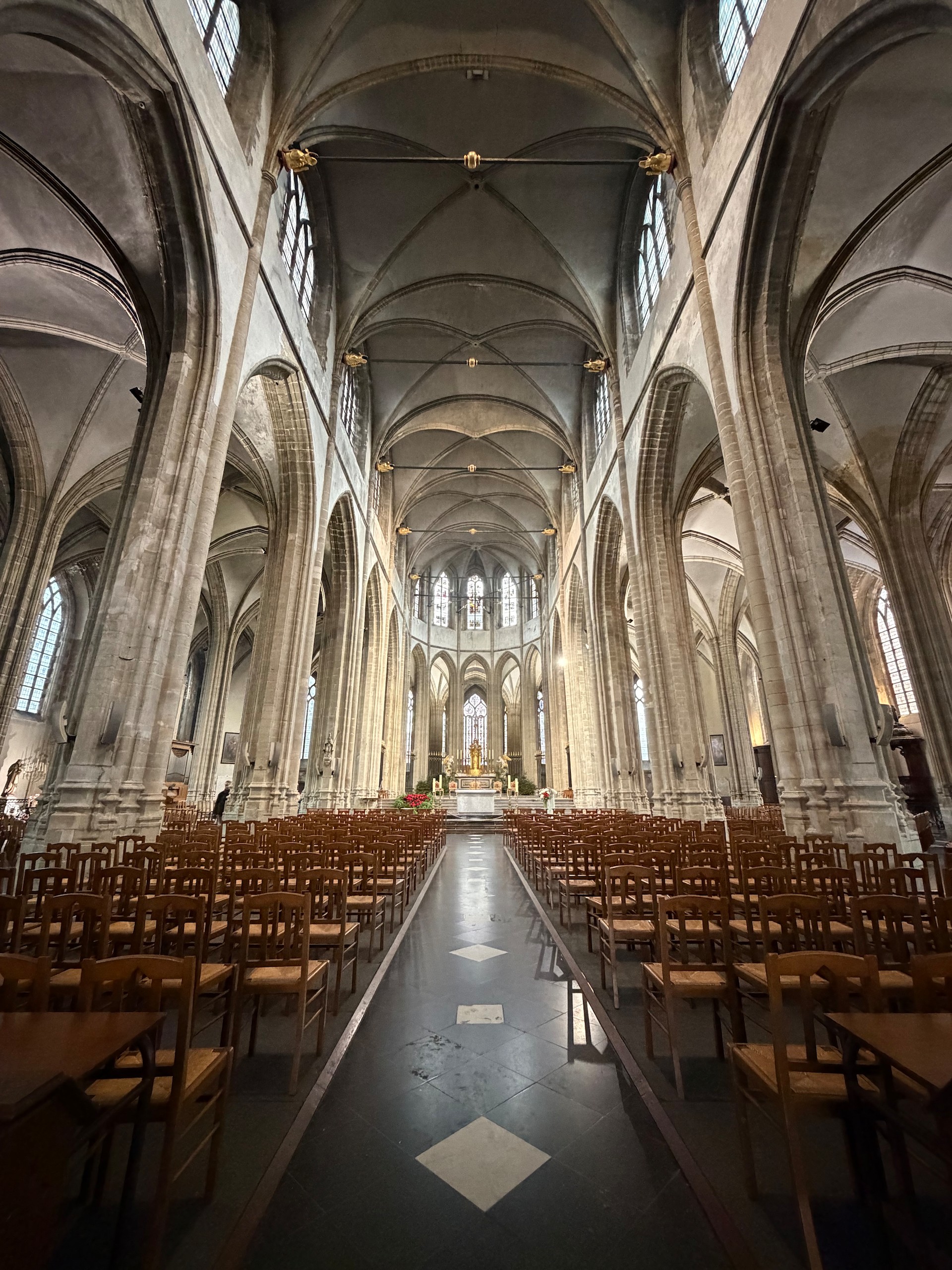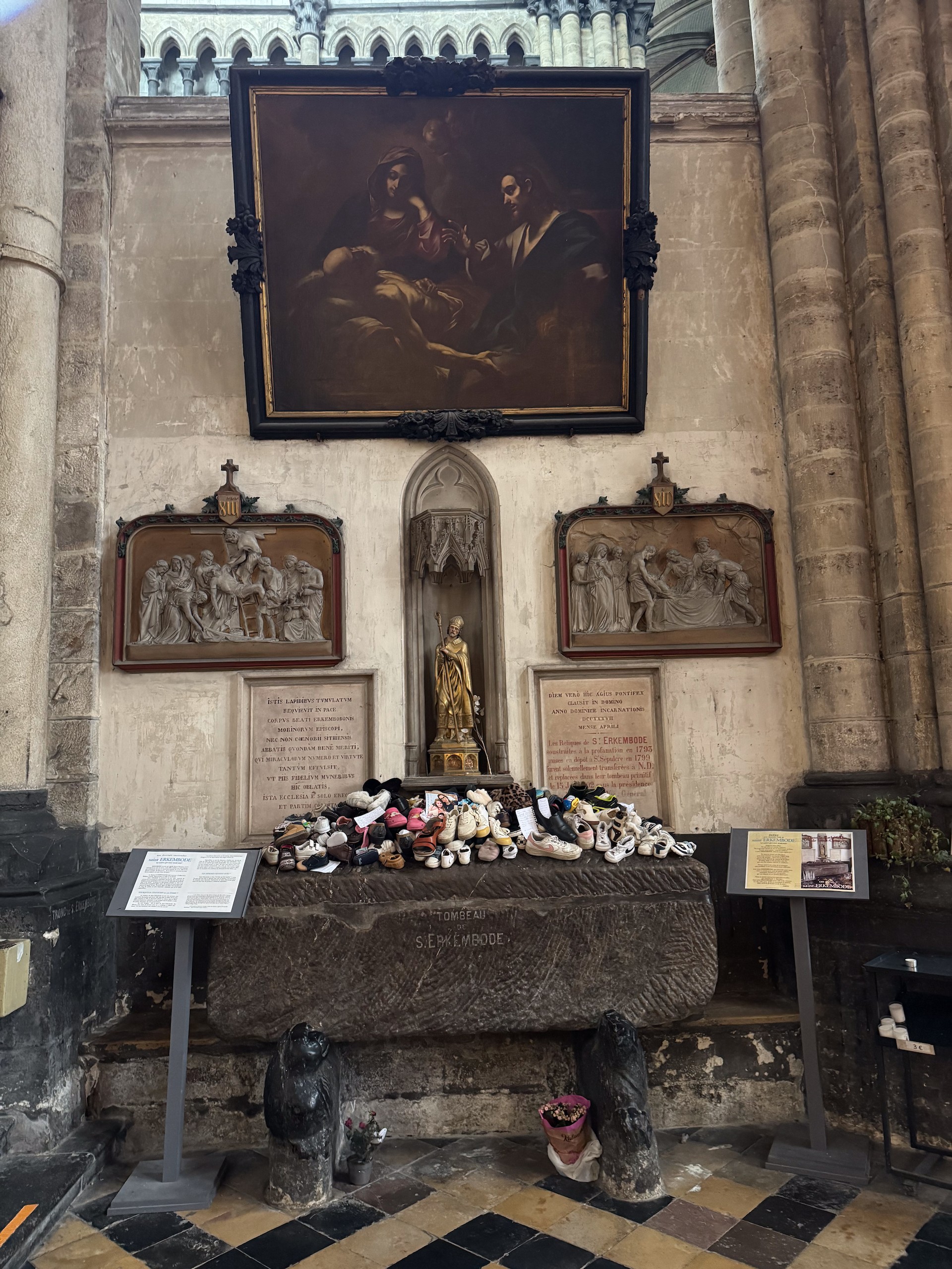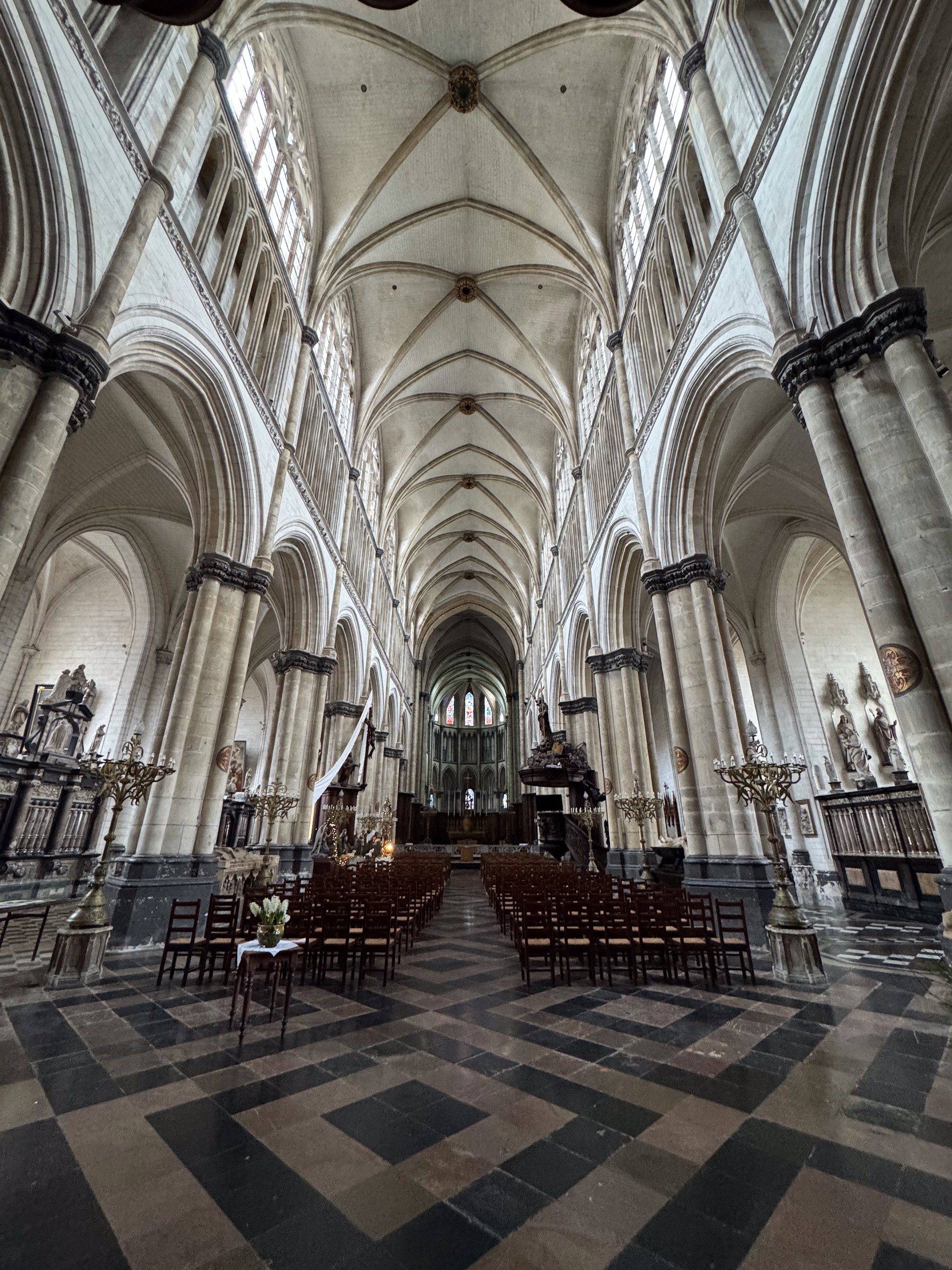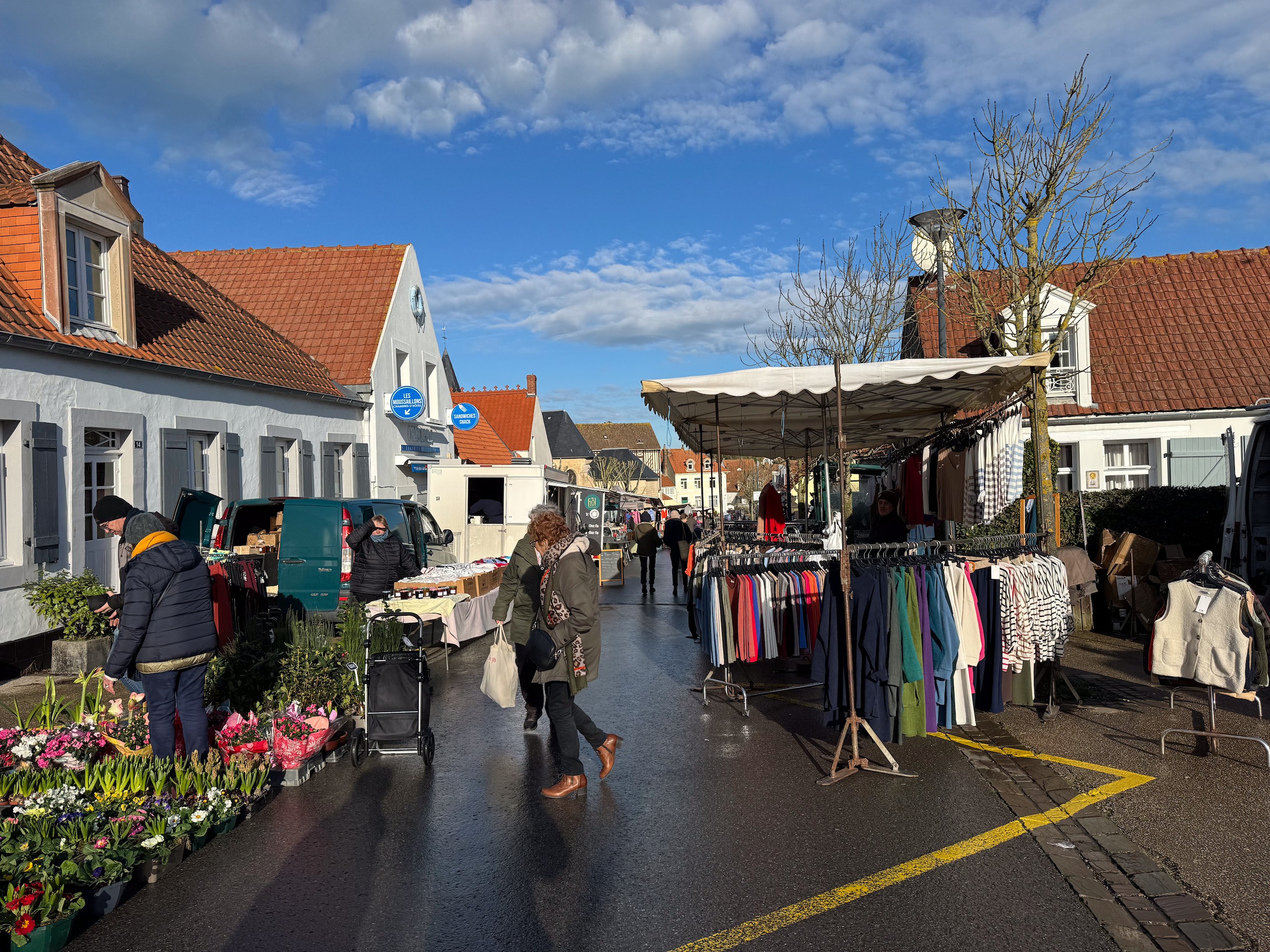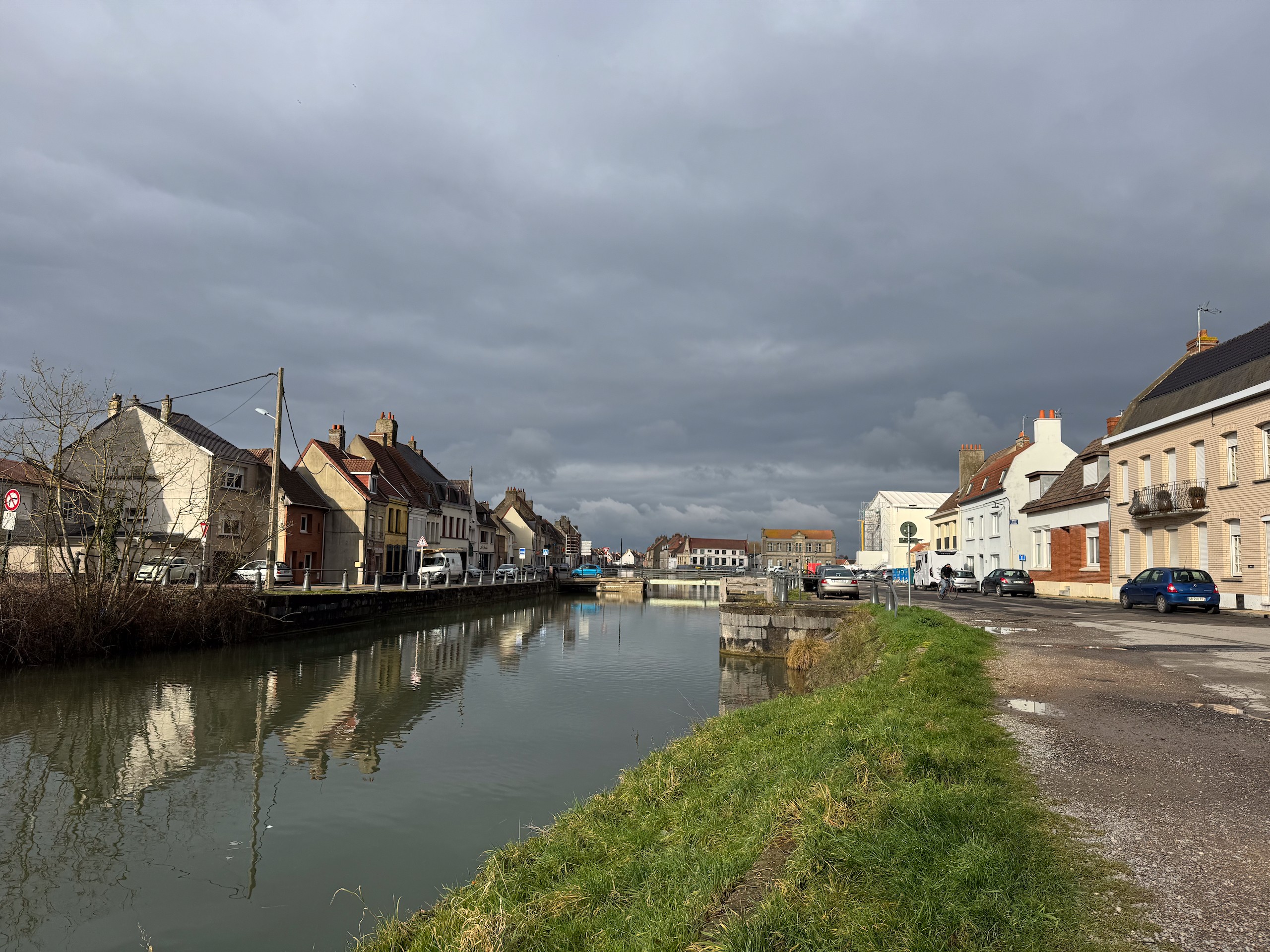 Wir laufen noch ein wenig an einem Wasserkanal entlang, in dem sich bei Sonne die eng stehenden Häuschen spiegeln. Den Effekt haben wir leider ohne Sonne nicht wirklich. Die Umgebung von Saint Omer ist übrigens das größte Marschland Frankreichs, mit unzähligen Wasserwegen, was bei schönem Wetter sicherlich ebenfalls zu Ausflügen mit dem Boot oder Fahrrad einlädt.