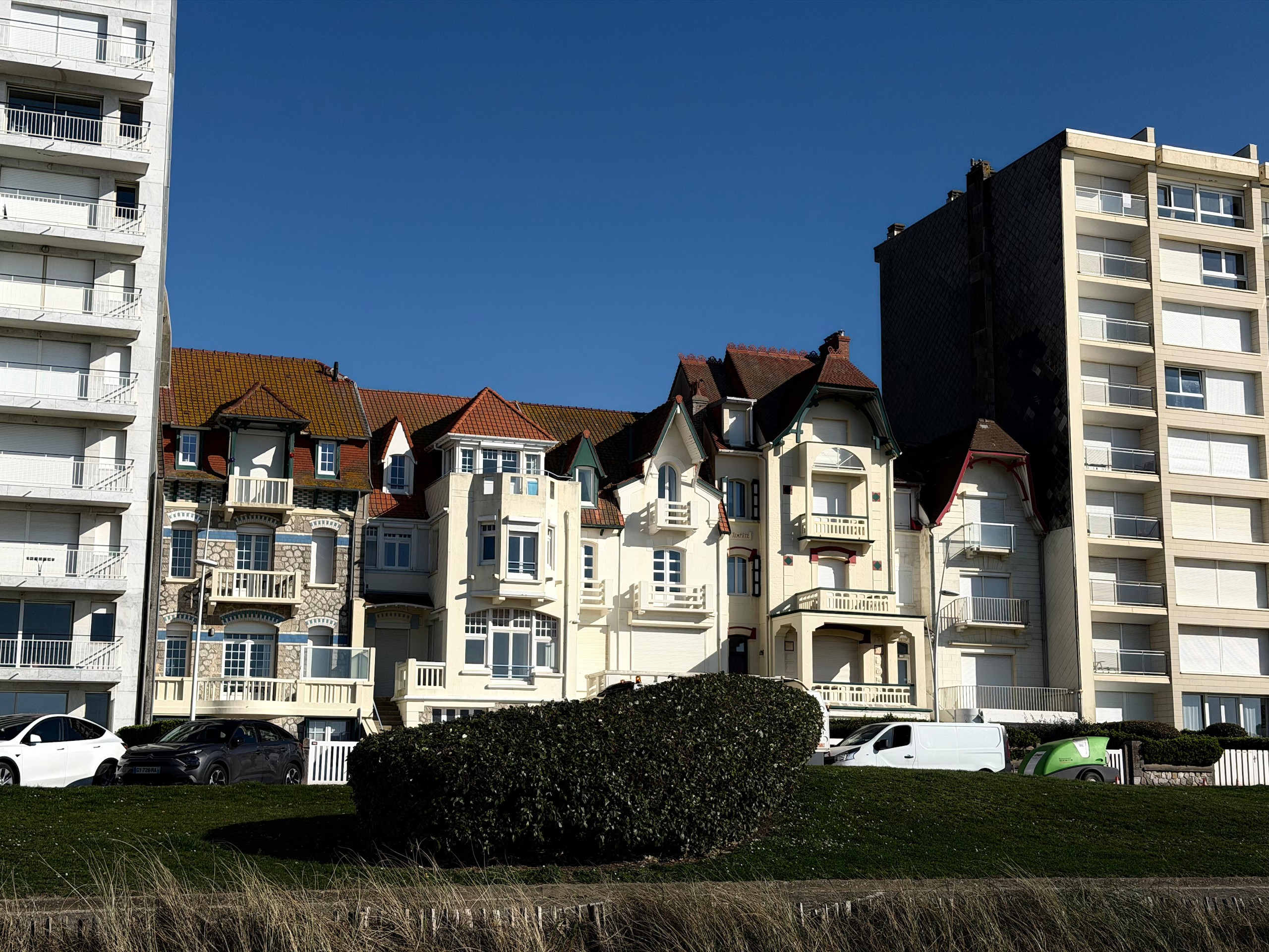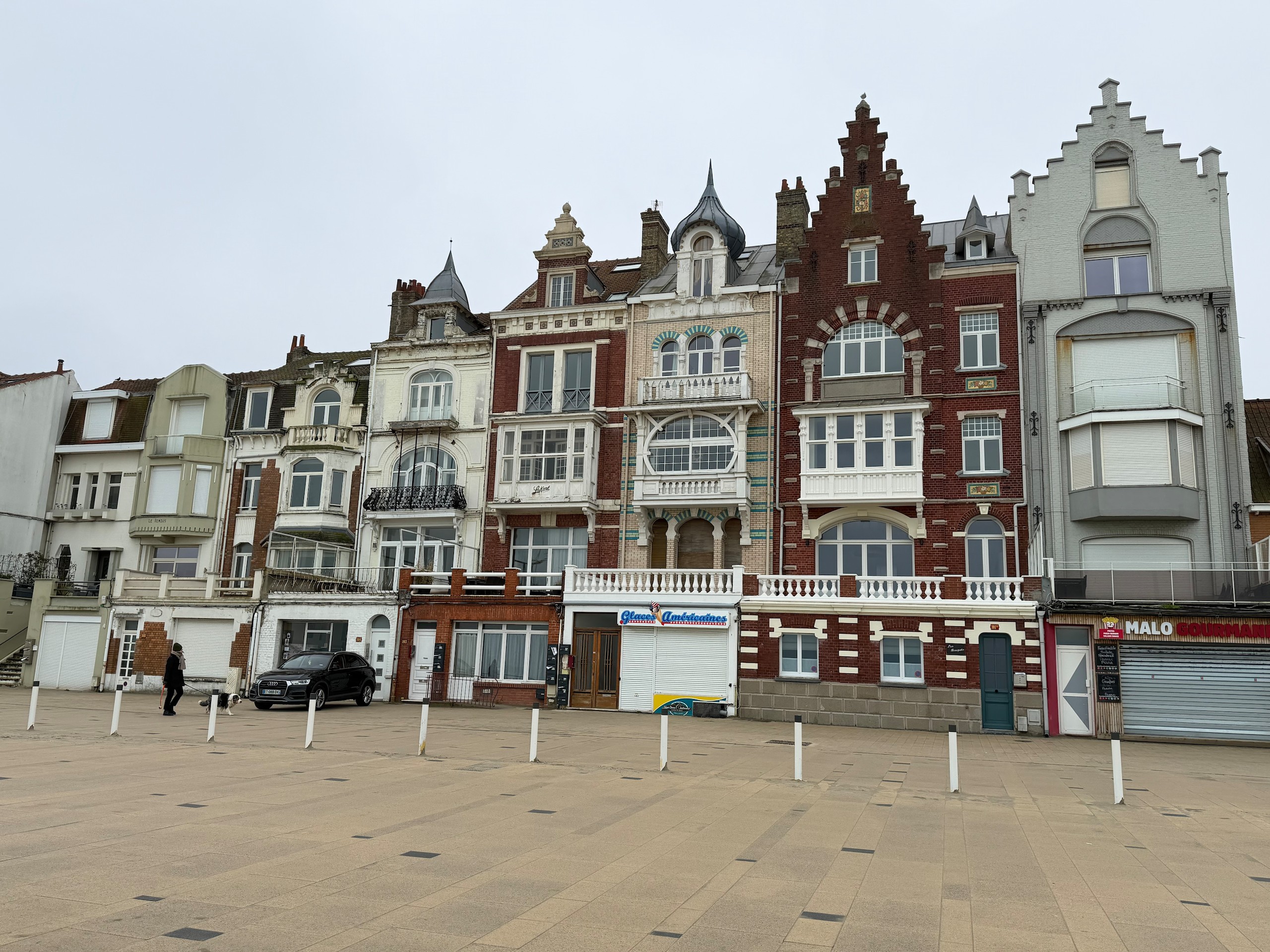 Wir laufen dann am Kai entlang in die Stadt und wieder zurück bis zum Hausstrand der Stadt, dem Malo-les-Bains. Hier gibt es eine große Promenade, an der man noch viele ehemalige Stadtvillen aus der Belle Époque entdecken kann. Sie haben sehr viele Schnörkel und Erker und einige davon sind wirklich hübsch anzusehen. Nach einer kleinen Rast geht es dann mit einem Schlenker zum Rathaus, das wir irgendwie vergessen hatten, zurück zum Wohnmobil.