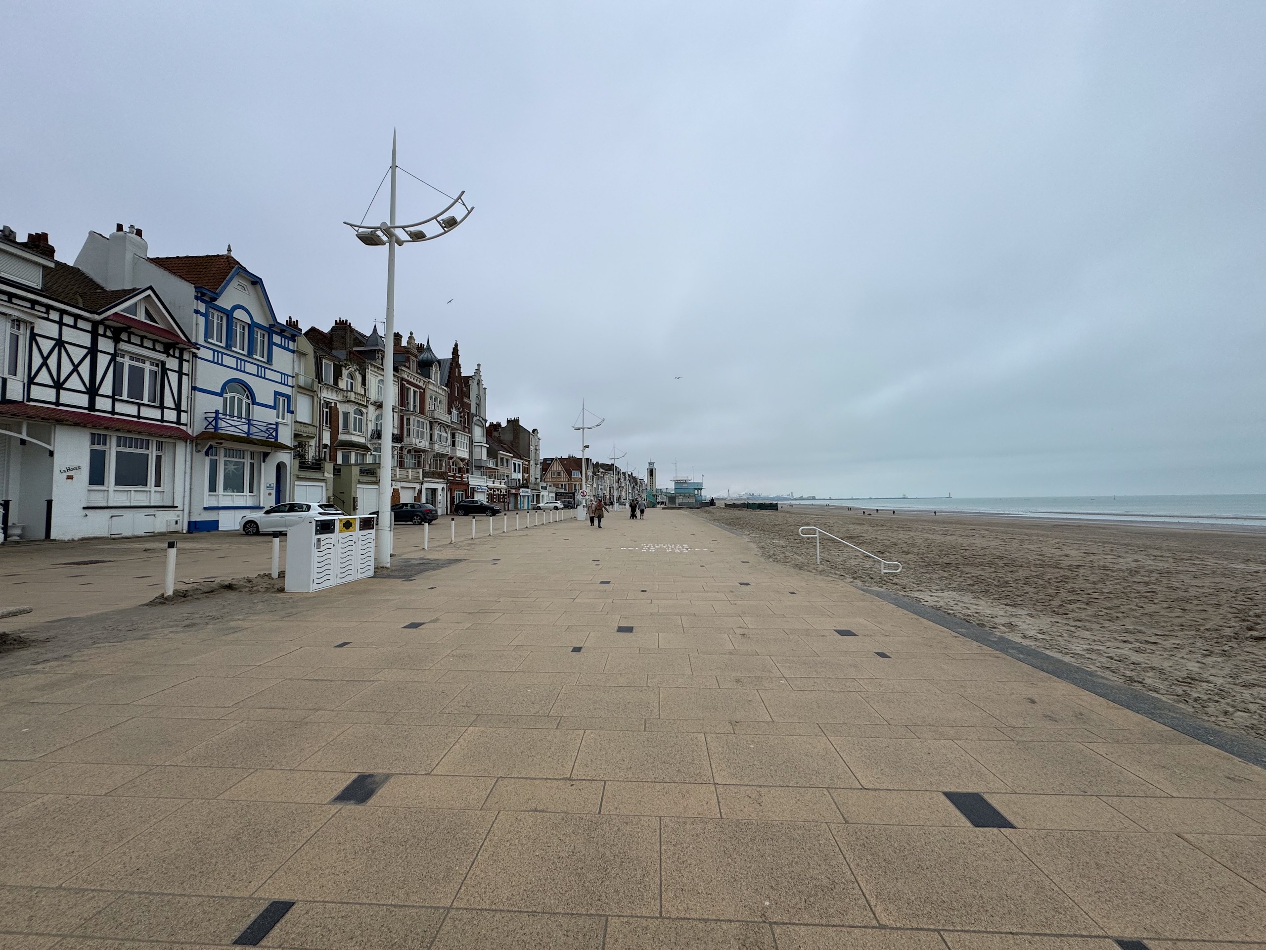 Insgesamt sind wir wieder 13 km gelaufen. Glücklicherweise fängt es erst, als wir im Wohnmobil sitzen, an zu regnen. Aber jetzt ist es uns egal. Was uns in der Stadt aufgefallen ist, ist das ausgesprochen grosszügige Fahrradwegenetz. Ansonsten ist die Stadt im Sommer mit seiner schönen Strandpromenade und dem breiten Strand sicherlich ein nettes Tagesziel. Der Stadtrundgang in Dünkirchen ist natürlich auf Komoot zu finden (Account erforderlich) oder auch komplett ohne Account über GoogleMaps aufzurufen.