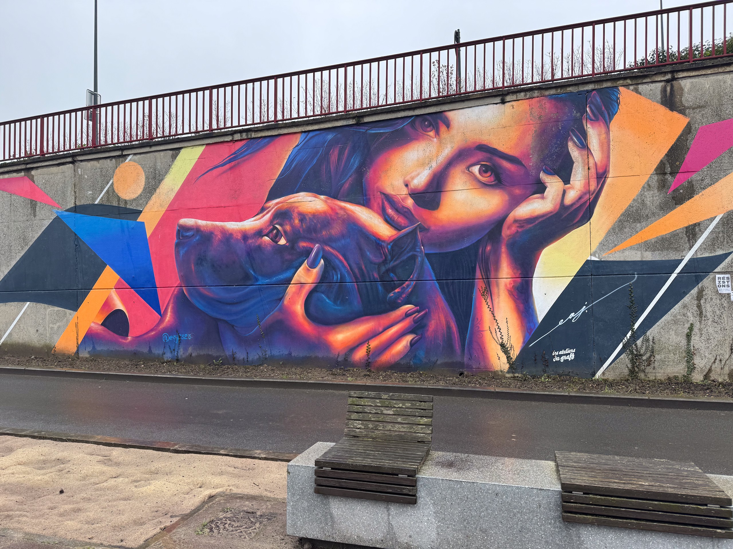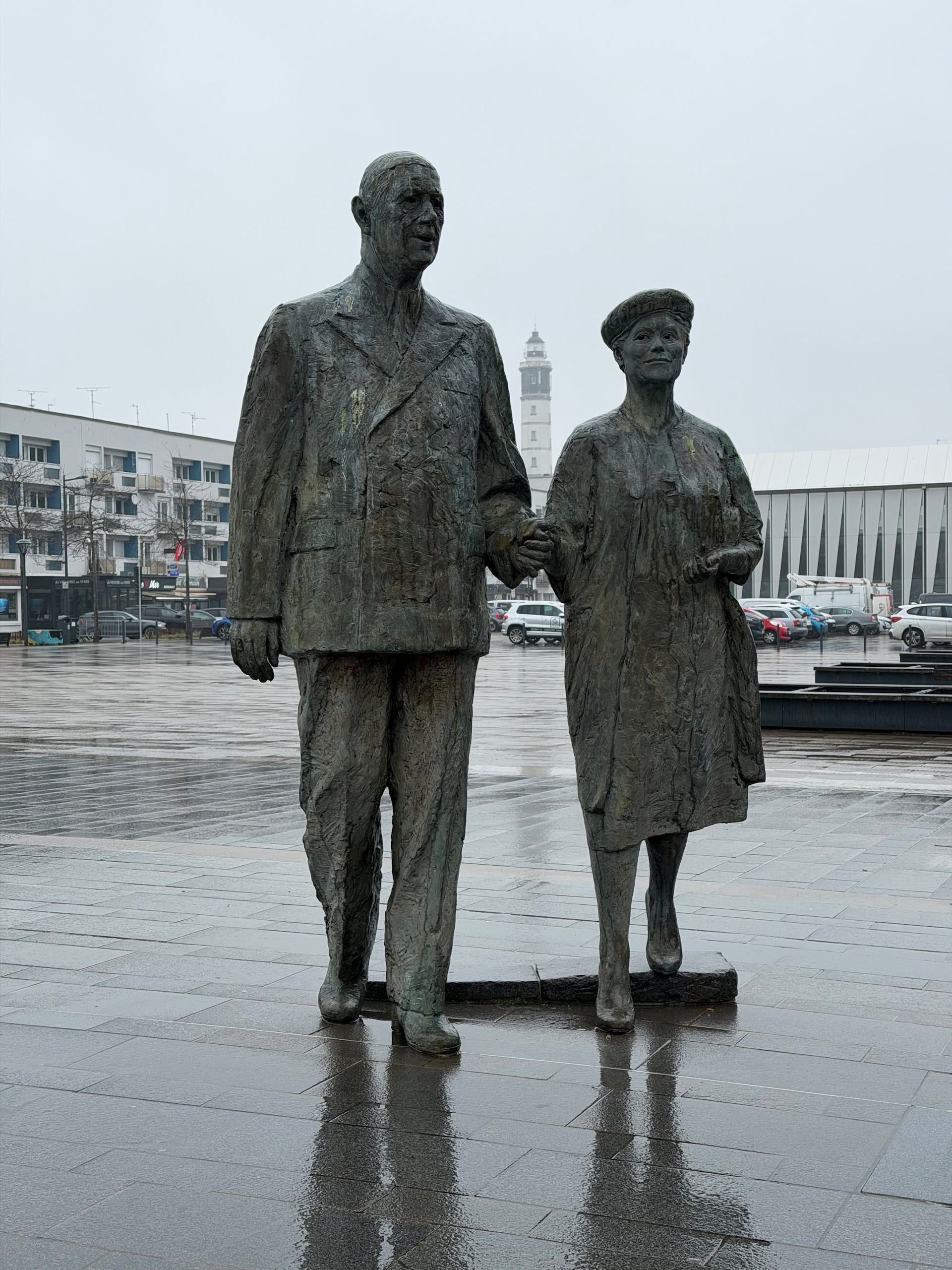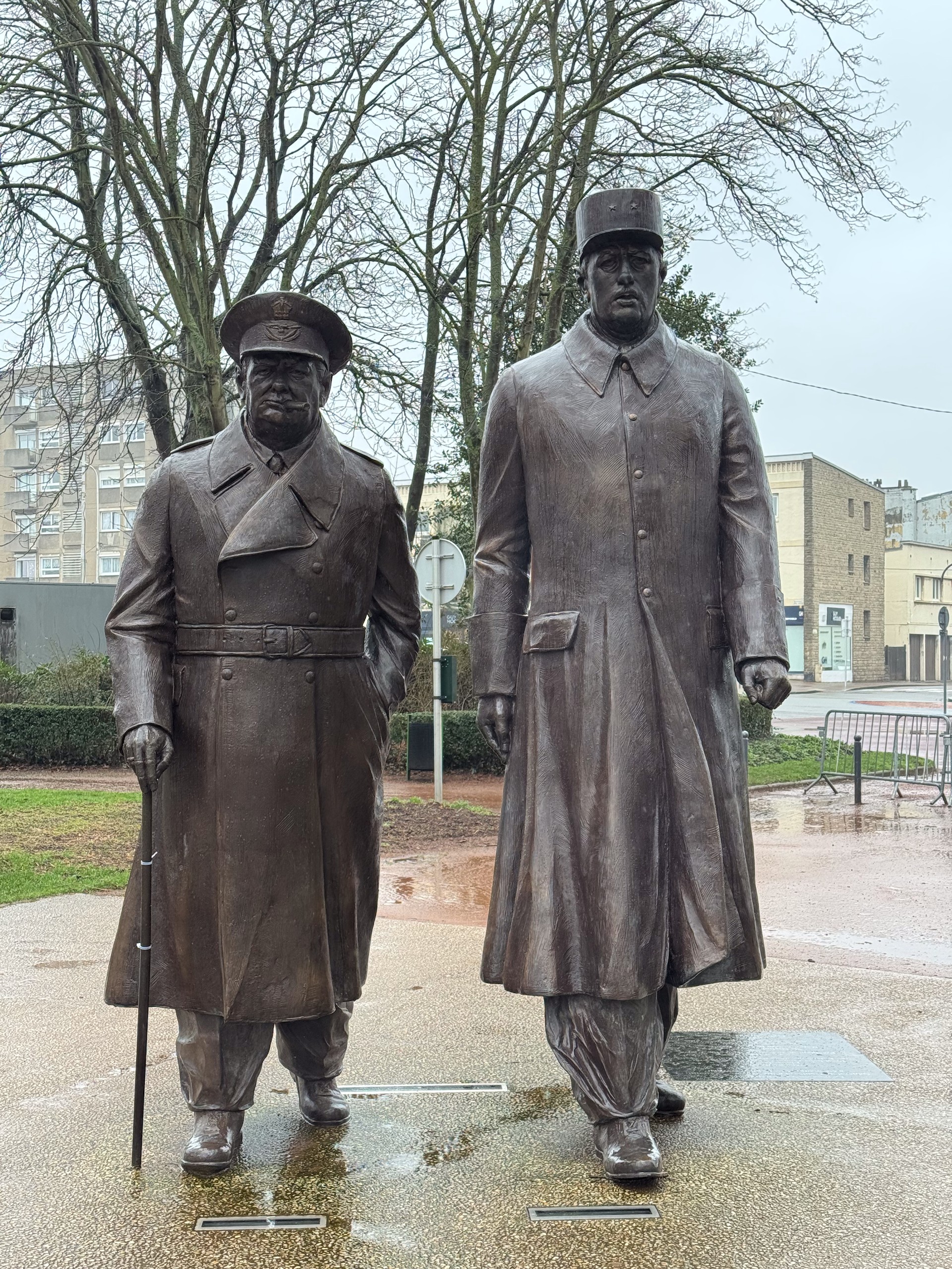 Heute morgen geht es weiter ins ca. 45 km entfernte Calais und hier fahren wir den etwas außerhalb gelegenen Camping Car Park an. Die Wetteraussichten für heute sind ausgesprochen schlecht. Grau mit jeder Menge Regen. Aber wir packen uns warm ein, schnappen uns unsere Schirme und laufen Richtung Zentrum. Einen Abstecher zum Strand sparen wir uns bei dem Wetter und so klappern wir nur ein paar naheliegende Sehenswürdigkeiten ab, wie z.B. diverse Statuen mit Charles de Gaulle, verschiedene Streetartbilder und nicht zu vergessen das auffällige Rathausgebäude. Leider befindet sich auf dem Vorplatz zur Zeit eine Kirmes, so dass man keinen freien Blick auf das interessante Gebäude bekommt.