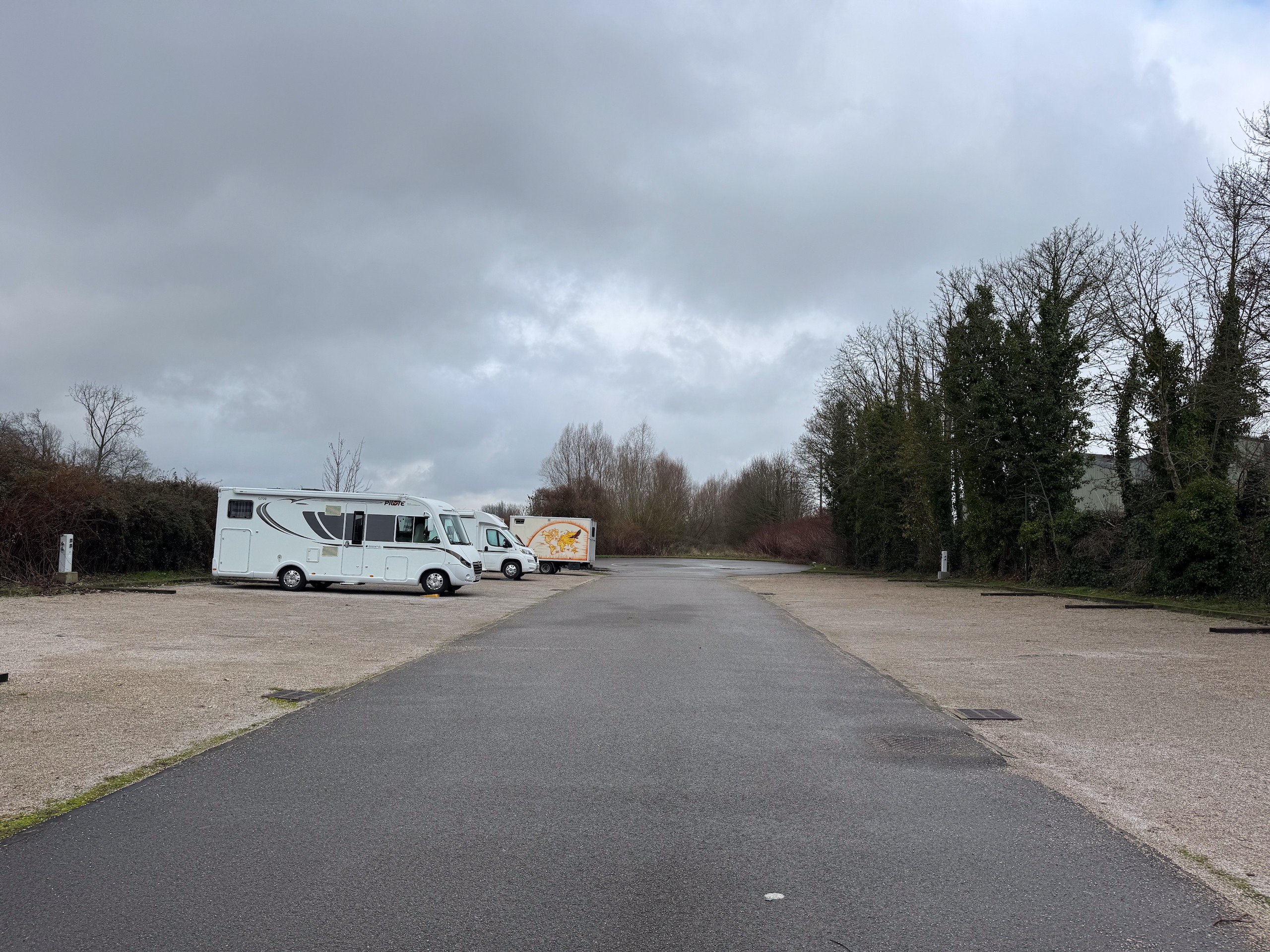 Keine Ahnung, ob der Ort im Sommer schöner ist, z.Zt. hat man den Eindruck, als ob hier überall Bauarbeiten sind. Wir bleiben jedenfalls nur diese eine Nacht hier. Der Platz selbst ist ganz ok, soll nachts auch ruhig sein, was natürlich immer wichtig ist. Jetzt, da der Kühlschrank mit Strom betrieben wird, sollten wir auf jeden Fall schlafen können. Die Radtour ist wieder hier auf Komoot zu finden (Account erforderlich) oder auch komplett ohne über GoogleMaps. Vom Stellplatz habe ich diesmal vergessen Bilder zu machen, aber zut Not sind welche auf der Camping Car Park Webseite zu finden.