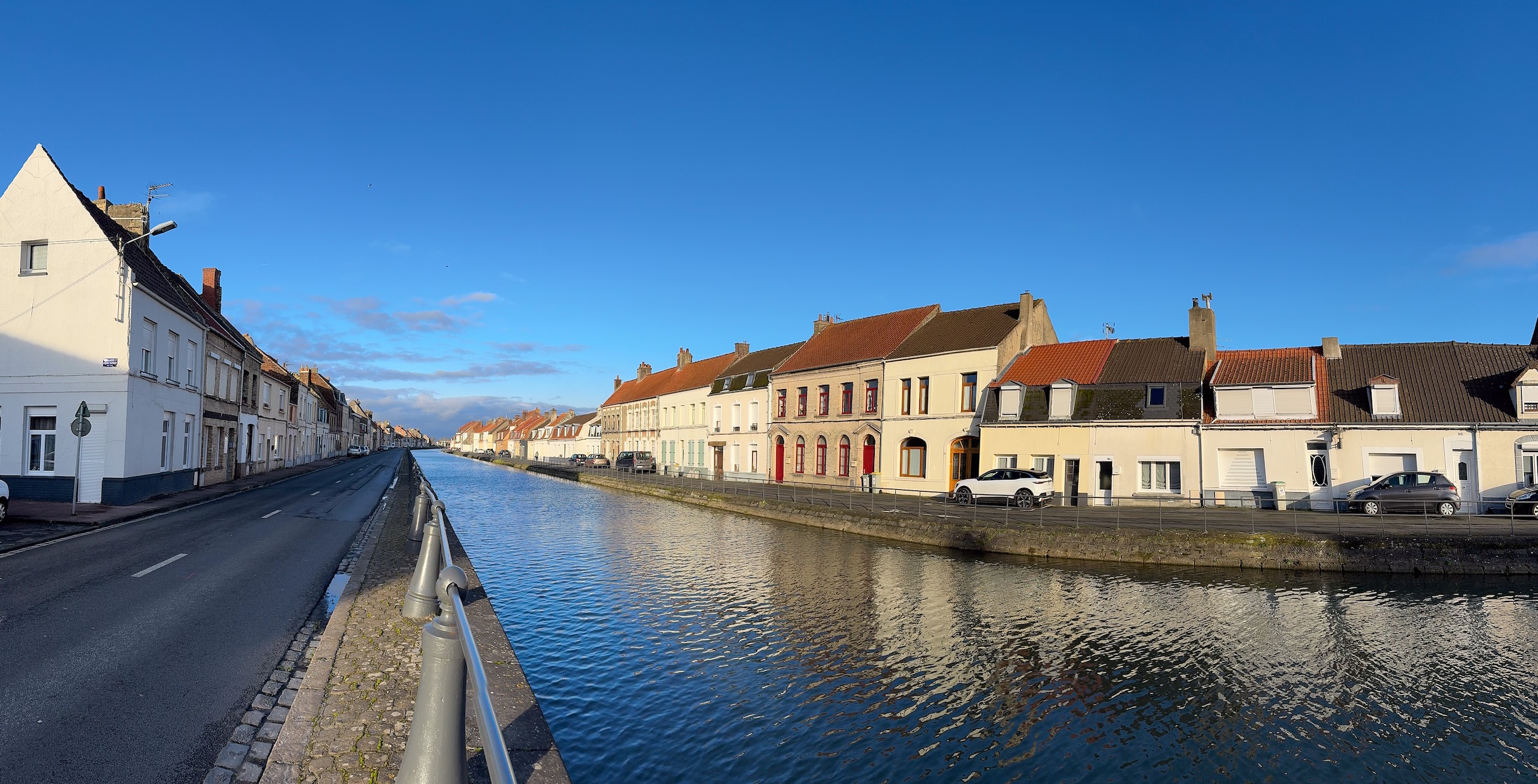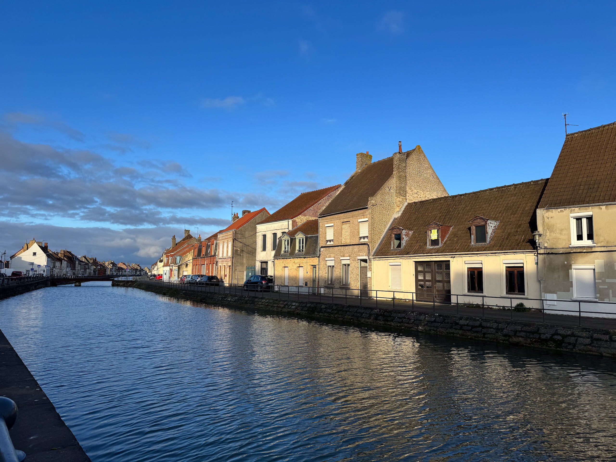 Wir gehen zurück zum Wohnmobil und als sich kurz darauf die Sonne blicken lässt, gehen wir kurz entschlossen noch einmal zum Kanal zum fotografieren. Aber trotz Sonne ist die Ausbeute gering, aber wir freuen uns, dass sich die Sonne tatsächlich noch mal hat blicken lassen. Jetzt ist es aber genug und wir legen jetzt nur noch die Beine hoch. Der Stadtrundgang in Saint-Omer ist natürlich auf Komoot zu finden (Account erforderlich) oder auch komplett ohne Account über GoogleMaps aufzurufen.