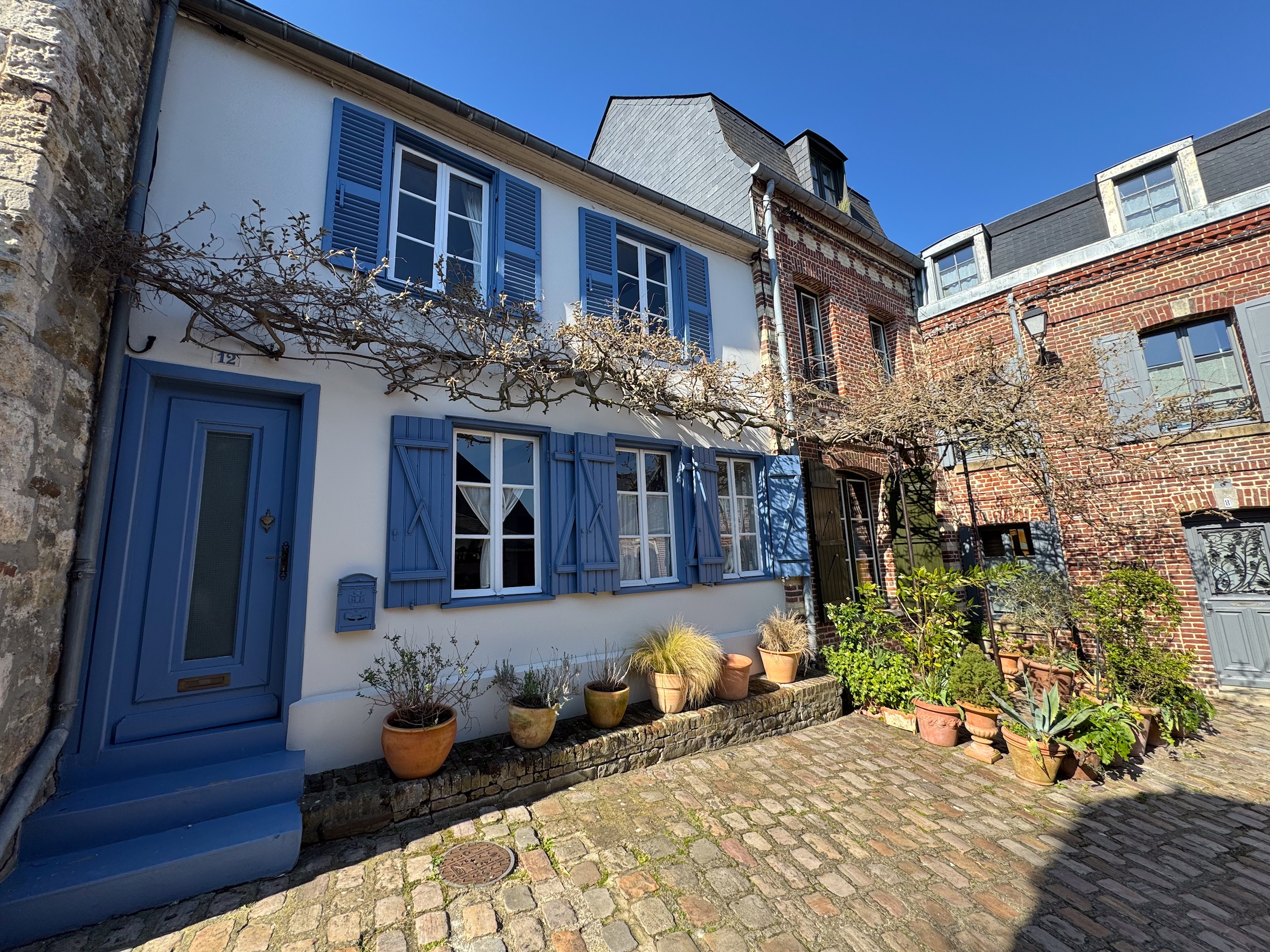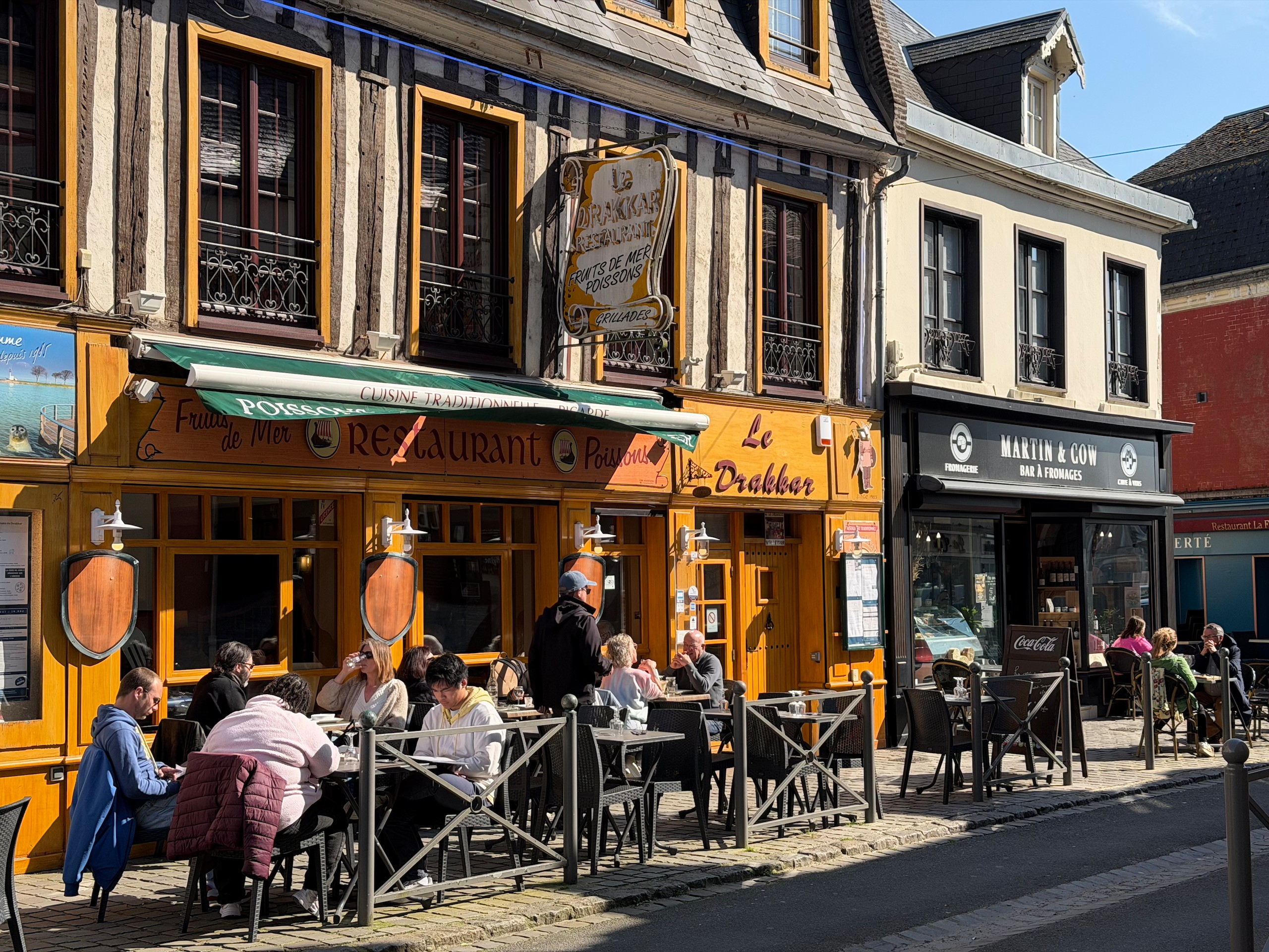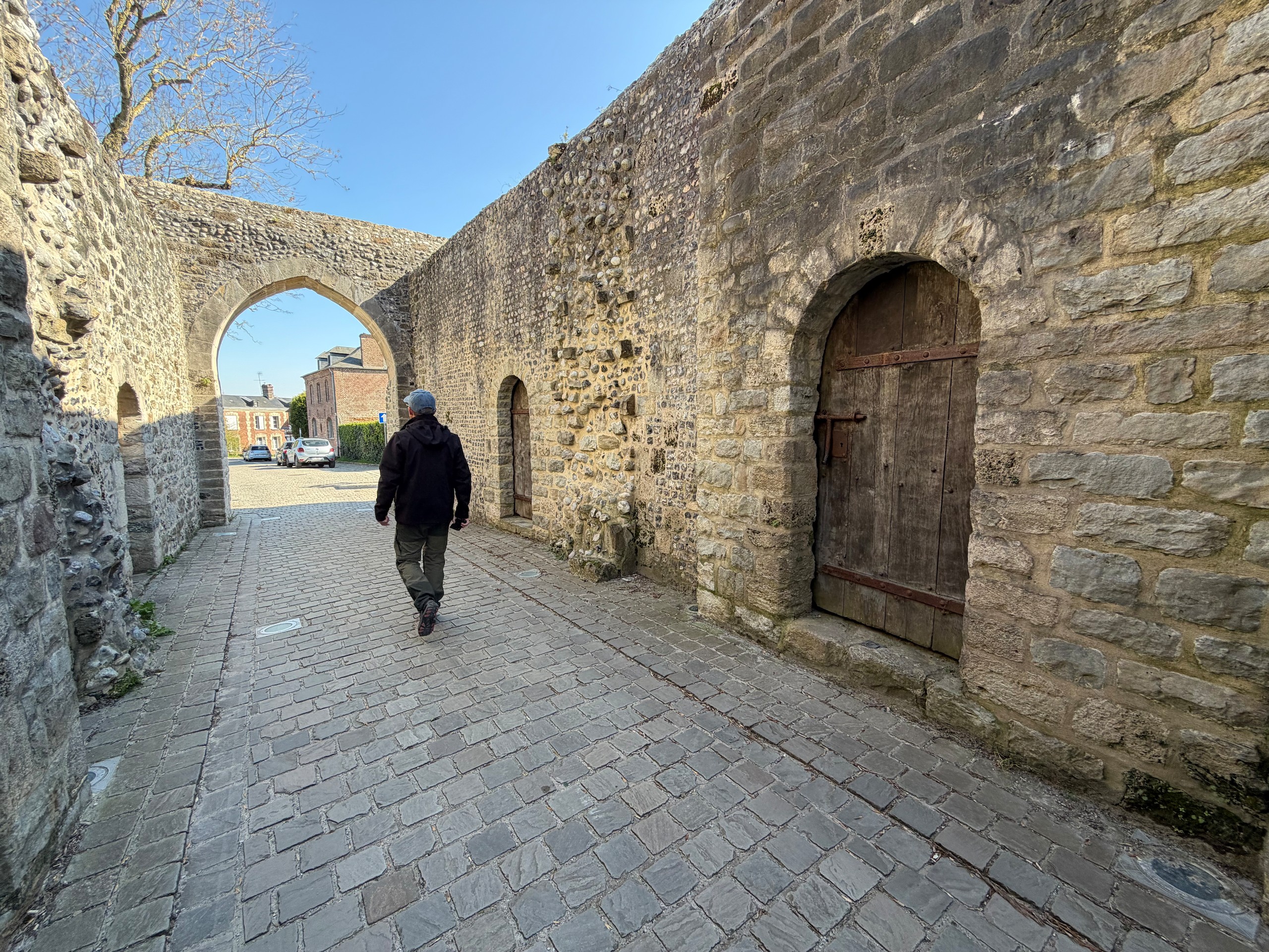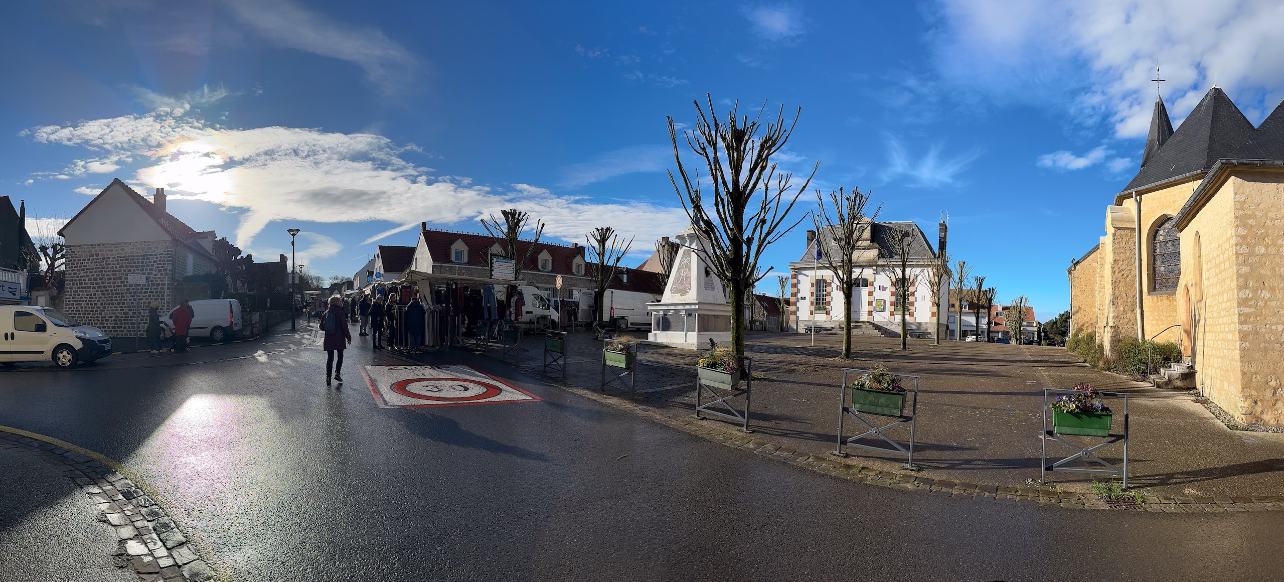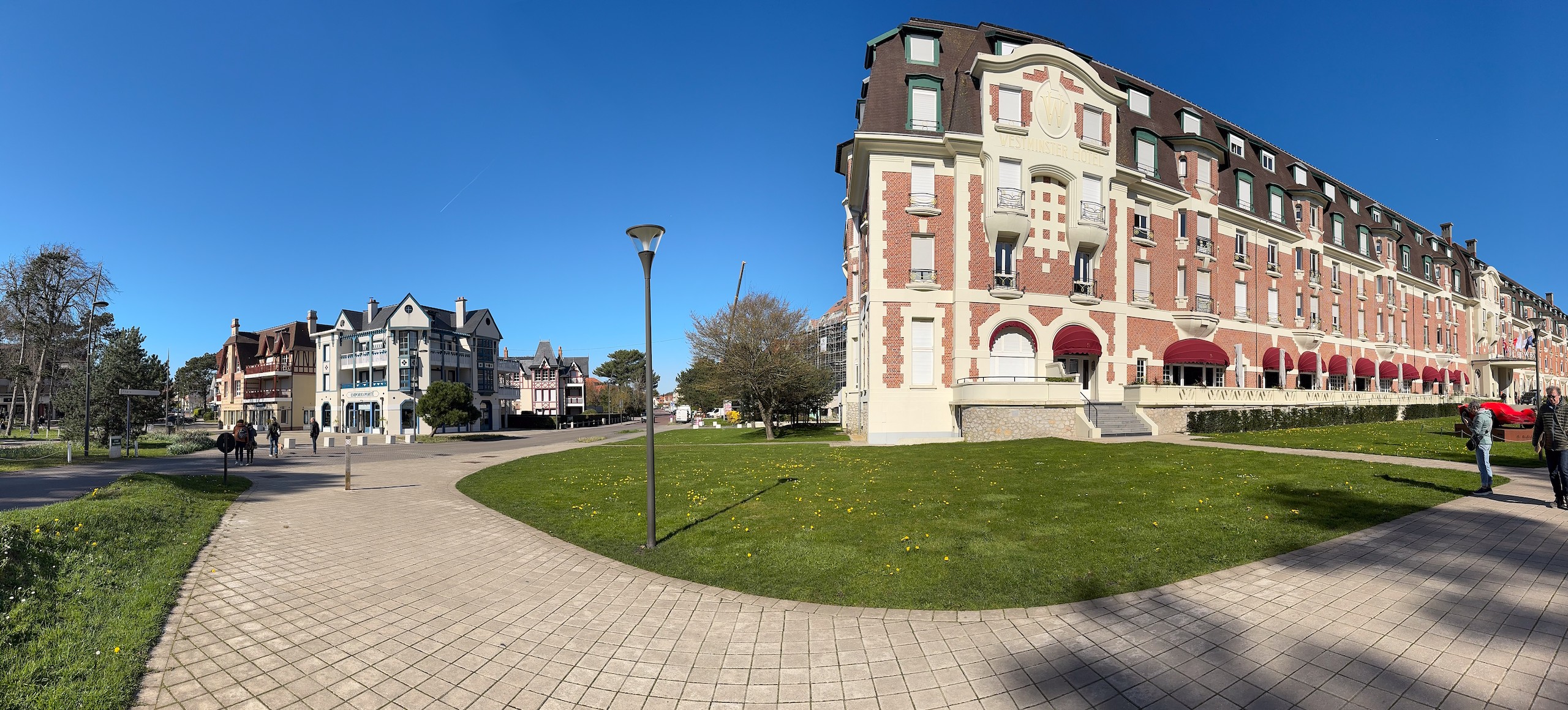 Zuerst machen wir eine Kaffeepause in der Sonne und dann machen wir uns auf eine zirka acht Kilometer lange Runde, die ich bei Komoot gefunden habe. Wir erreichen irgendwann das Zentrum und hier sieht man, dass der Ort wohl zur Sommerfrische der Pariser genutzt wird. Einige noble Geschäfte und Hotels sind hier zu finden. Aber besonders die alte Bebauung fällt auf. Zig Erker, Türmchen, Balkone, Fachwerk und alle möglichen anderen Verzierungen sind zu finden und kein Haus sieht aus, wie das andere. Viele alte Häuser wurden bereits aufwändig restauriert und erstrahlen in neuem Glanz.