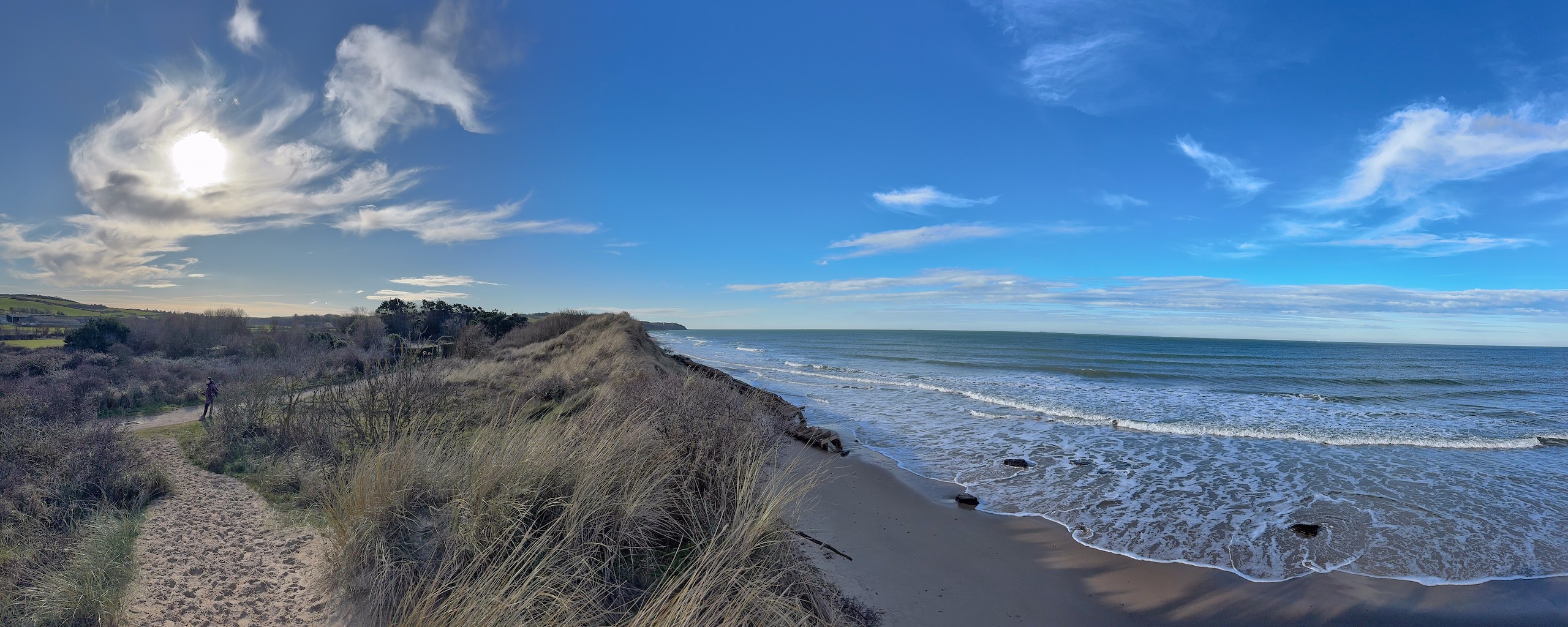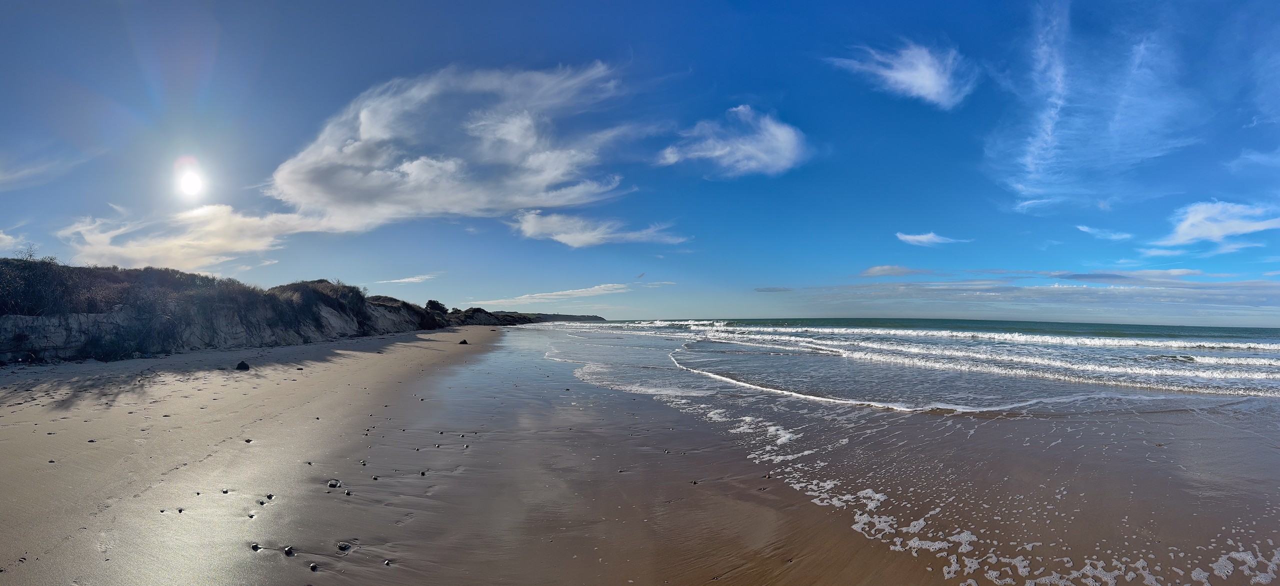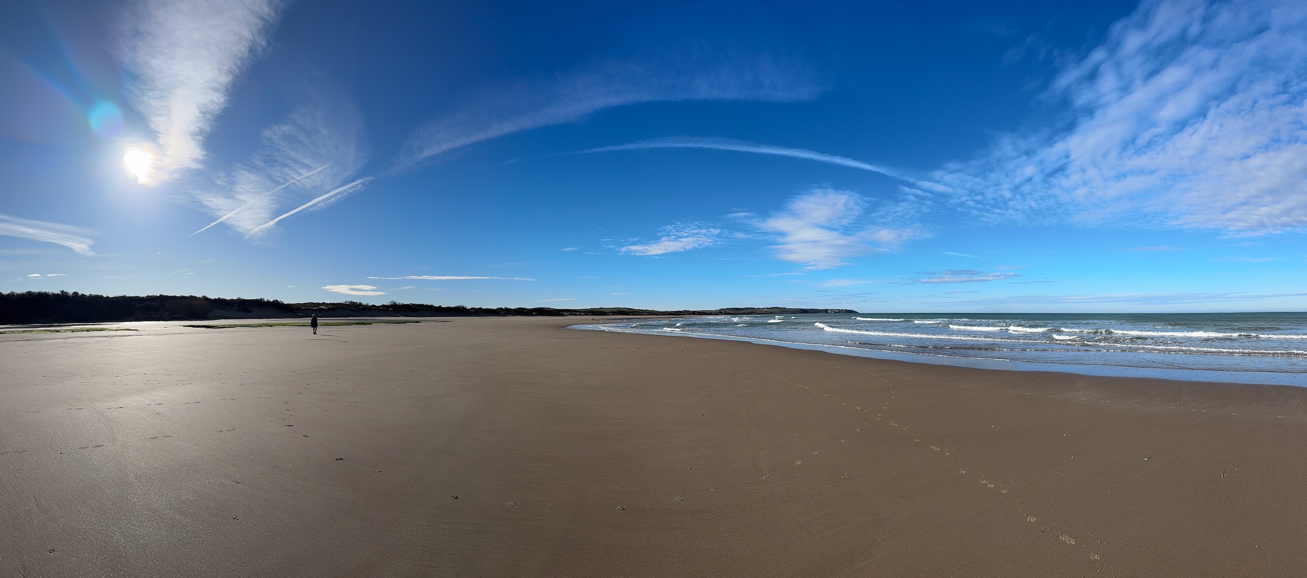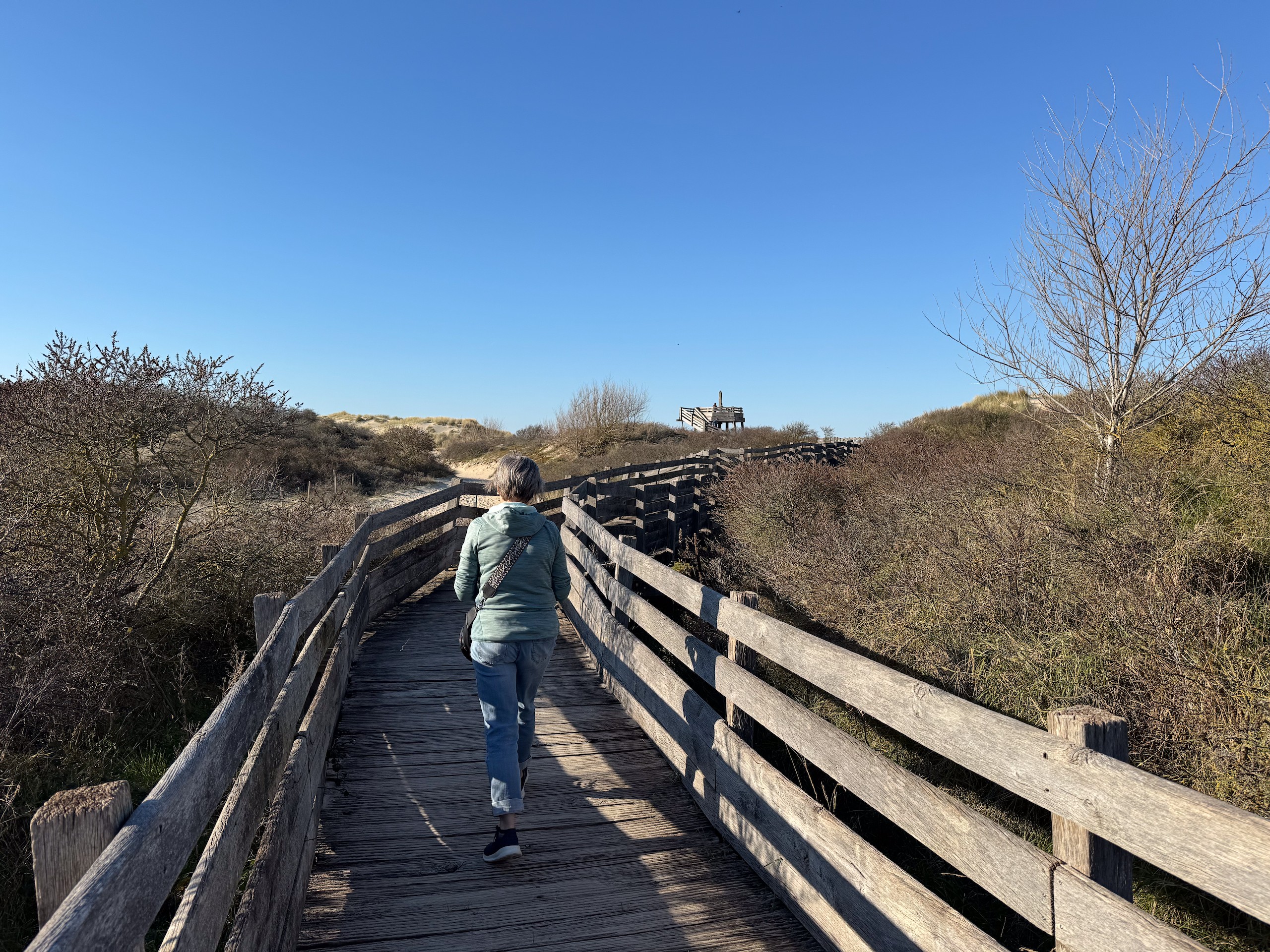 Zum Schluss unserer Tour landen wir am Meer mit einer großen Promenade und einem riesigen Sandstrand. Der gefällt uns wieder total gut und wir sind froh, uns den Ort diesmal angesehen zu haben. Auf einem sehr gepflegten Dünenweg drehen wir die Runde zu Ende und kommen nach 9 km wieder am Wohnmobil an, wo wir jetzt noch etwas die letzten Sonnenstrahlen genießen. Das war wieder ein sehr schöner Tag. Der Spaziergang ist auch wieder auf Komoot zu finden (Account erforderlich) oder auch komplett ohne über GoogleMaps.