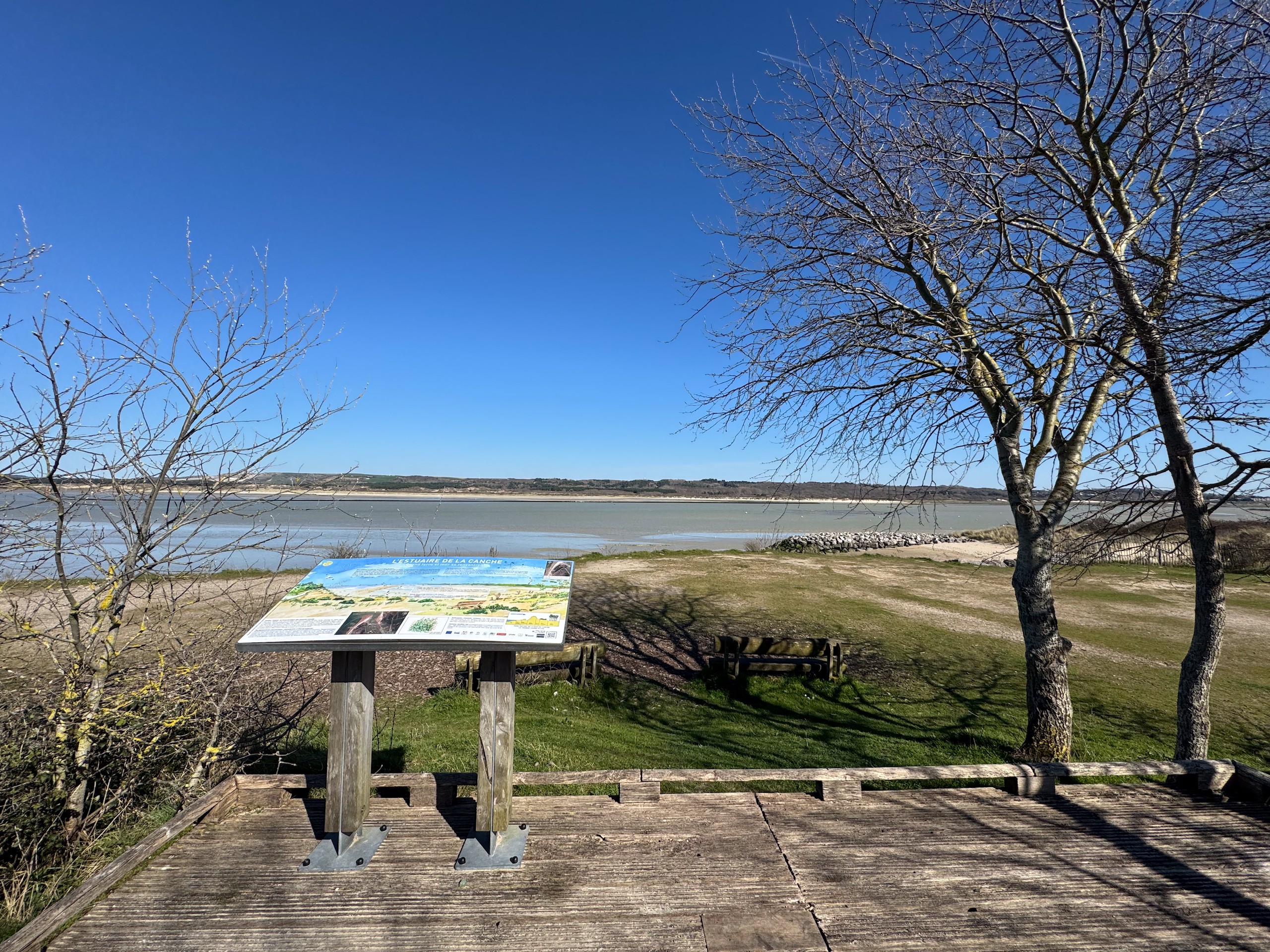 Nach dem Essen machen wir noch eine kleine Runde, denn hier neben dem Stellplatz ist noch ein Weg ausgeschildert, der recht reizvoll aussieht. Hier geht es zum Point d'observation la roselière, einer Vogelbeobachtungsstelle und da das Wetter noch mitspielt, schauen wir uns das mal an. Ein schöner Spaziergang entlang des Ancien Canal de Penthièvre. Der Stadtrundgang durch Le Trepot und Mers-les-Bains ist wieder auf Komoot zu finden (Account erforderlich) oder auch komplett ohne über GoogleMaps.