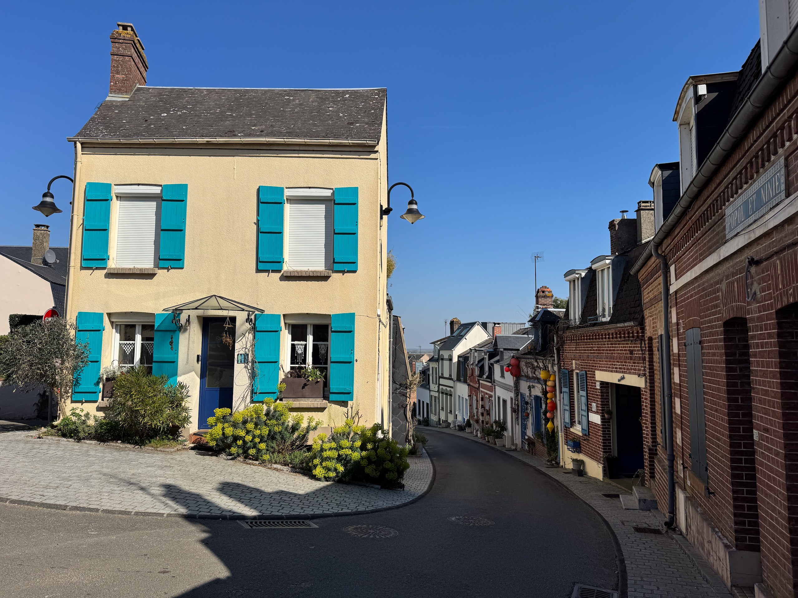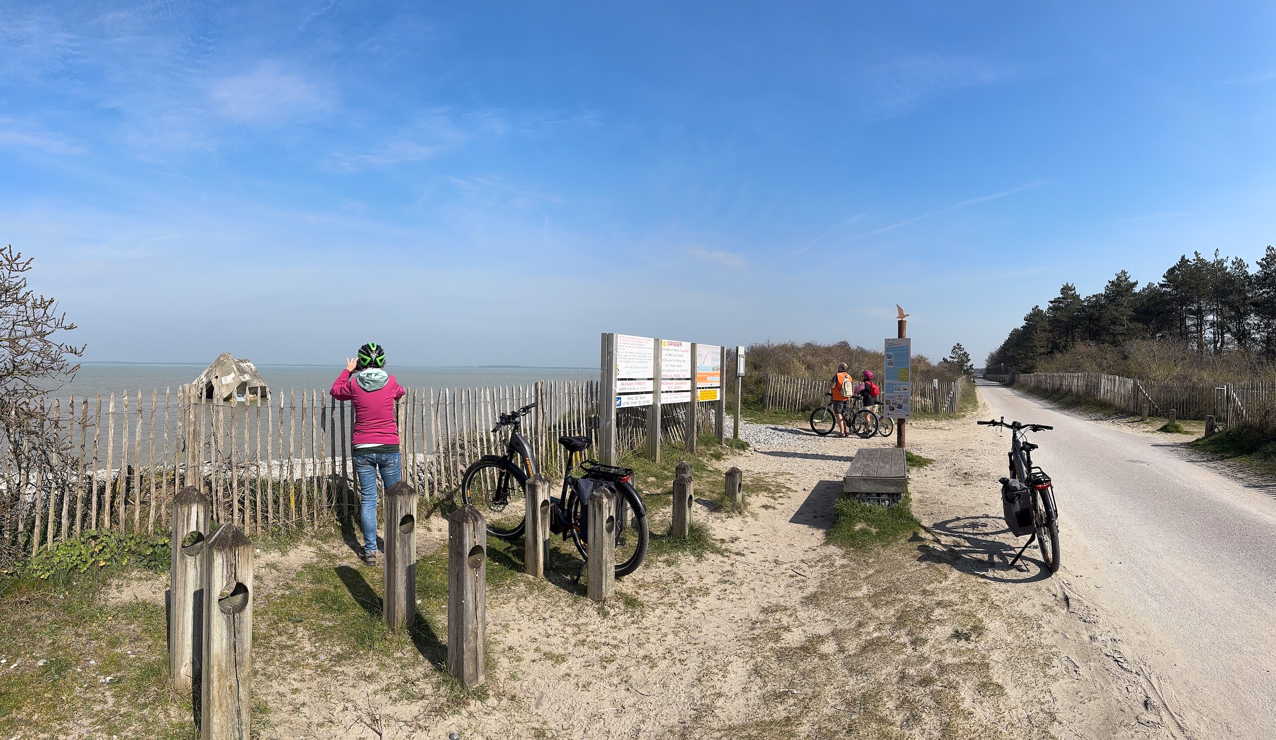 Wir stellen fest, dass es hier auch ein Knotenpunktsystem, wie in Holland, gibt und stellen uns eine ca. 30 km lange Tour zusammen. So radeln wir gemütlich zuerst an der Küste entlang bis Hourdel und dann Richtung Saint-Valery-sur-Mer und von dort durchs Inland wieder zurück. Das Wetter spielt mit und so genießen wir die entspannte Fahrt durch die Gegend. Das, was wir dabei hier vom Ort sehen konnten, überzeugt uns auch nicht und die Küste ist hier offensichtlich komplett grober Kiesstrand.