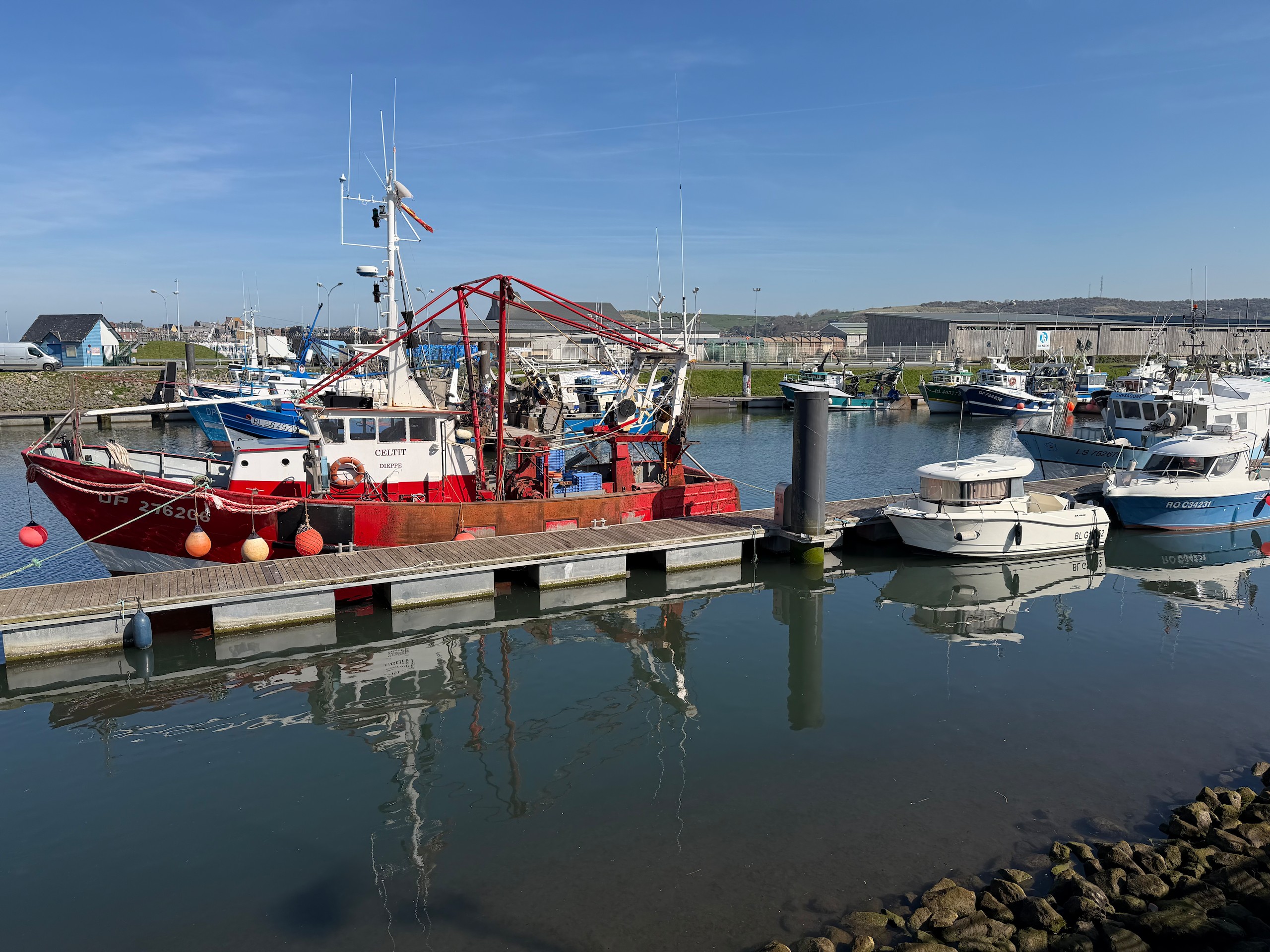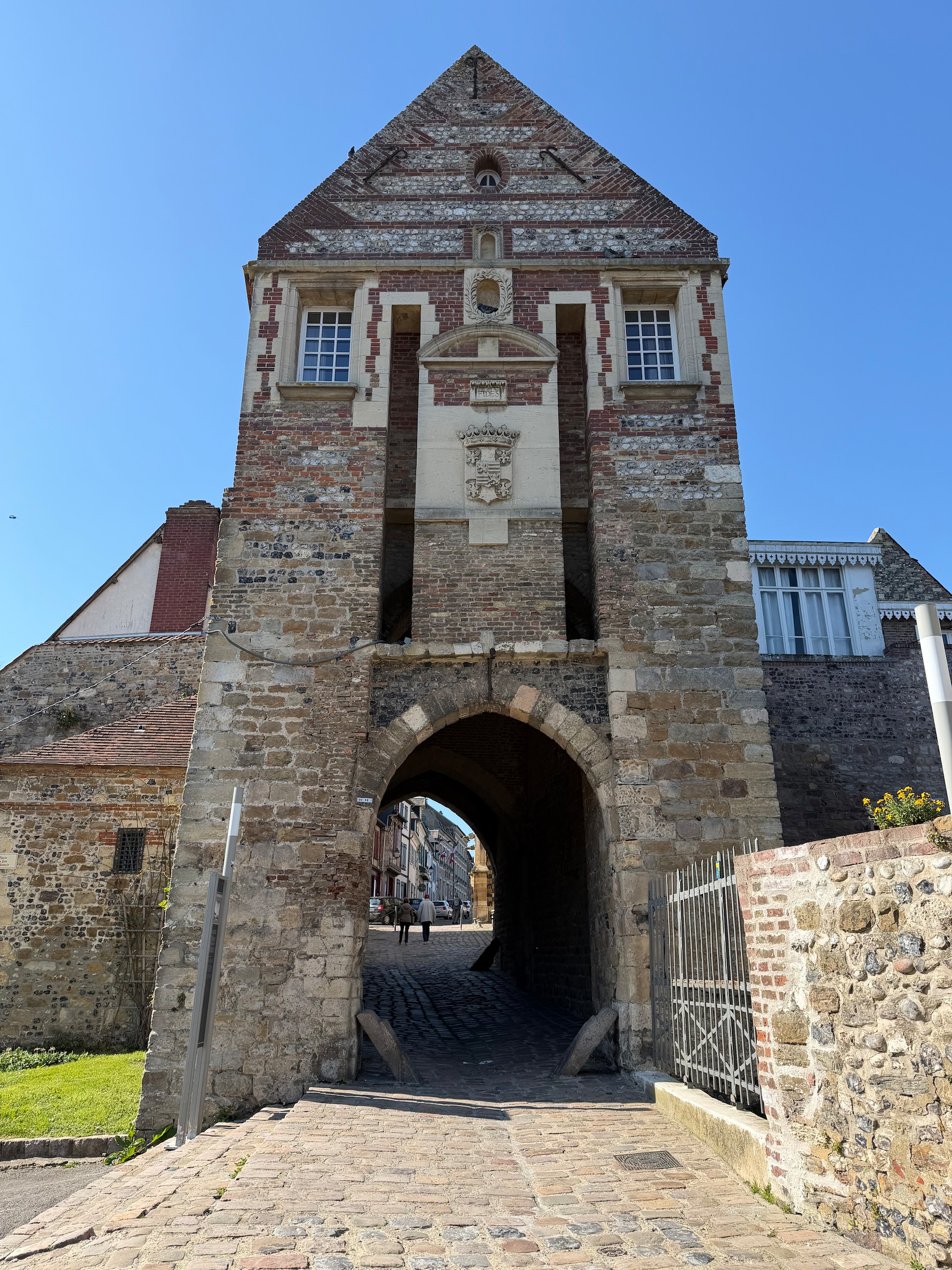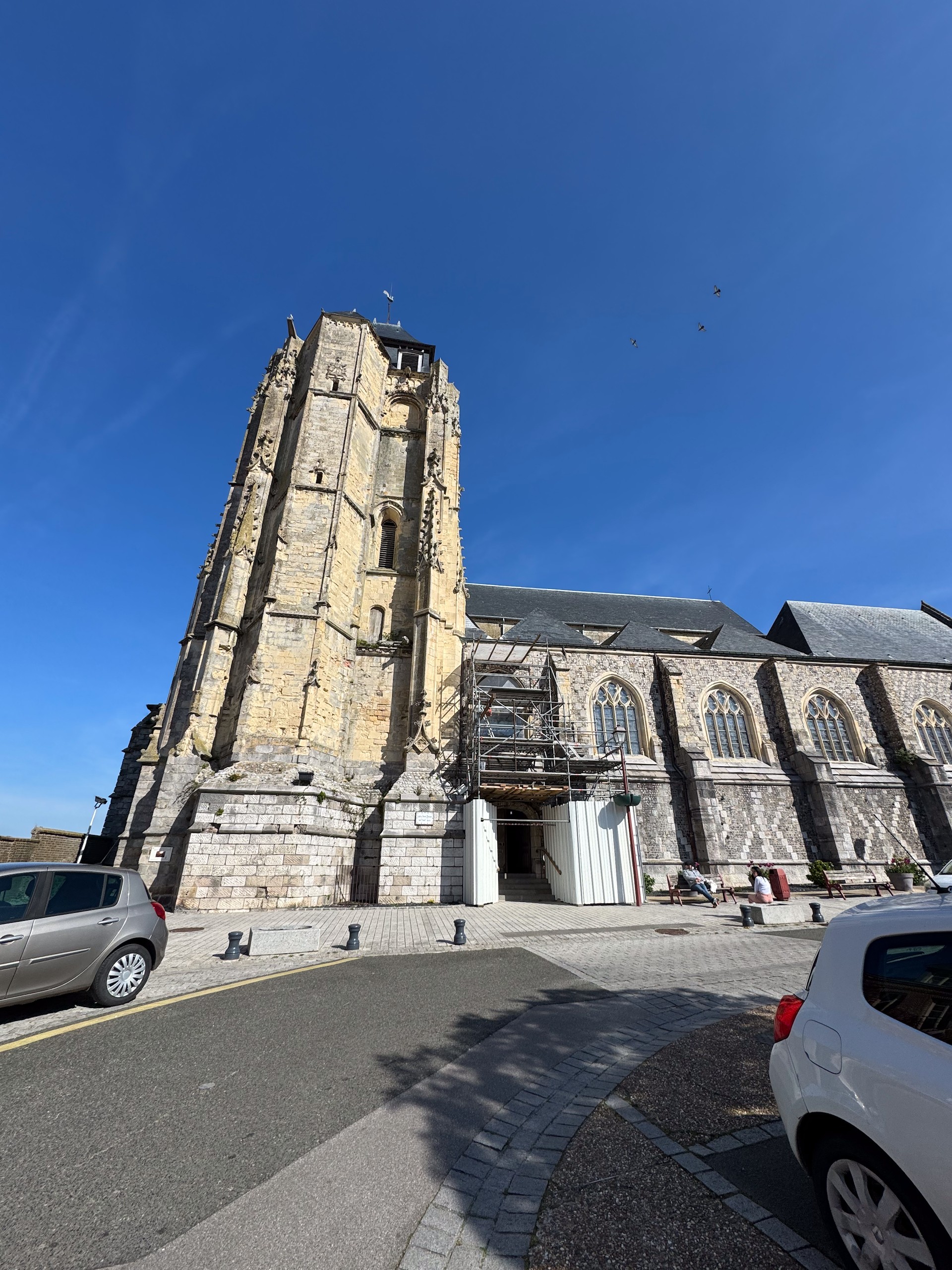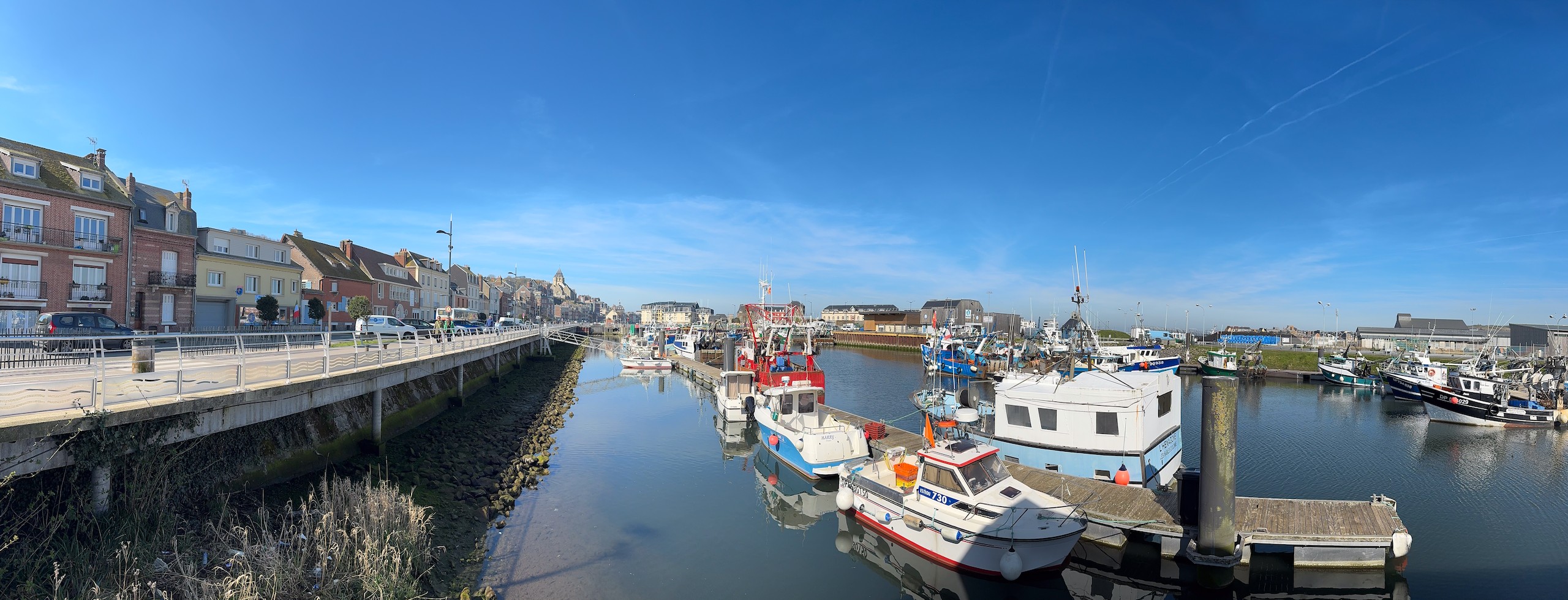 Nach einer unruhigen Nacht hat Gerd heute morgen sein Glück erneut mit der vorgeschlagenen Lösung probiert und war erfolgreich. Wir hoffen, dass der Kühlschrank sich jetzt erst mal damit zufrieden gibt und uns den Rest der Reise treue Dienste leistet. Es ist bereits 11.15 Uhr, als wir nach der Entsorgung Richtung Saint-Valery-sur-Somme starten. In diesem fast 60 km entfernten Ort waren wir bereits während unserer Silvestertour 2022, allerdings bei strömenden Regen. Heute lacht die Sonne vom strahlend blauen Himmel, auch wenn ein recht frischer Wind weht.