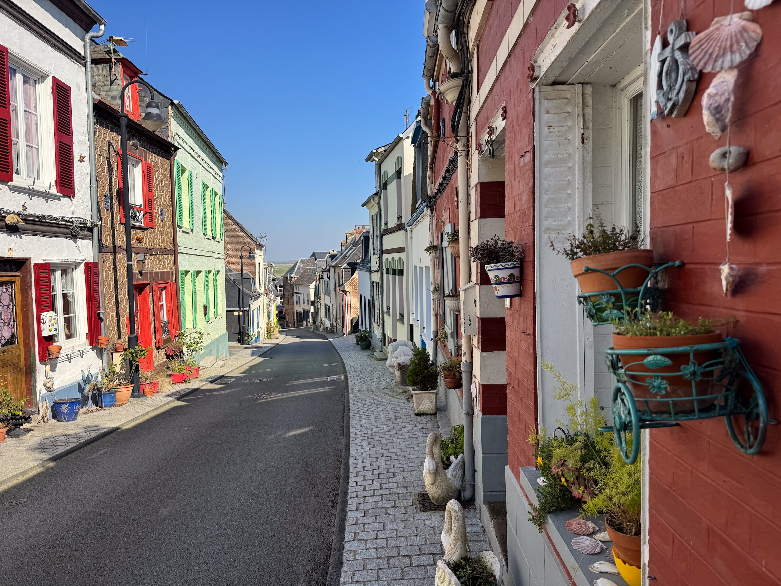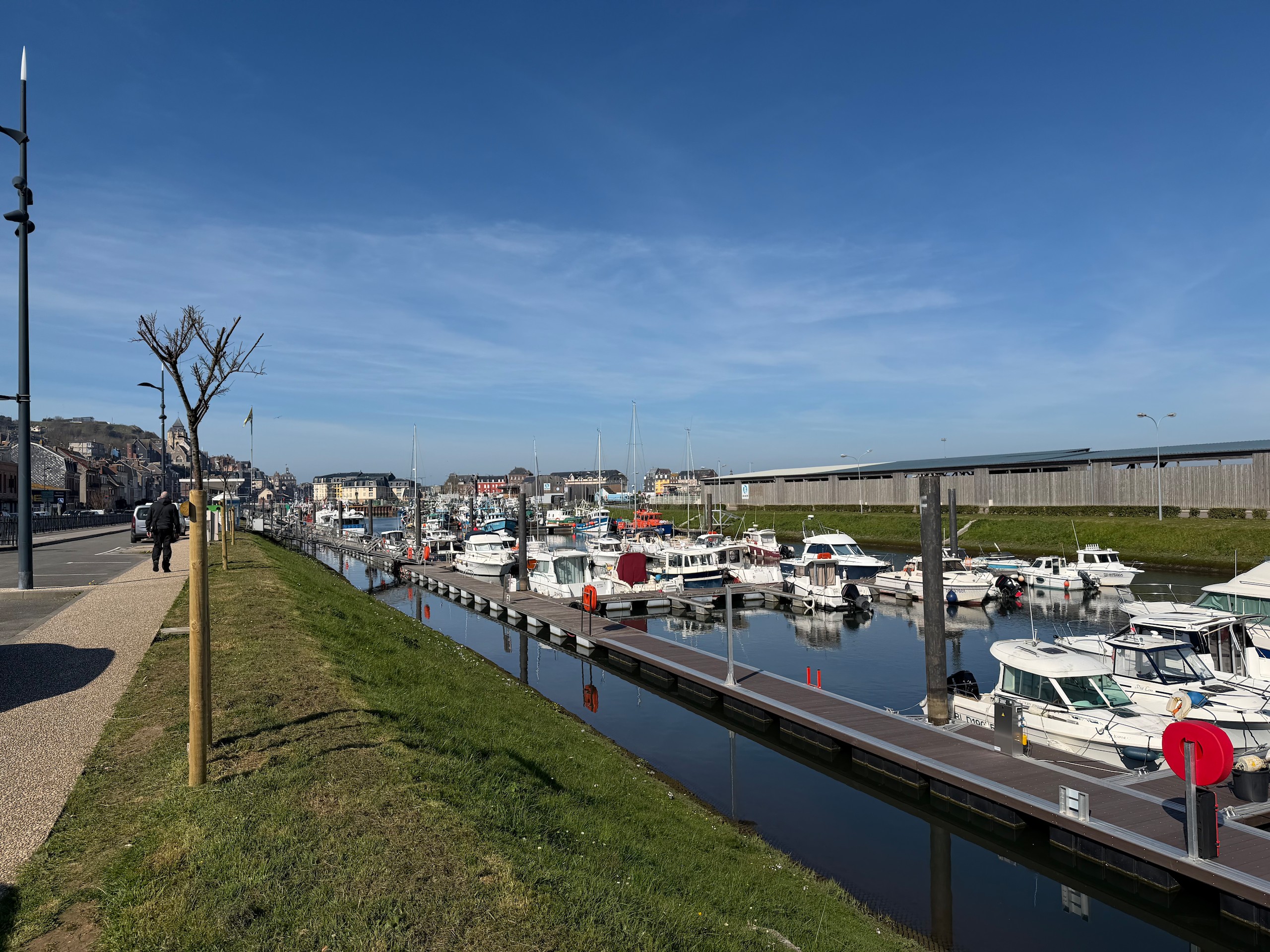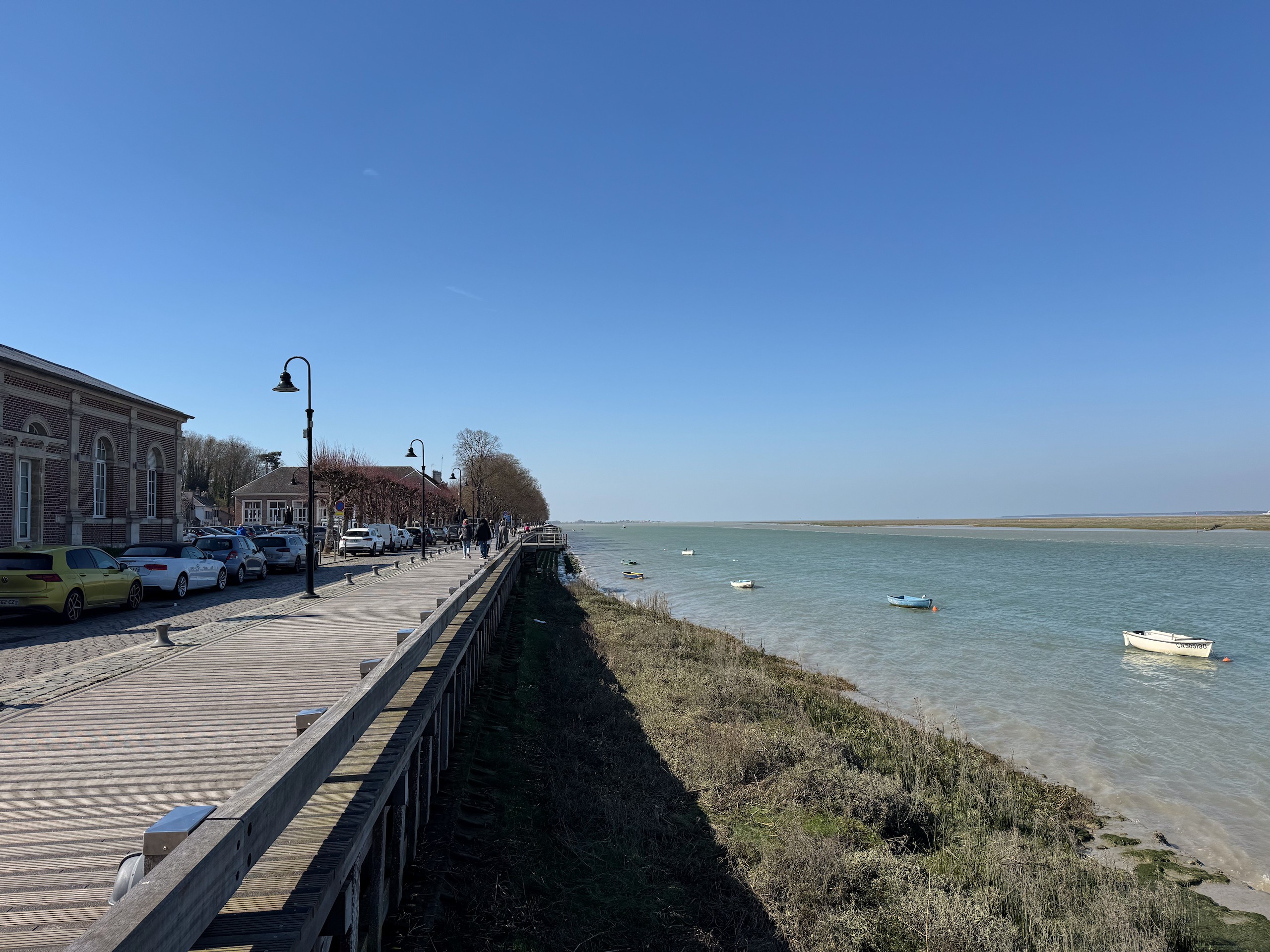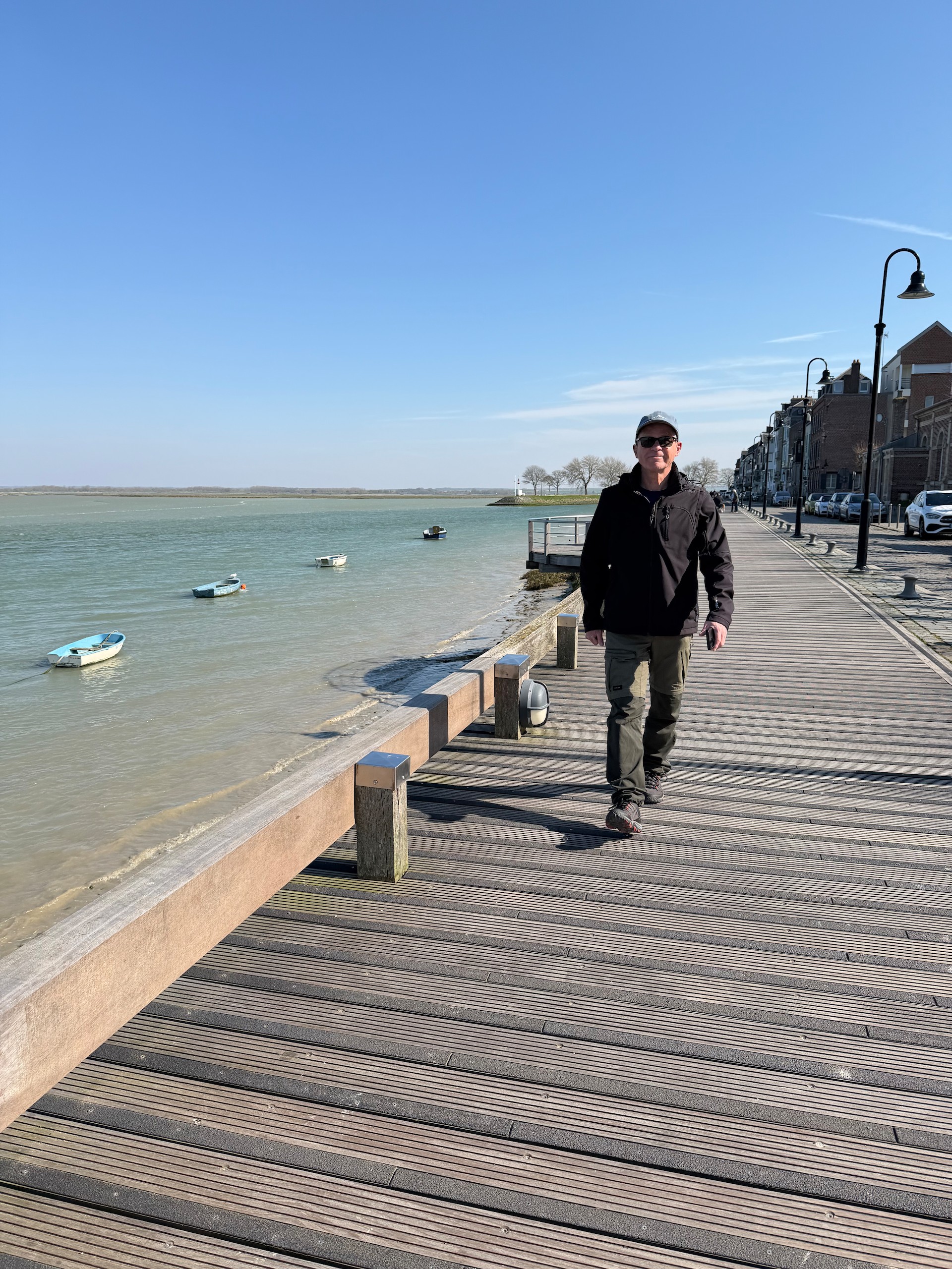 Wir bummeln wieder durch den urigen, alten Ort und über den wunderschönen Promenadenweg entlang der Sommemündung. Zum Schluss suchen wir uns noch ein Straßenlokal mit Sonnenplätzen und gönnen uns ein kleines Getränk. Fürs Abendessen holen wir uns noch ein frisches Baguette und sitzen zum späten Nachmittag noch vor unserem Wohnmobil in der Sonne. Der Stellplatz von Saint-Valery-sur-Somme in der Rue de la Croix l'Abbé gefällt uns gut. Die Plätze sind zwar nur teilweise mit Strom und manche auch recht schief, aber bei knapp 100 Plätzen findet sicher jeder etwas. Wir hoffen darauf, daß der heutige Abend keine böse Überraschung mehr für uns bereithält. Der Stadtrundgang ist hier auf Komoot zu finden (Account erforderlich) oder auch komplett ohne über GoogleMaps.