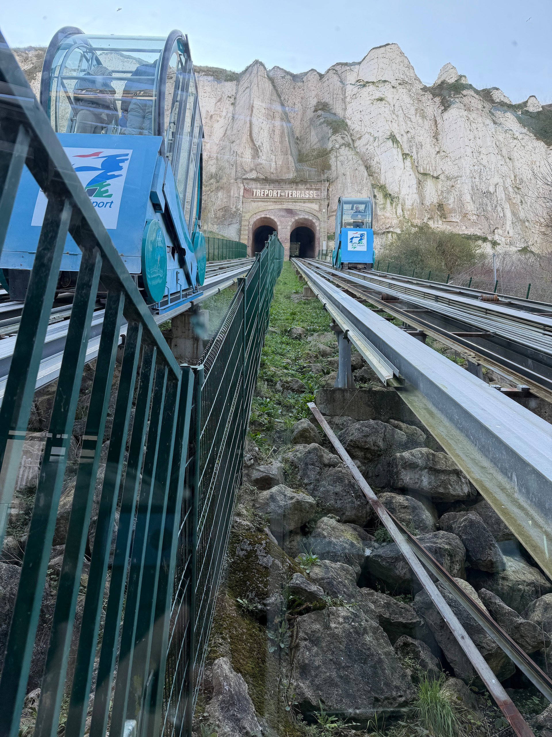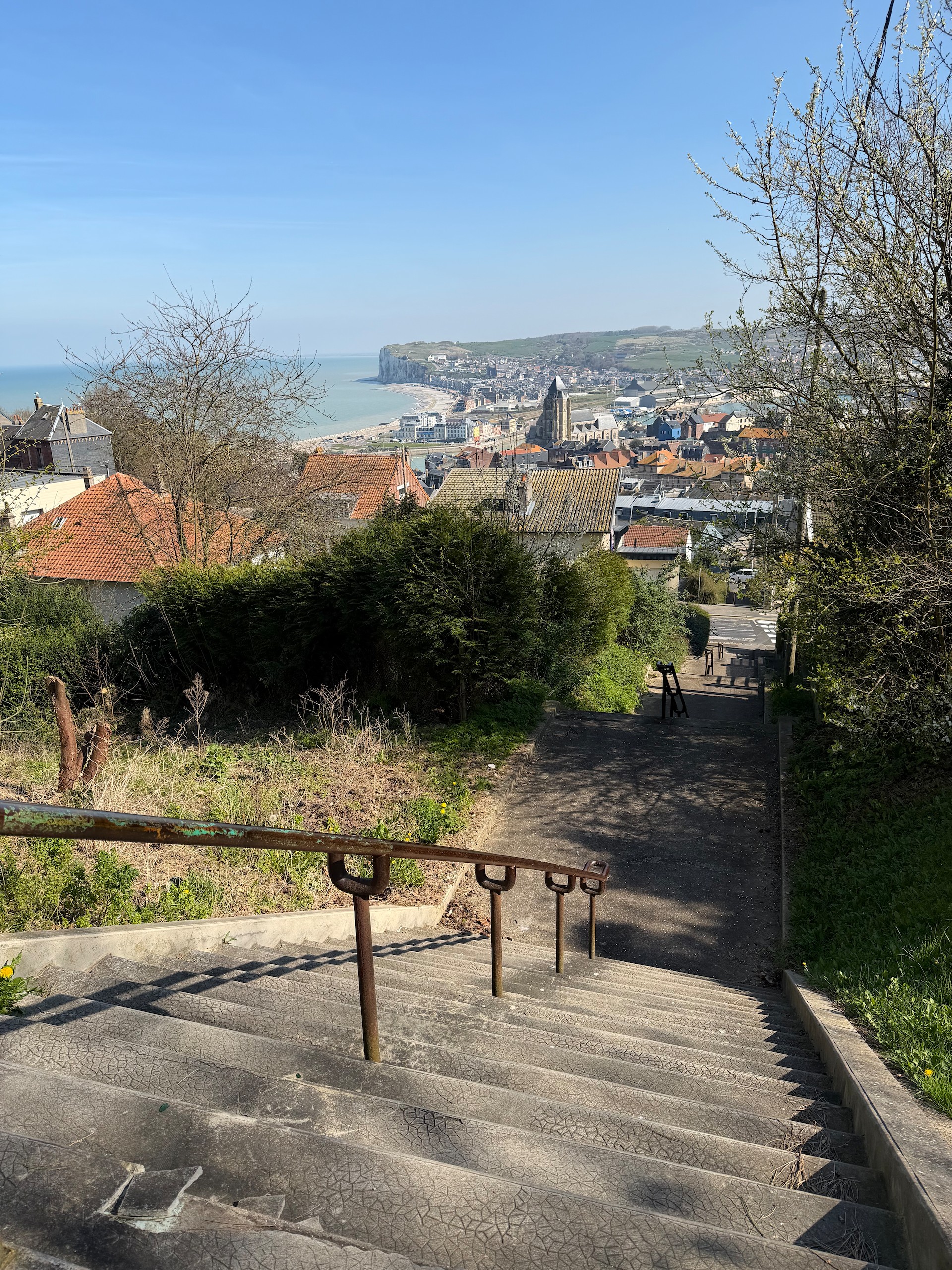 Da wir Wochenende und sonniges Wetter haben, ist der Platz genau wie die Plätze oben auf der Klippe sehr gut besucht und eine Anreise bis 12.00 Uhr ist sicher an solchen Tagen sehr empfehlenswert. Wir machen uns kurz nach der Ankunft auf den Weg und laufen zuerst durch Le Trepot, bis hinauf zu den anderen Stellplätzen und fahren dann mit der kostenlosen Standseilbahn wieder hinunter ans Meer.