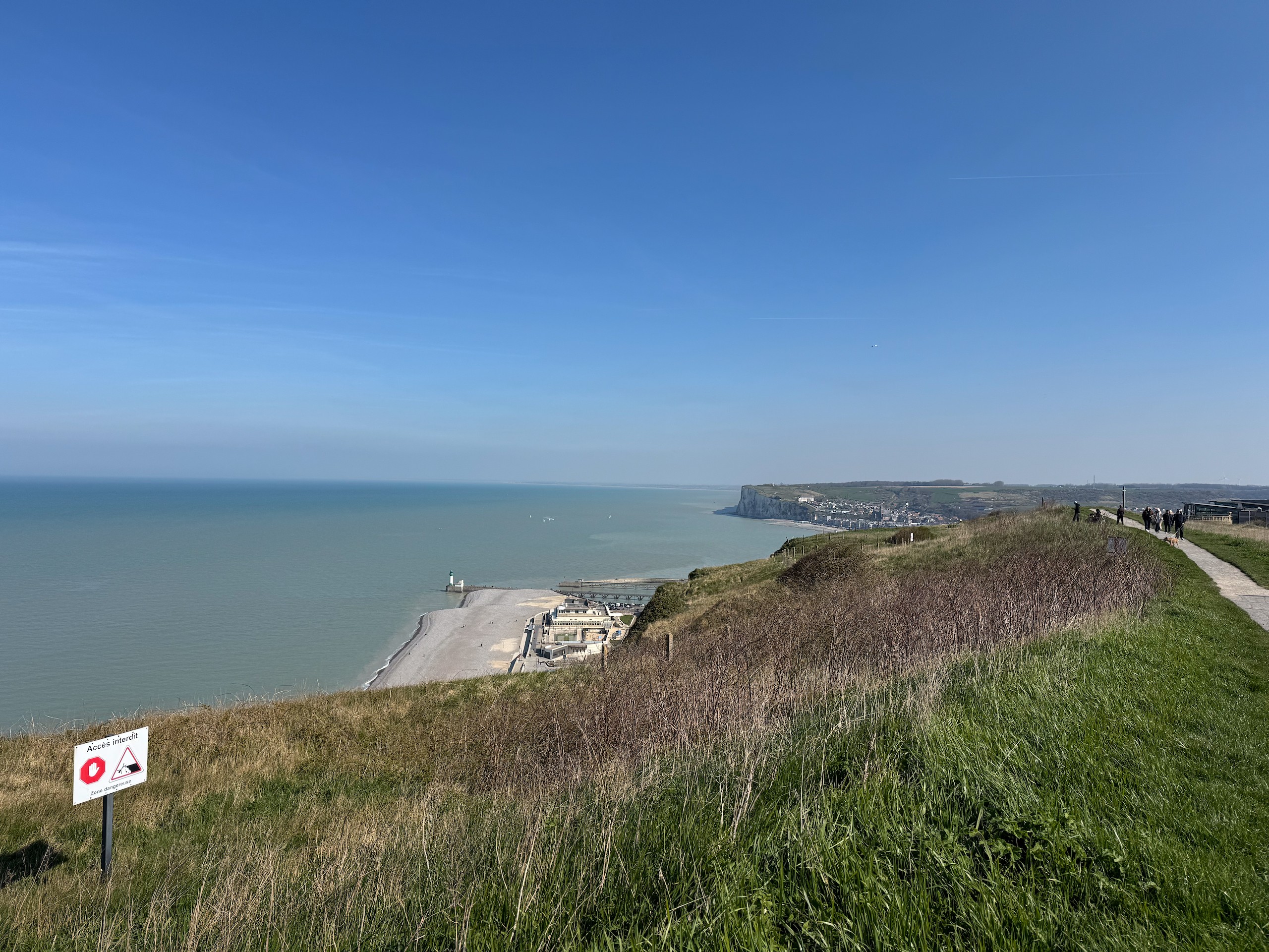 Ausserdem gibt es am Ende der Promenade die Möglichkeit, auf den Berg zu steigen. Diese wunderschöne weiße Klippe ist wirklich sehenswert und der Blick von oben ebenso. Wir haben heute zwar keine klare Sicht, aber wir waren hier ja schon mehrfach, da ist das nicht so schlimm. So langsam geht es jetzt zurück zum Wohnmobil. Über 12 km mit 300 Höhenmetern haben wir zusammen bekommen.