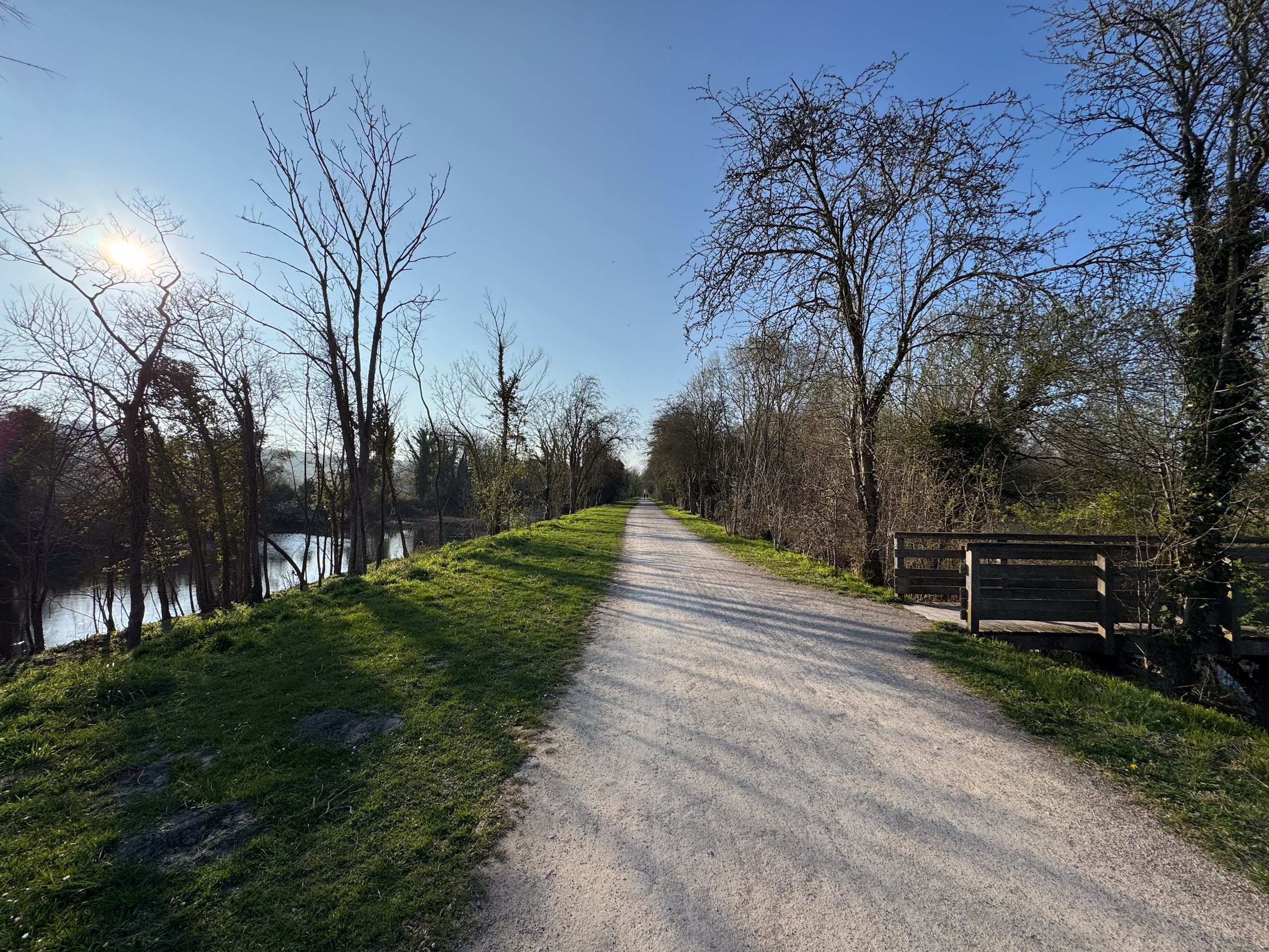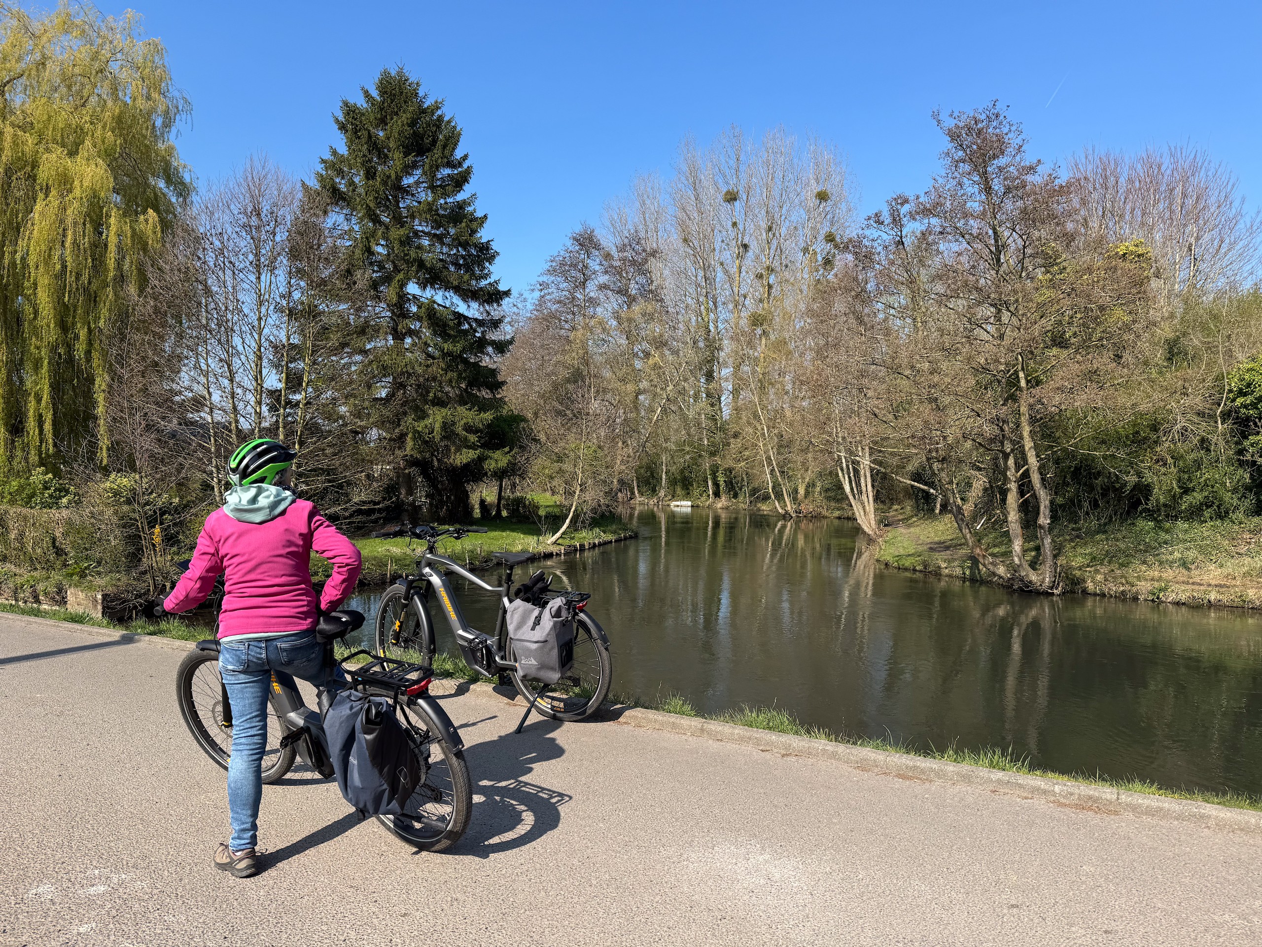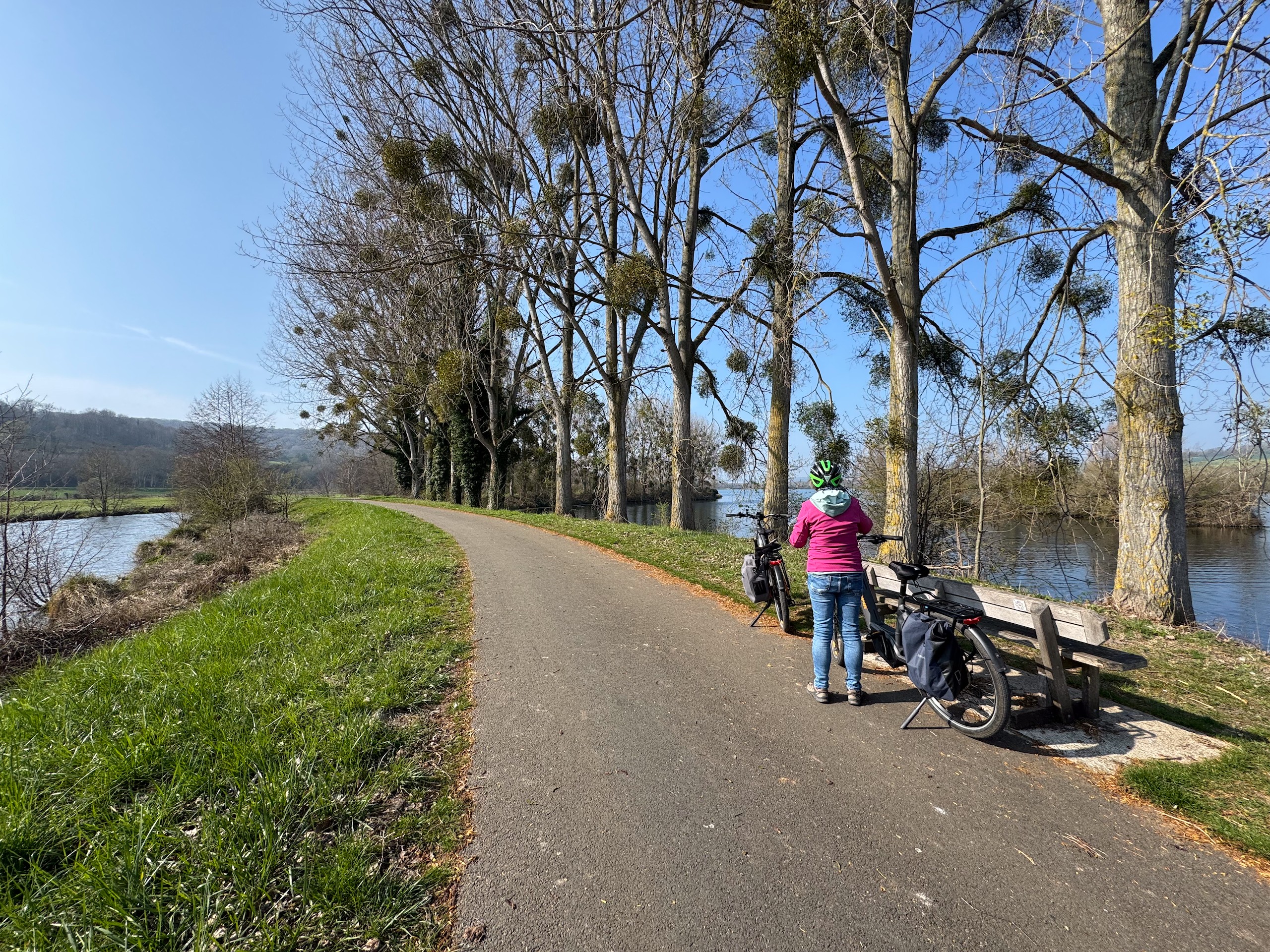 Wir radeln relativ gemütlich über kaum befahrene Straßen und Feldwege und genießen dabei die langsam erblühende Natur. Überall sprießen die Narzissen,Tulpen, Magnolienbäume und Forsythien sowie das frische Grün an den Bäumen. Die letzten Kilometer führen uns wieder über den anfangs beschriebenen Radweg durch eine tolle Flusslandschaft vorbei an der Bresle und einem großen See. Zum Schluss waren wir knapp 43 Kilometer mit dem Rad unterwegs. Es war zwar heute ziemlich frisch, so um die 10 Grad, aber die Sonne hat uns die ganze Zeit begleitet. Das hat uns beiden richtig Spaß gemacht. Die Radtour ist auch wieder auf Komoot zu finden (Account erforderlich) oder auch komplett ohne Account über GoogleMaps.