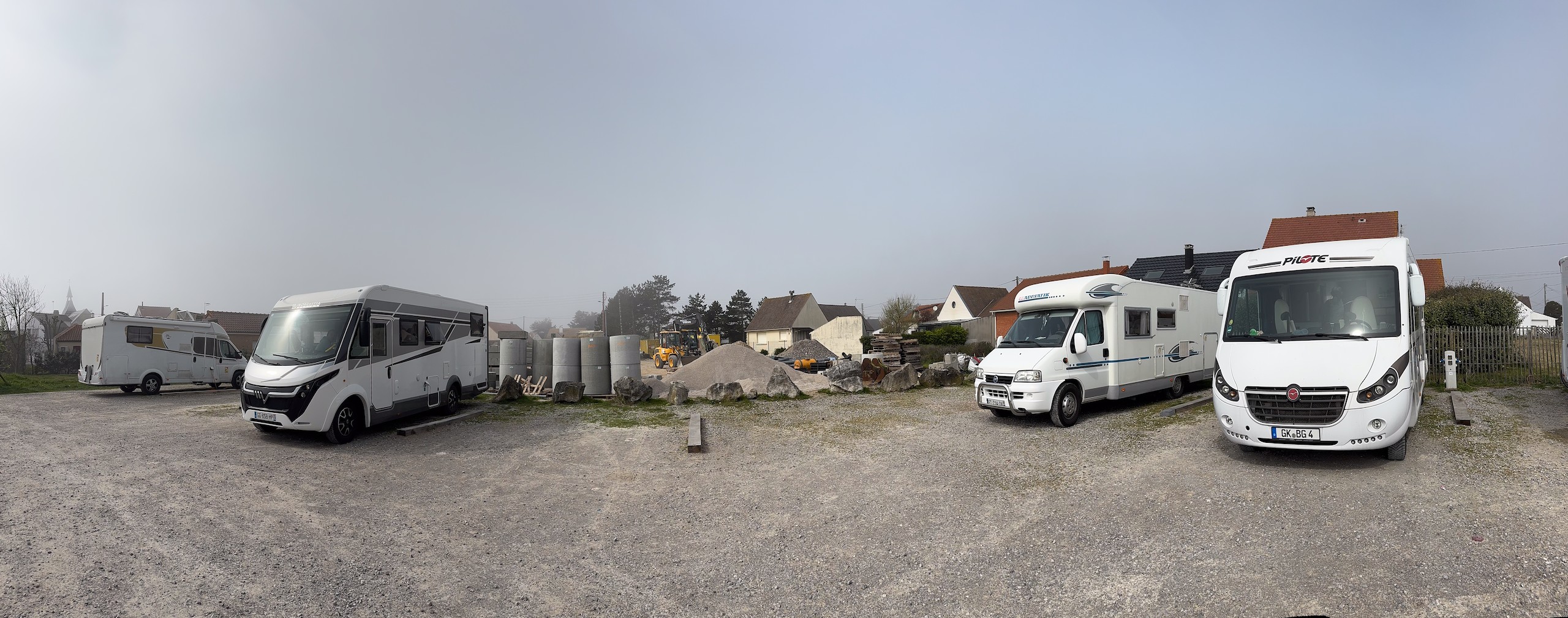 Heute morgen ist es richtig neblig, als wir aufstehen. Nach den Frühstück verlassen wir diesen für uns sehr schönen Platz und fahren wieder ca. 70 km Richtung Norden zurück ans Meer. Hier wollen wir den Camping Car Park - Stellplatz in Merlimont Plage anfahren. Sicherlich kein allzu schlechter Platz, nicht weit vom Meer und dem schönen Sandstrand entfernt. Leider ist es aber auch hier richtig neblig und zu allem Übel befindet sich neben dem Stellplatz eine Baustelle. Hier wird gerade ein Parkplatz hergestellt, was bedeutet, dass permanent ein Bagger den Untergrund hin- und herschiebt.
